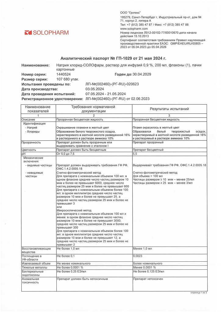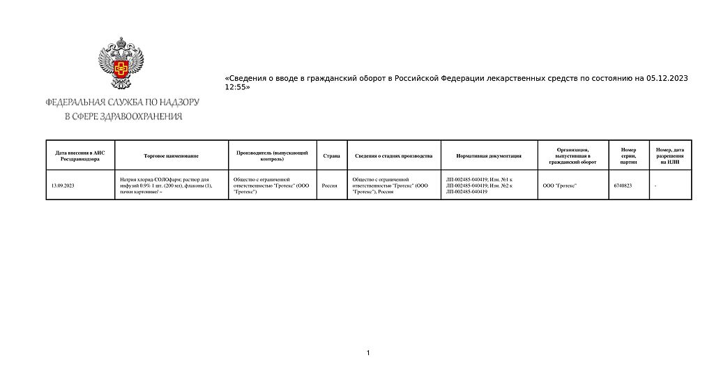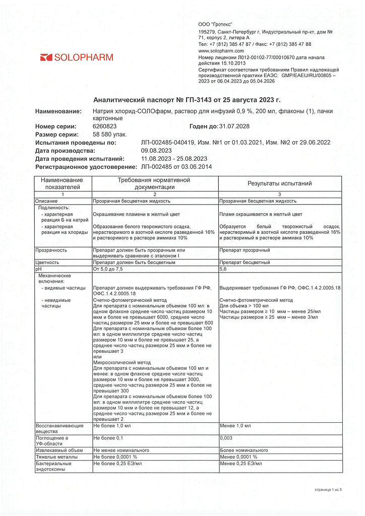 • 📒 Подробная инструкция по применению Натрия хлорид-СОЛОфарм Домус раствор для инфузий 0,9 % 200 мл фл 1 шт