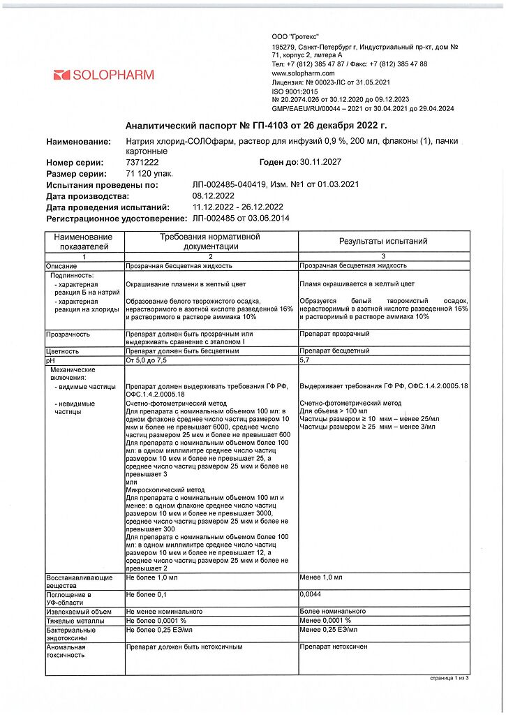 • 📲 Цена на Натрия хлорид-СОЛОфарм Домус раствор для инфузий 0,9 % 200 мл фл 1 шт ниже в нашем приложении