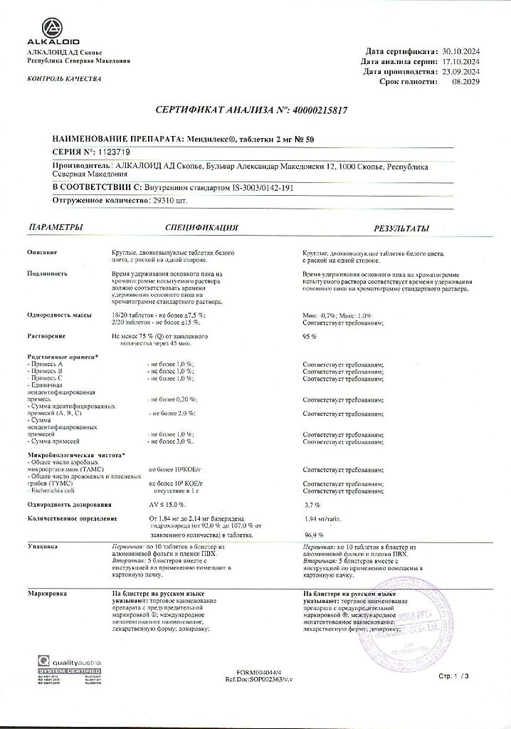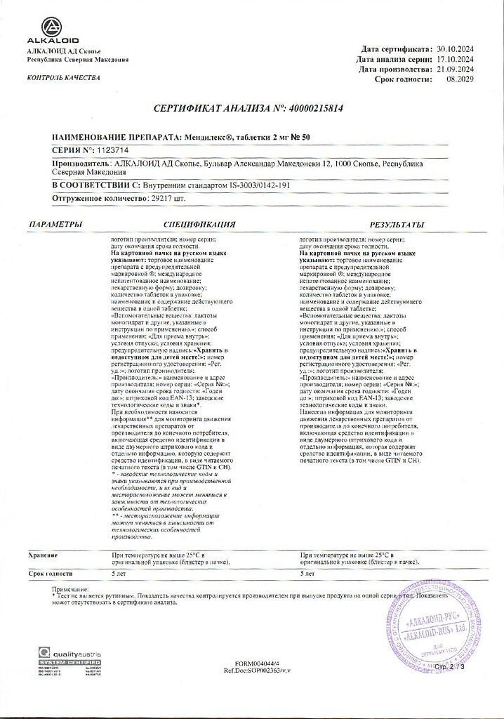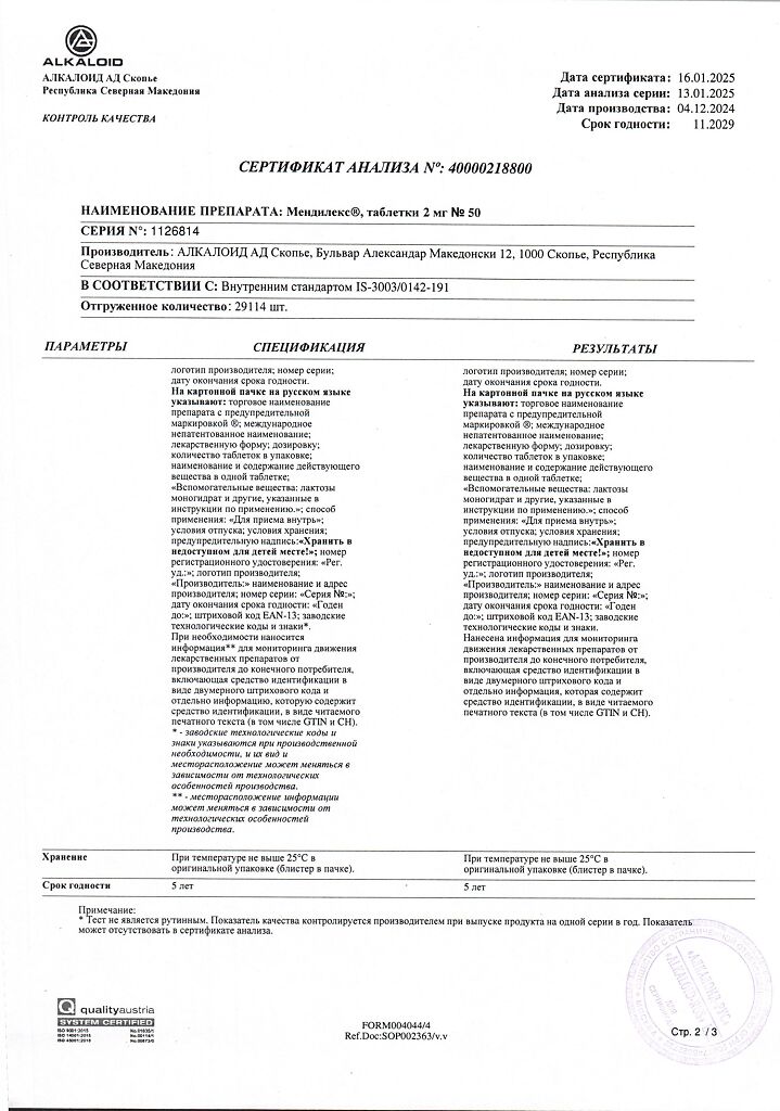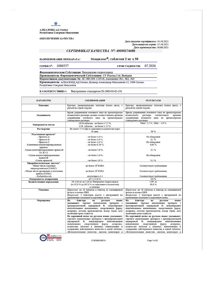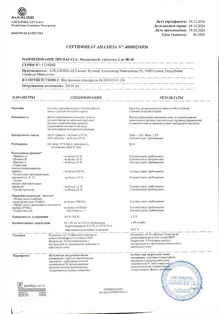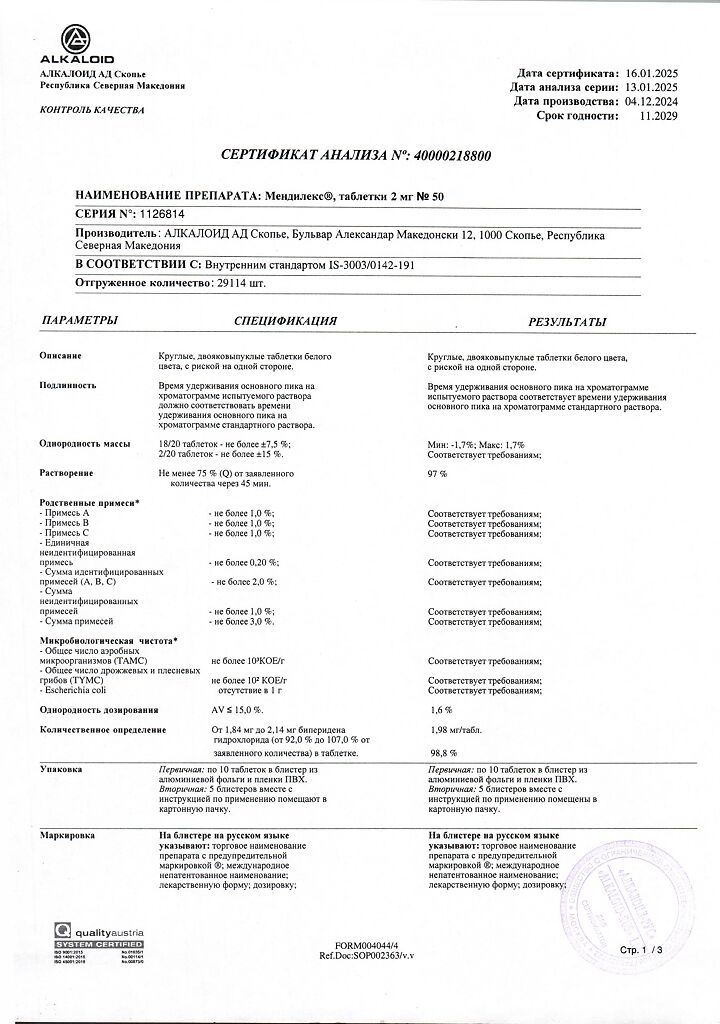 Производитель: Алкалоид АД Скопье, Республика Северная Македония
