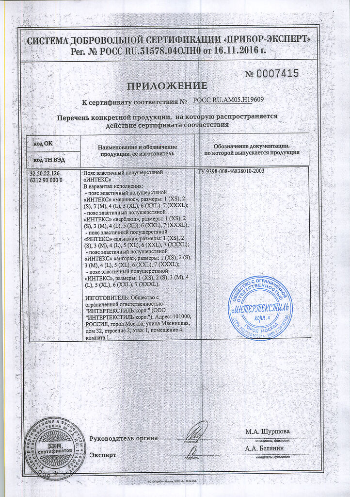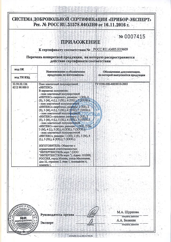 Документы Пояс эластичный полушерстяной Интекс р.7 XXL 1 шт