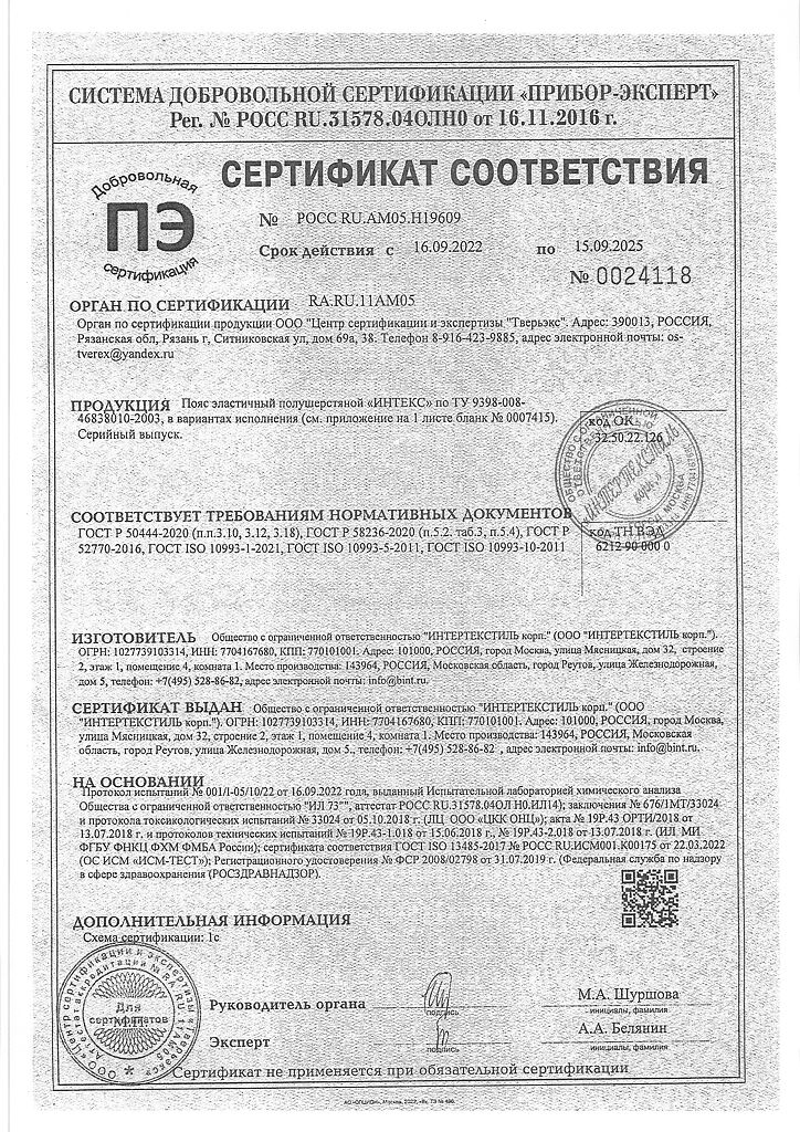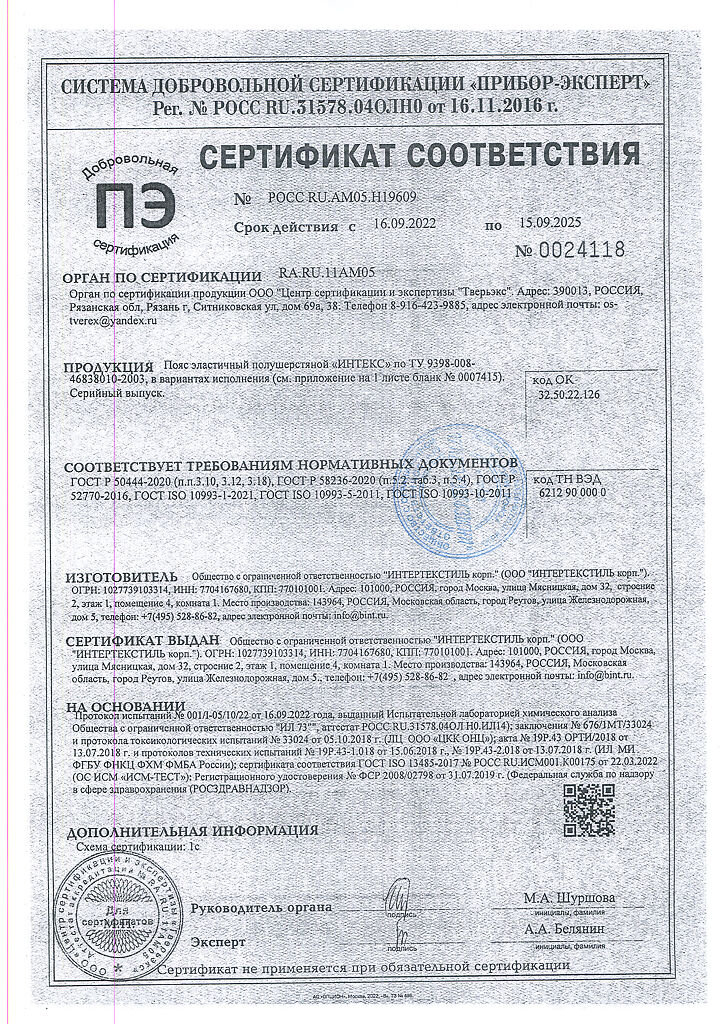 Производитель: ИНТЕРТЕКСТИЛЬ корп., Россия