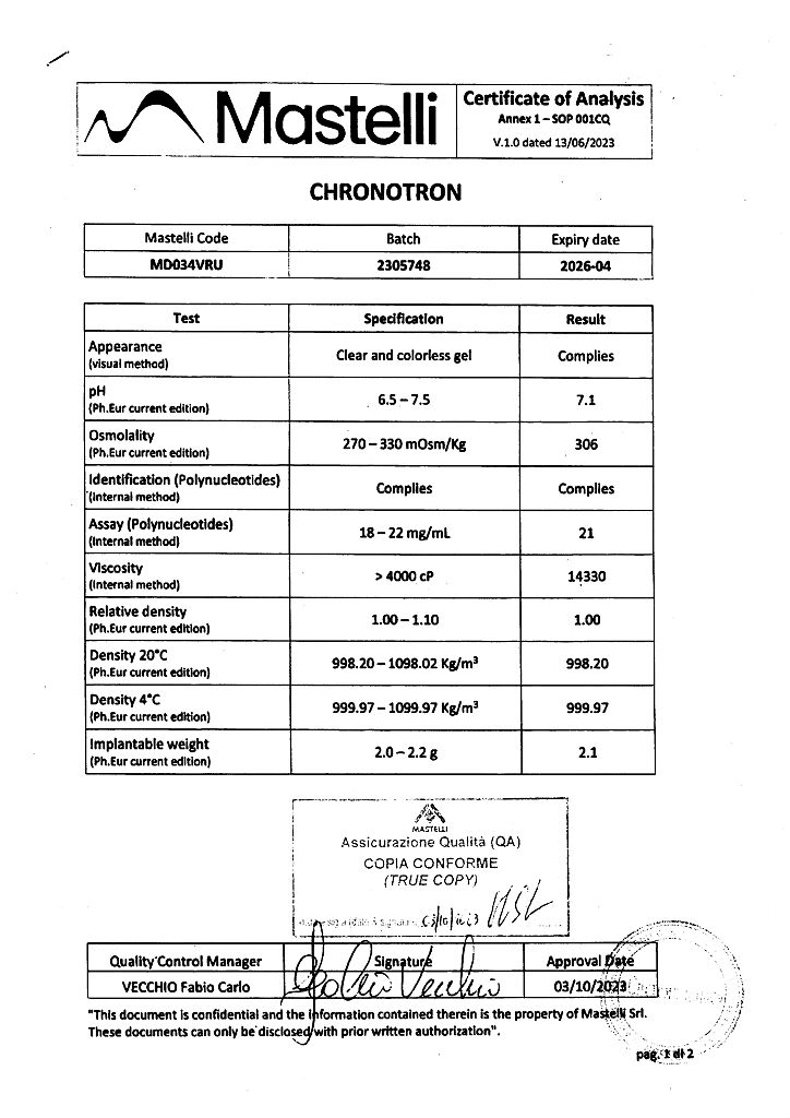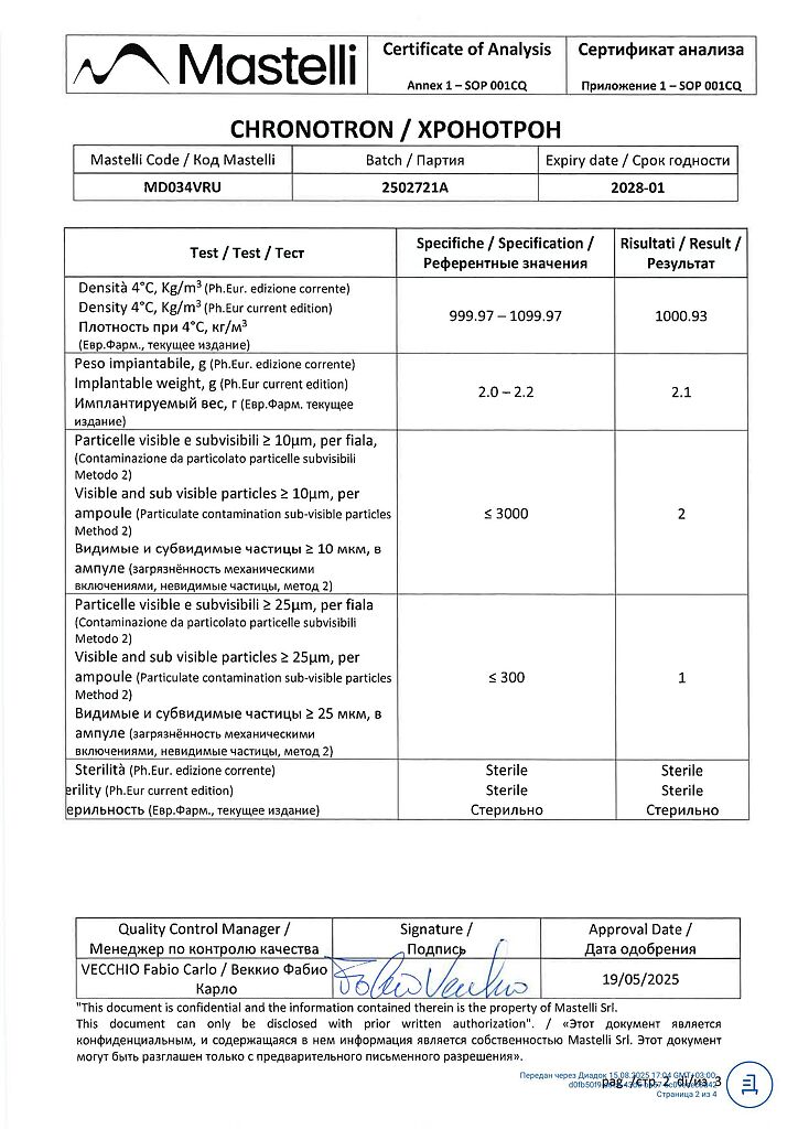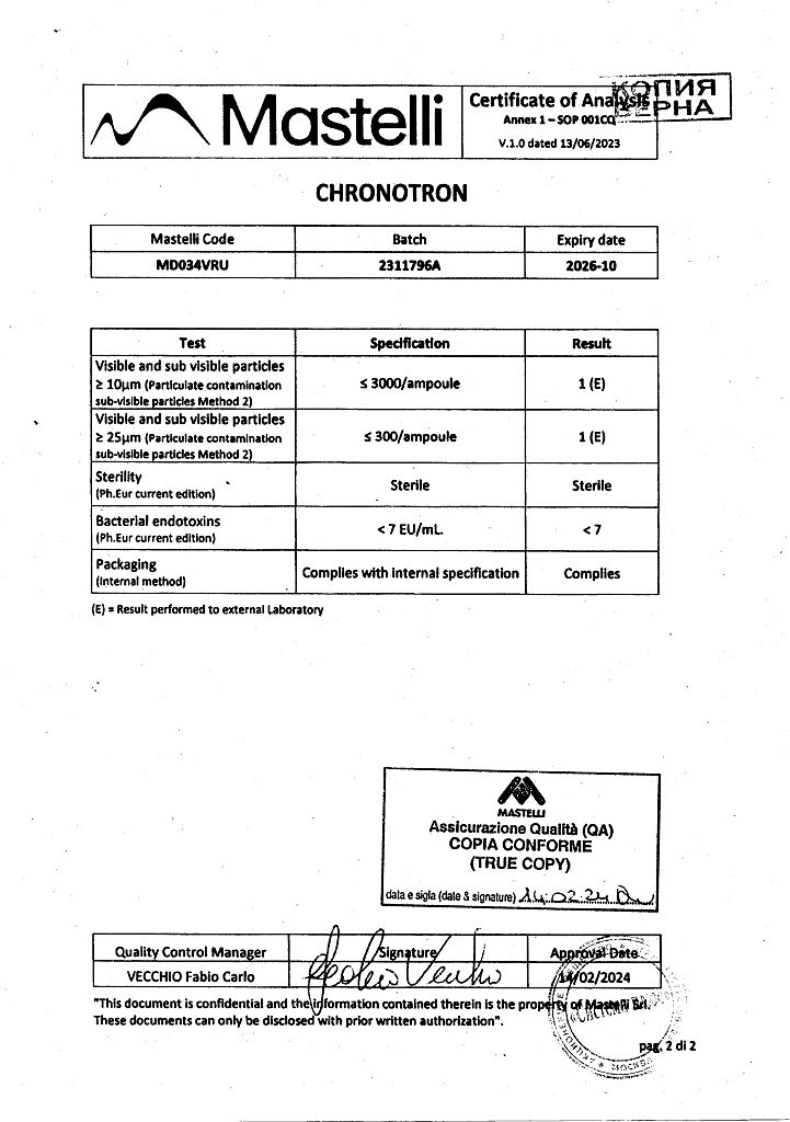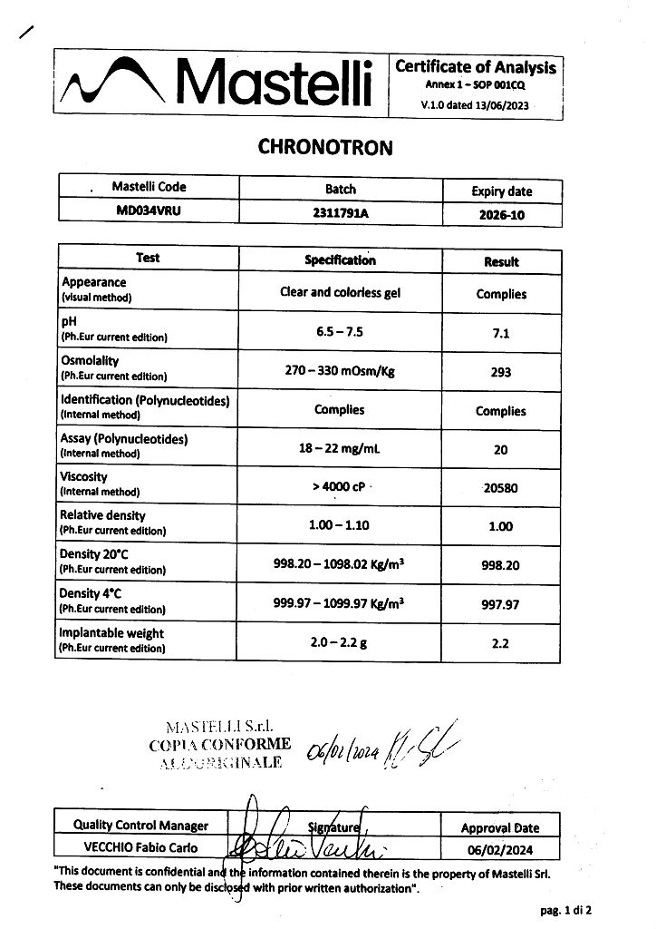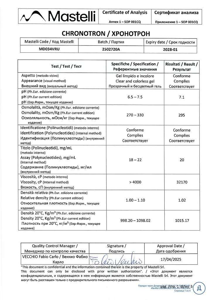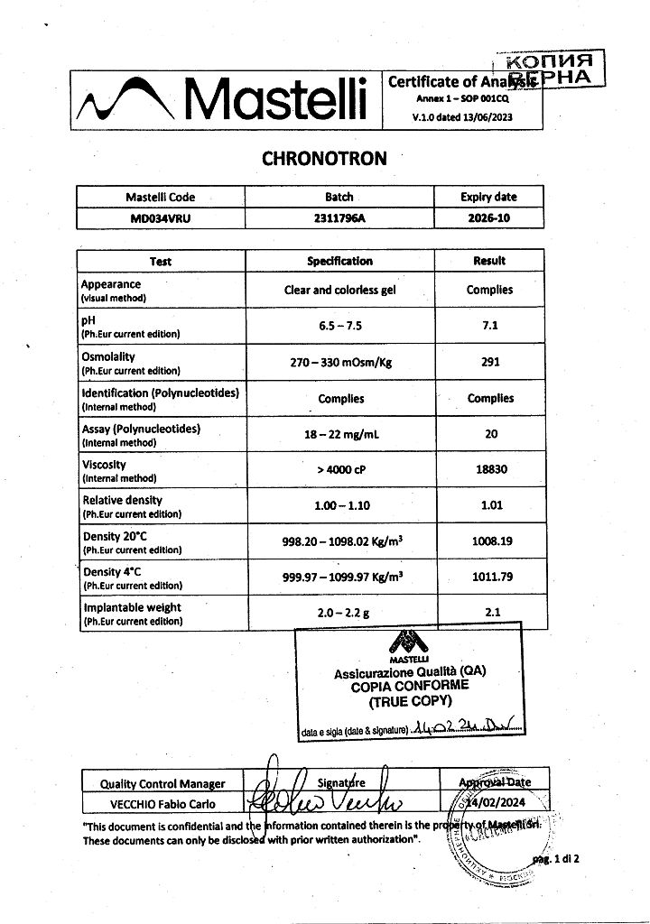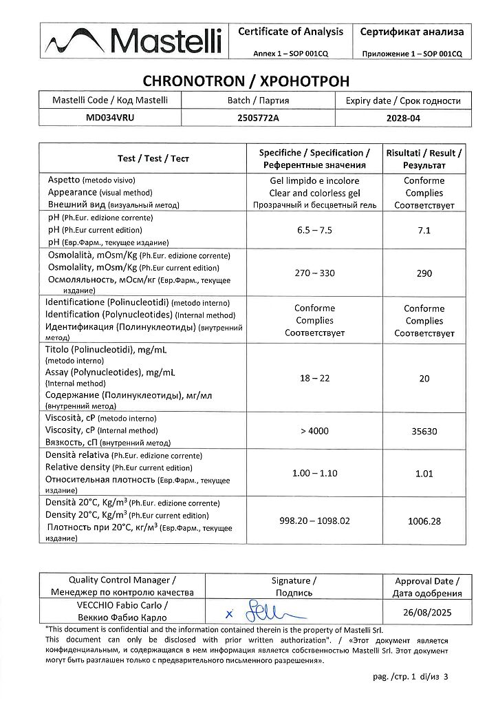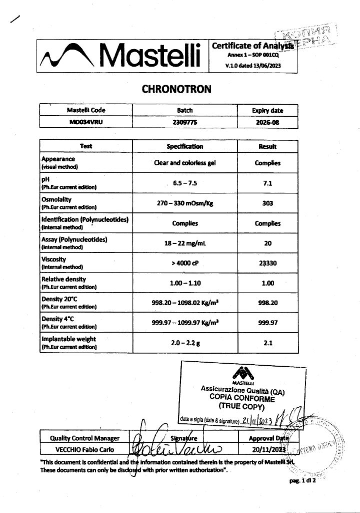 Документы Хронотрон имплантат иньекционный для в/суставного введения 20 мг/мл шприц 2 мл 1 шт