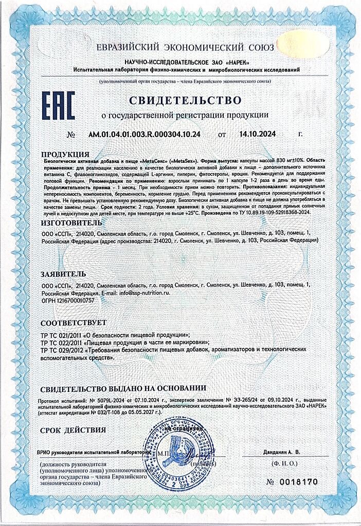 (адрес места осуществления деятельности по изготовлению продукции: 214020, г. Смоленск, ул. Шевченко, д. 103, Российская Федерация).