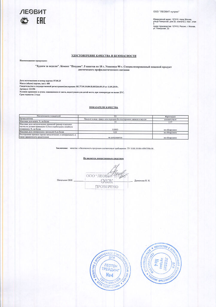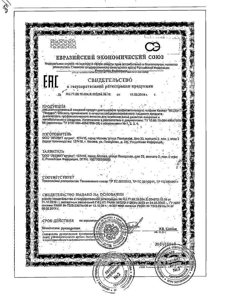 Производитель: ЛЕОВИТ нутрио, Россия