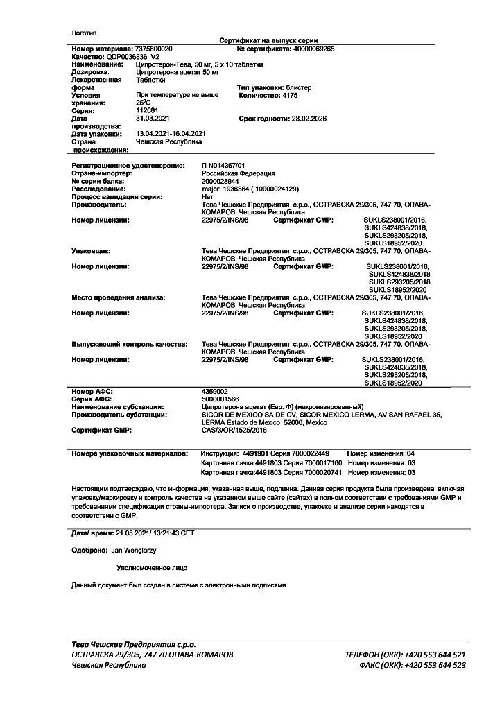 • Информацию об акциях и скидках на Ципротерон-Тева уточняйте на нашем сайте.