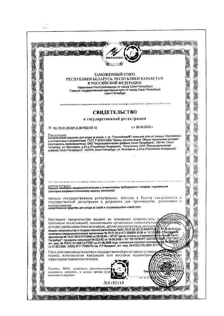 Крем для ног от трещин предназначен именно для ухода за очень сухой, склонной к растрескиванию, кожей стоп. Уже в течение первых 5 дней применения «Крема для ног от трещин», кожа становится мягкой, увлажненной, приобретает здоровый и ухоженный вид, трещинки на пятках постепенно затягиваются.