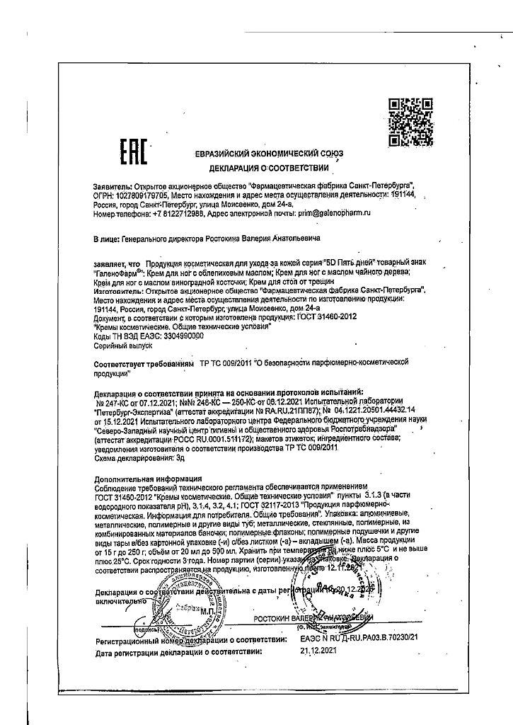 Рекомендуется применять крем после принятия ванны для ног смягчающей «5DПЯТЬ ДНЕЙ» и пилинга.