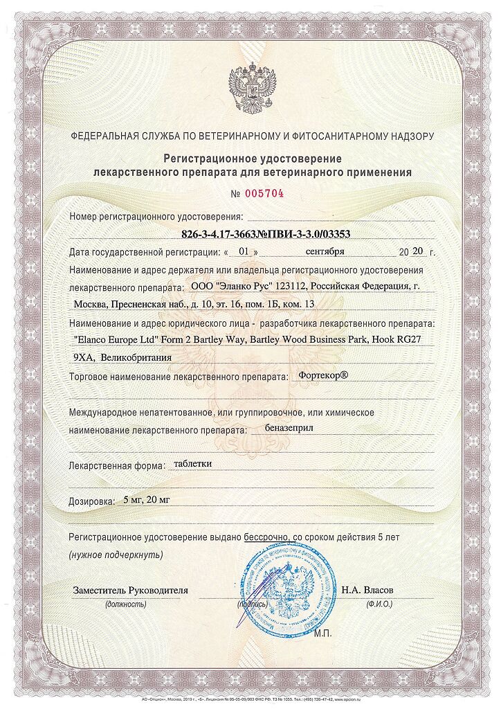 Документы Фортекор таблетки для собак с сердечной недостаточностью и кошек с хронической почечной недостаточностью 5 мг 14 шт (вет)