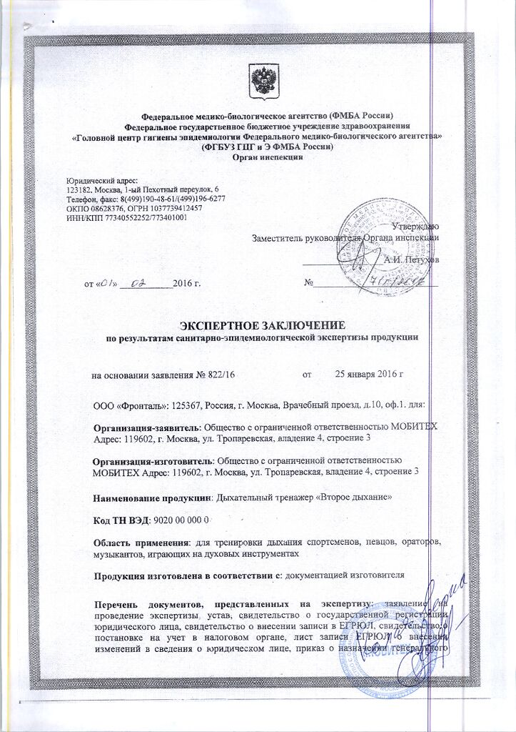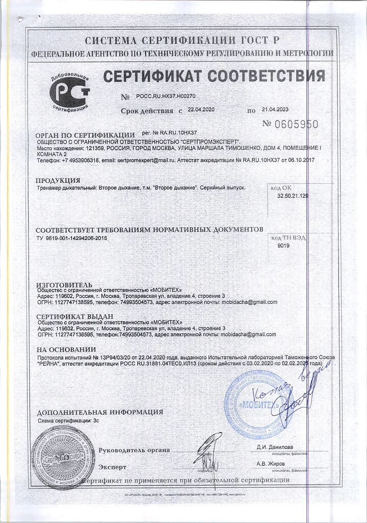Документы Дыхательный тренажер Второе дыхание детский 1 шт