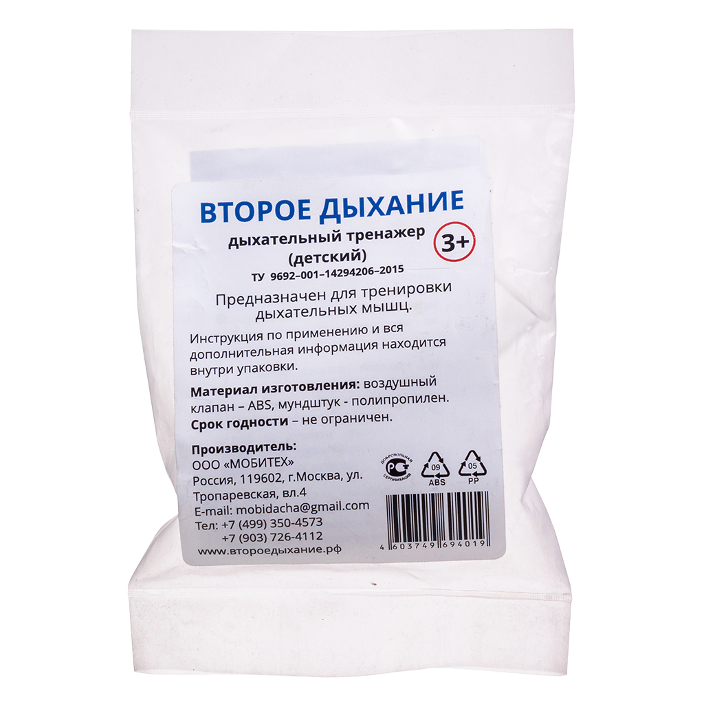 • 📒 Подробная инструкция по применению Дыхательный тренажер Второе дыхание детский 1 шт