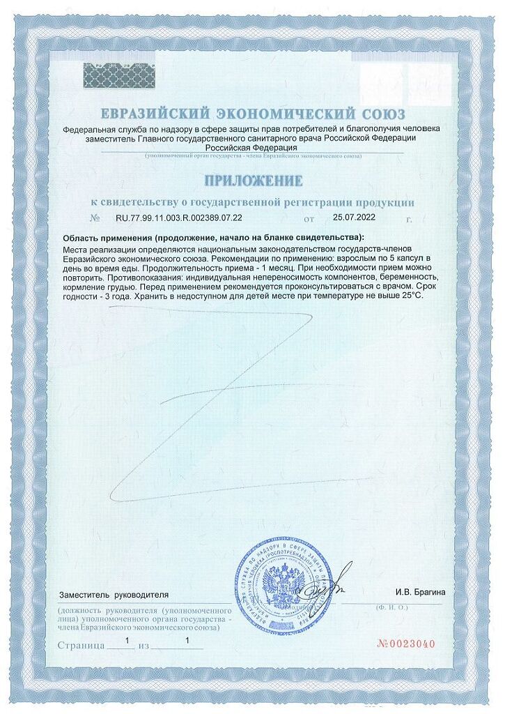 Взрослым по 5 капсул в день во время еды. Рекомендуемая продолжительность приема — 1 месяц. При необходимости курс приема можно повторить.