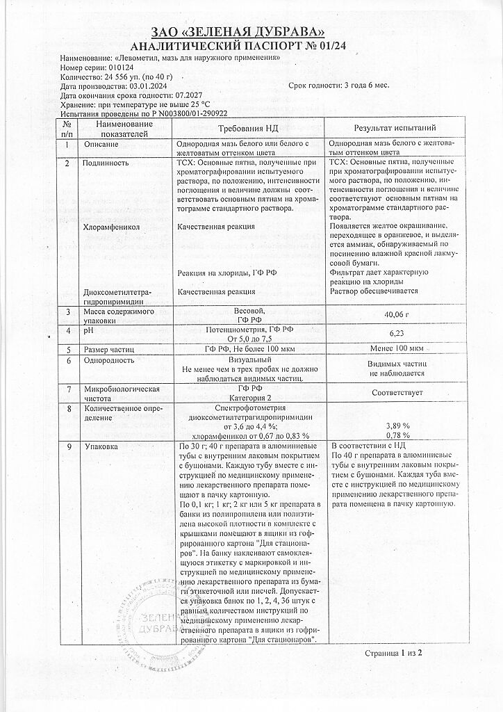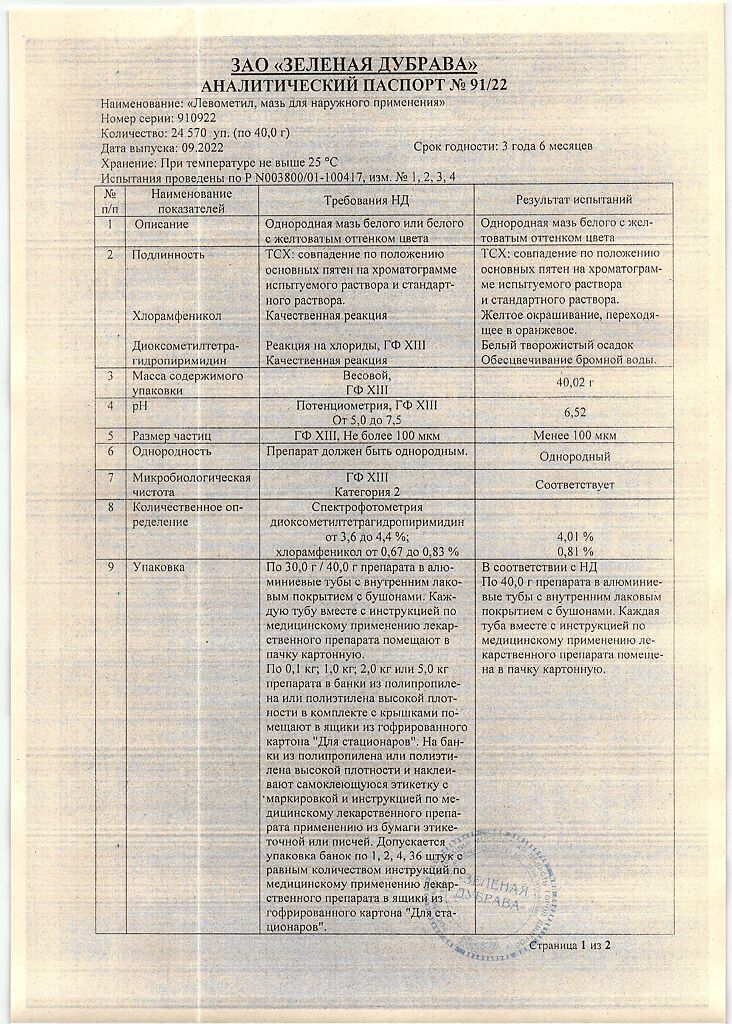 • Производителем Левометил является - Зеленая Дубрава