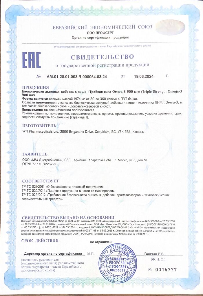 Документы Webber Naturals Тройная сила Омега-3 900 мг /Triple Strength Omega-3 900 mg капсулы массой 1974 мг 200 шт