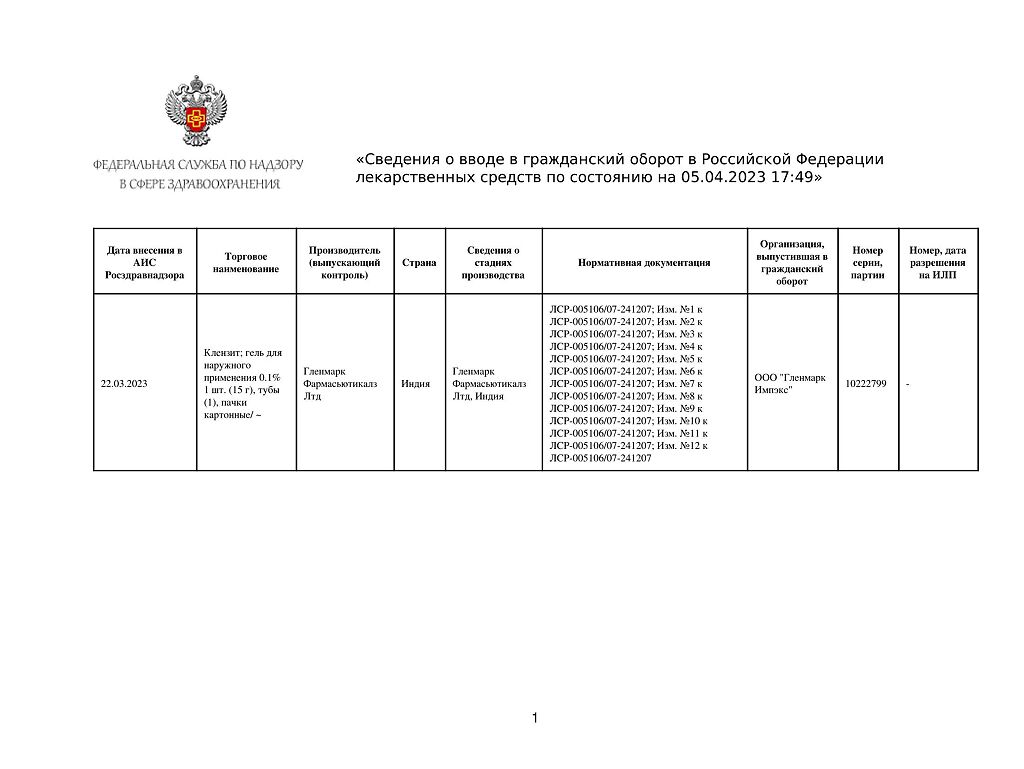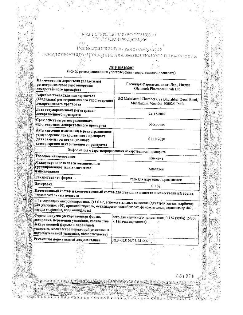 • Производителем Клензит является - Гленмарк