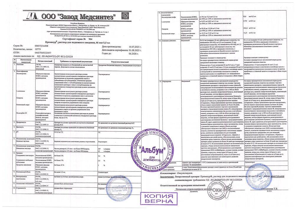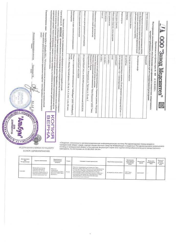 • Срок годности Примапур - 2 года. Не применять по истечении срока годности, указанного на упаковке. После начала использования препарат может храниться не более 28 дней при температуре не выше 25°С. Не применять препарат по истечении этого периода.