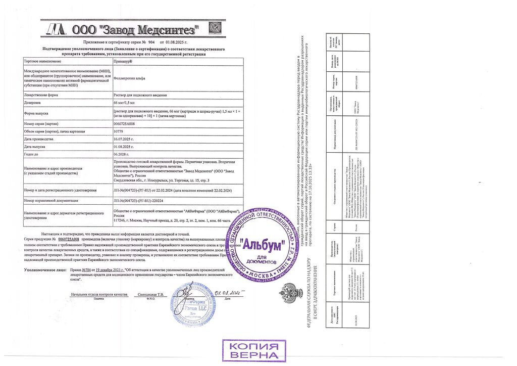 • Информацию об акциях и скидках на Примапур уточняйте на нашем сайте.