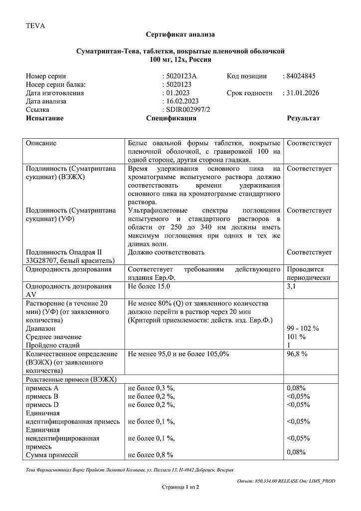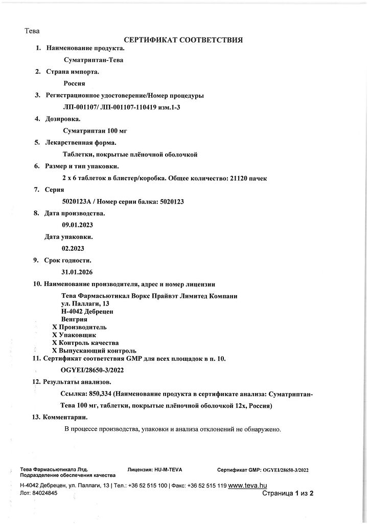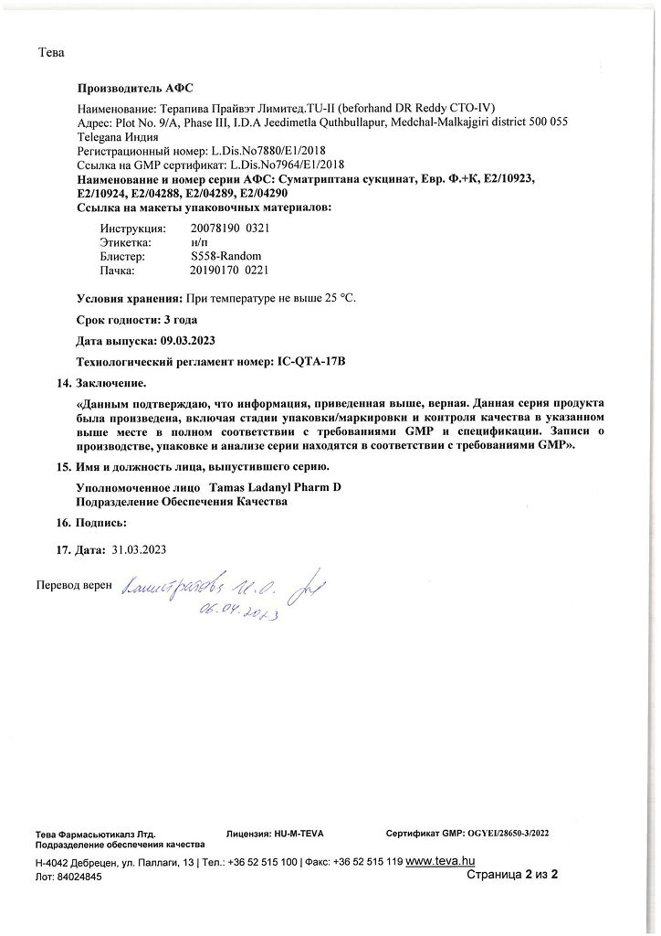 Производитель: Тева Фармасьютикал Воркс Прайвэт Лимитед Компани, Венгрия