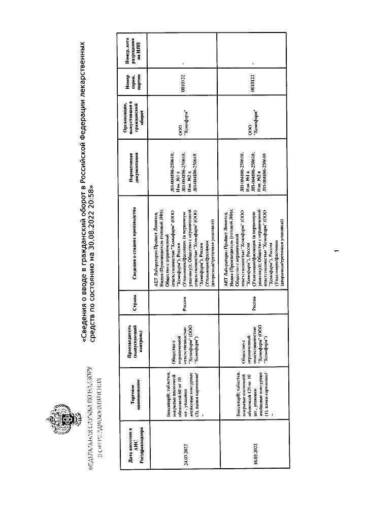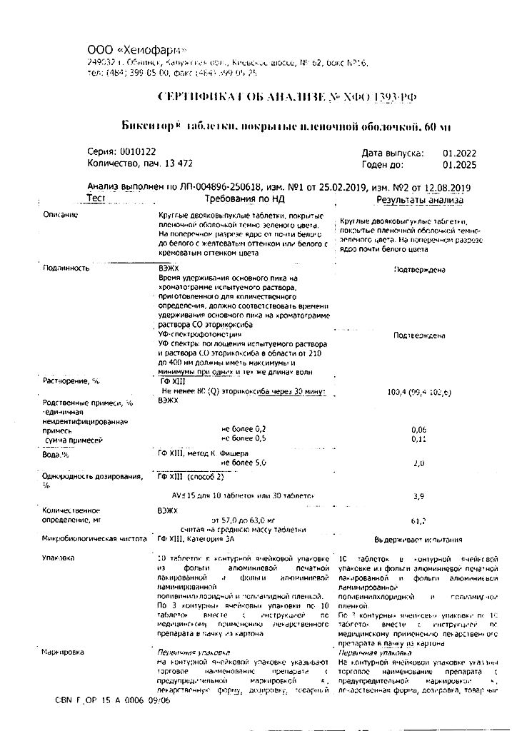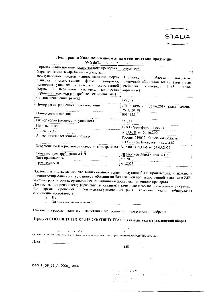• Срок годности Бикситор - 3 года. Не использовать после истечения срока годности, указанного на упаковке.