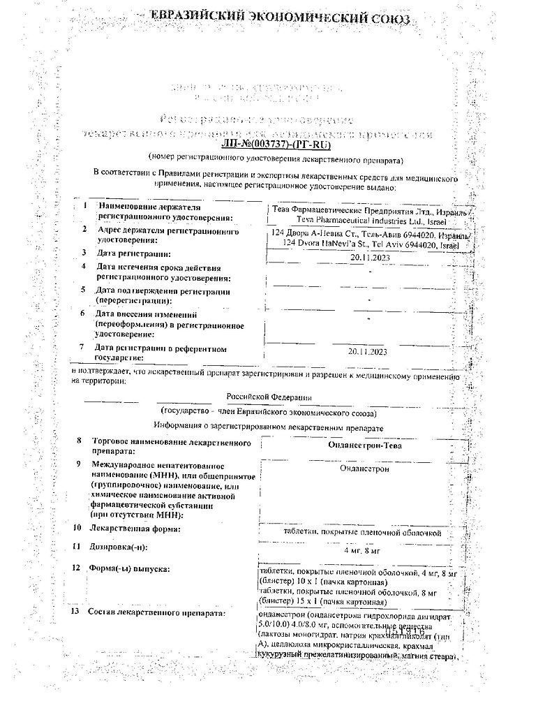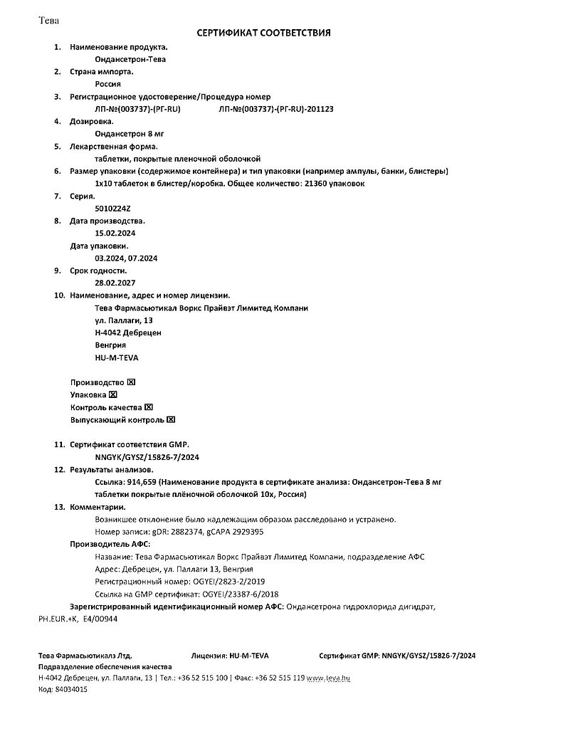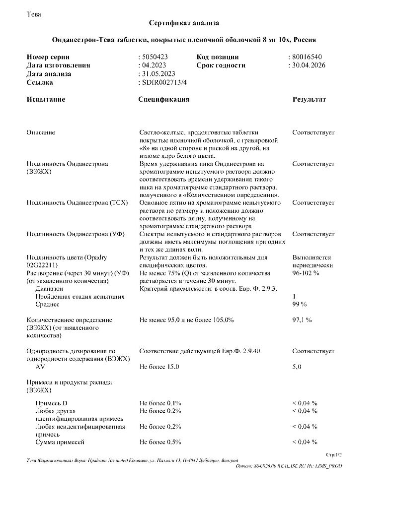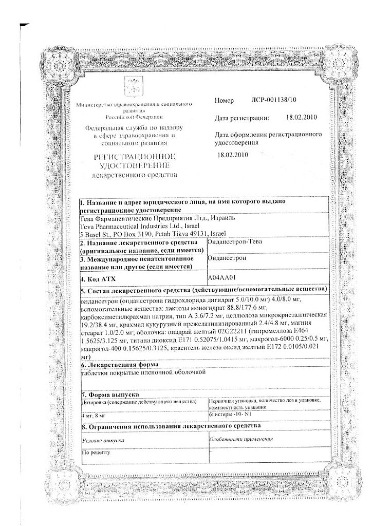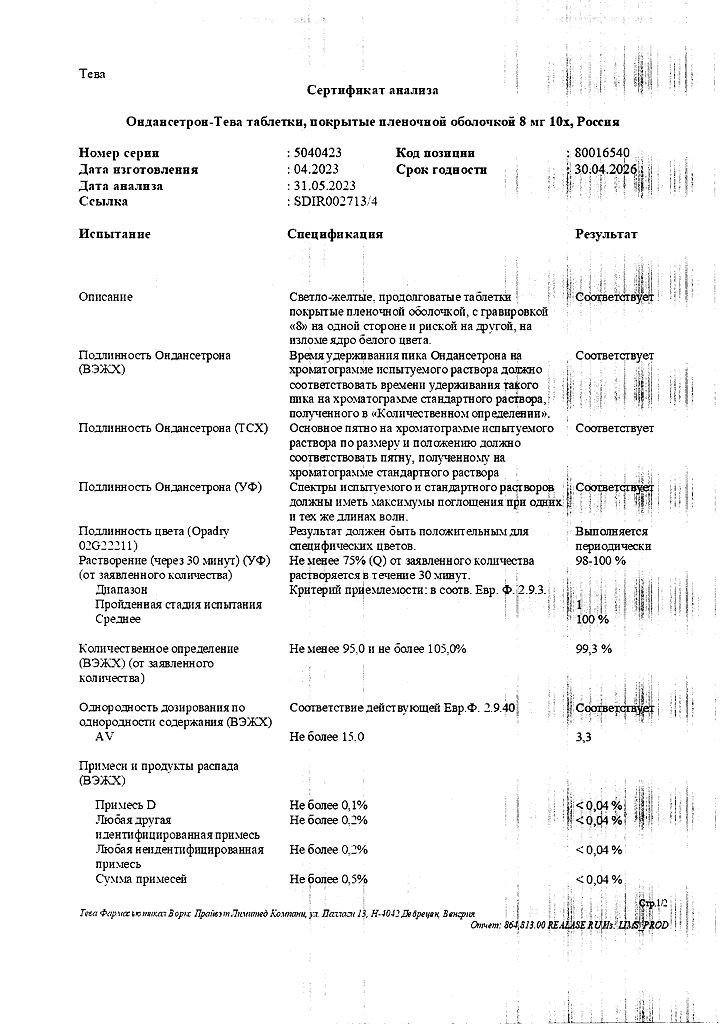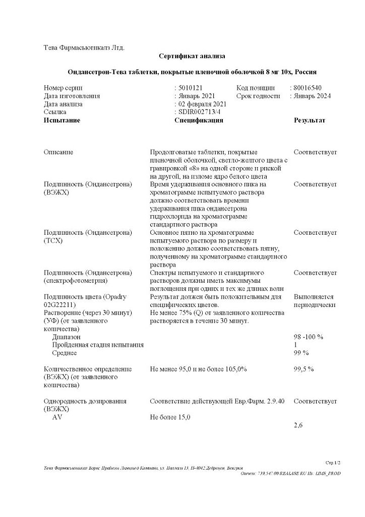 • Информацию об акциях и скидках на Ондансетрон-Тева уточняйте на нашем сайте.