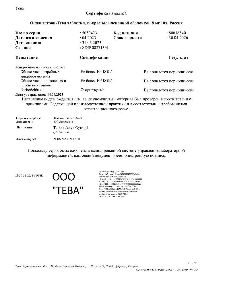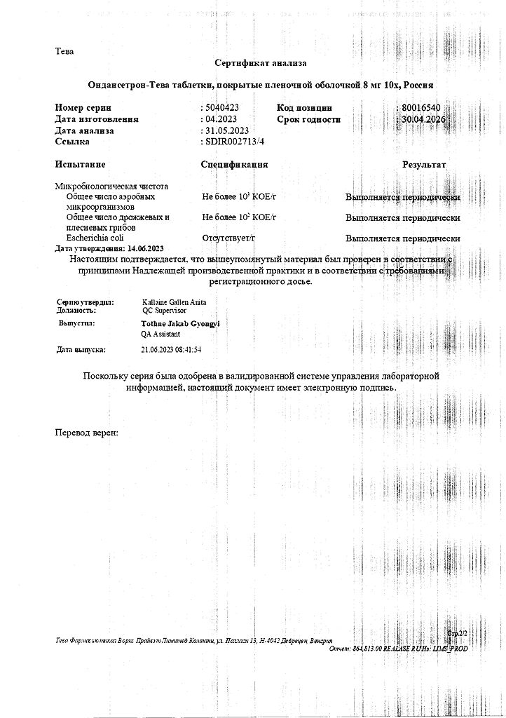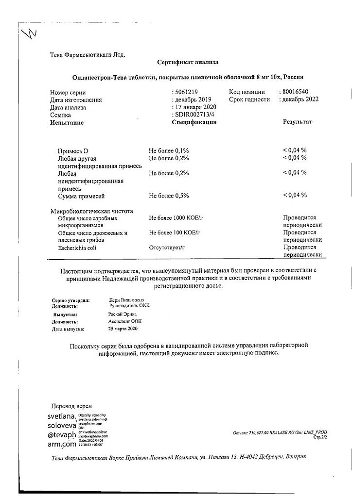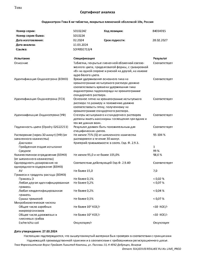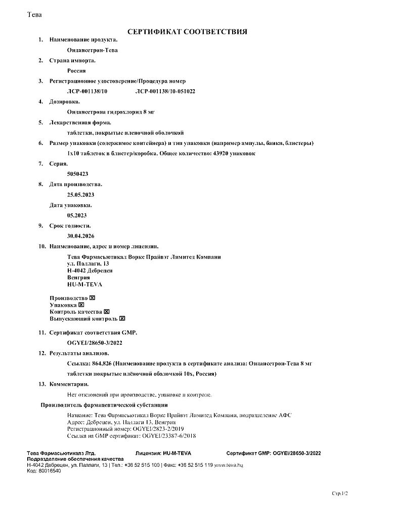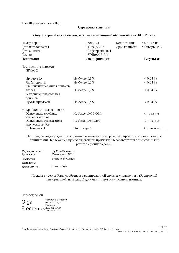 • Информацию об акциях и скидках на Ондансетрон-Тева уточняйте на нашем сайте.
