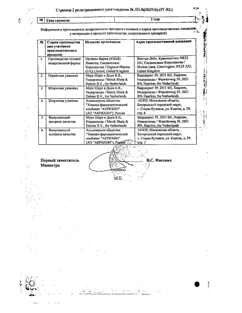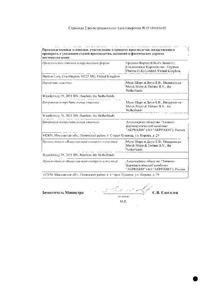 Производитель: Органон Фарма (ЮКей) Лимитед, Великобритания
