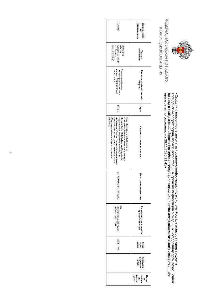 Страница носит информационный характер о наличии препаратов. Перед назначением и применением проконсультируйтесь с врачом