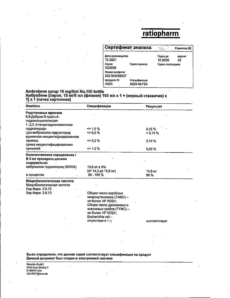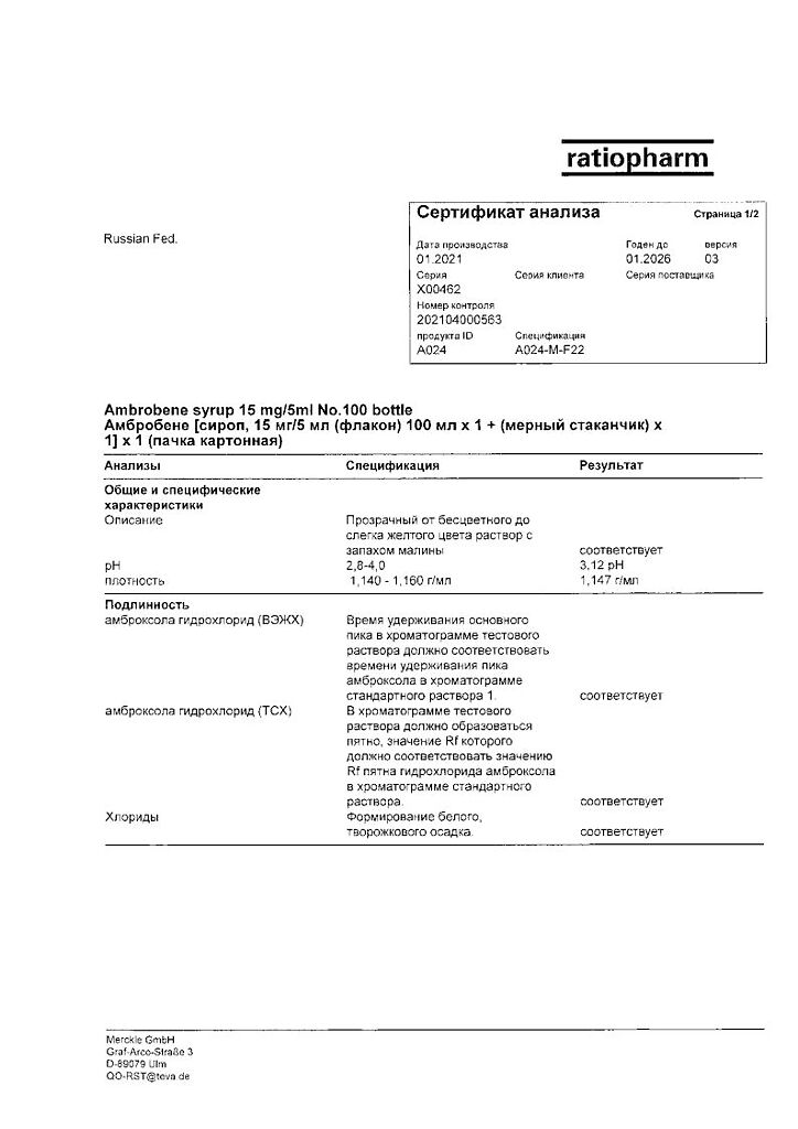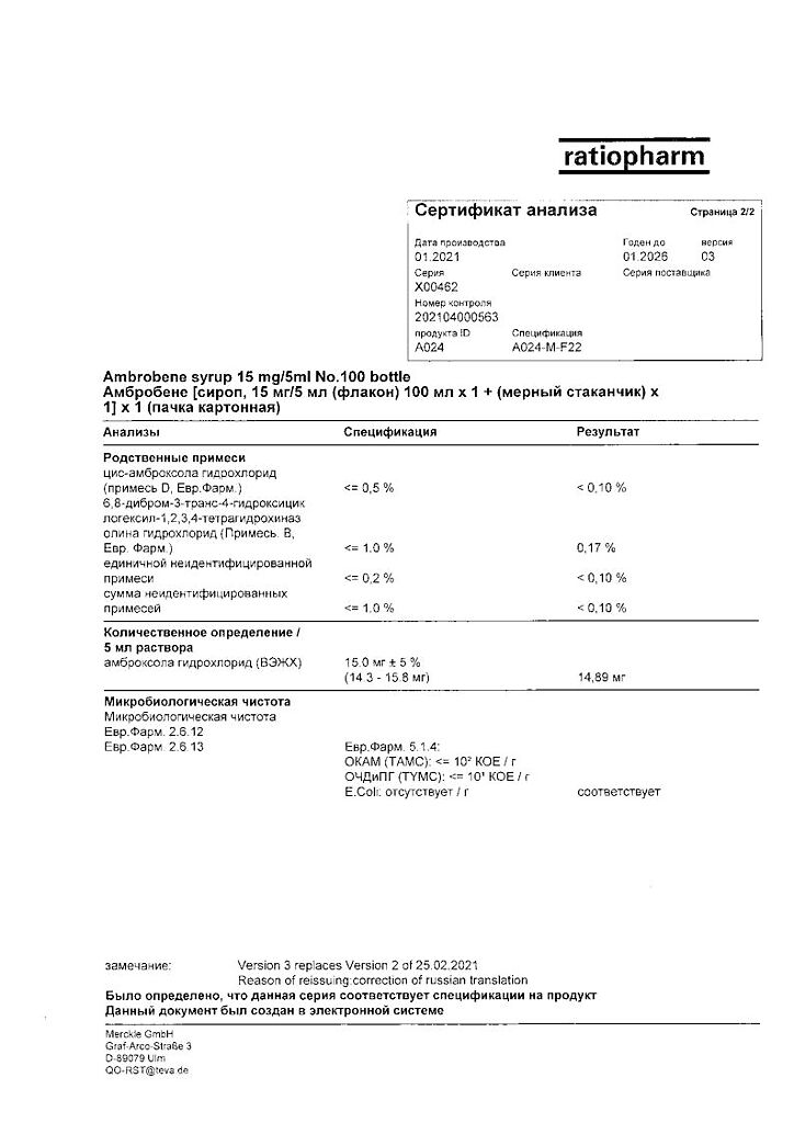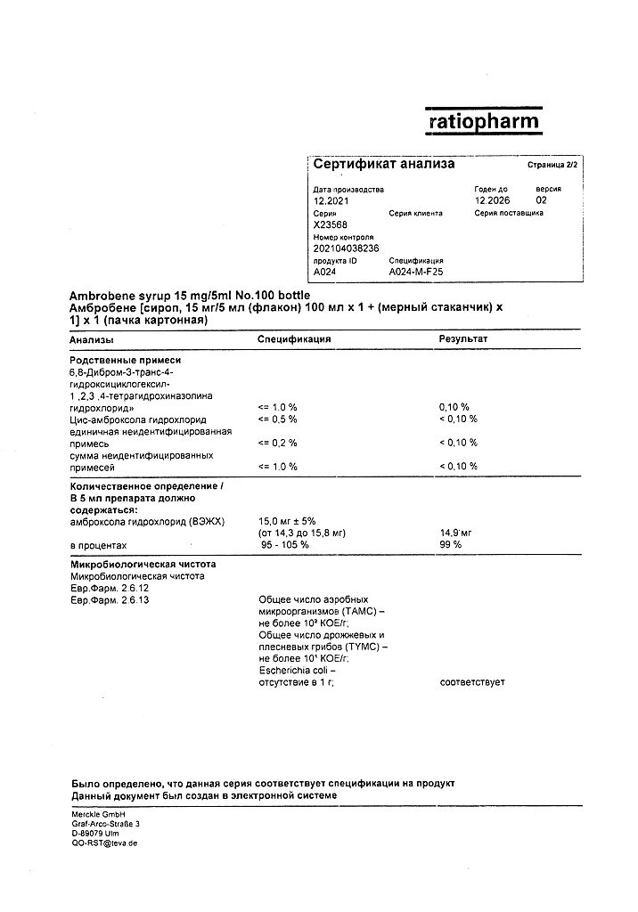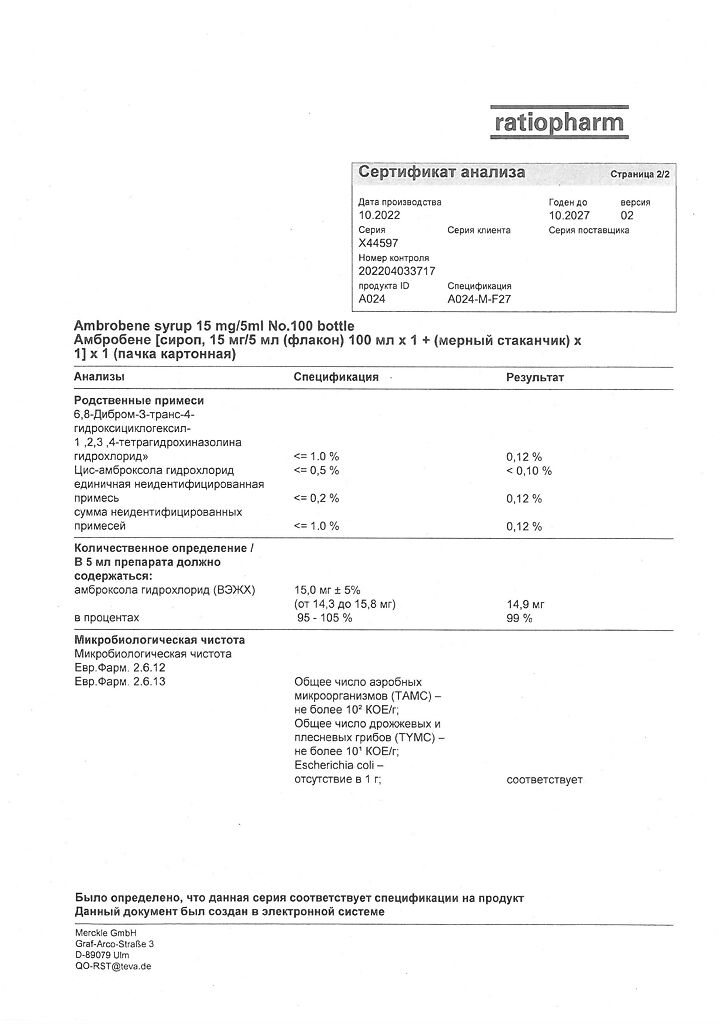 Беру этот сипоп не первыц раз, у меня 2е детей и обычно болеют оба, одного флакона хватает на неделю использования. Старшей дочке (3 года) нравится вкус. На 3й день кашель приобретает влажный характер. Удобство препарата в том, что он может хранится дольше чем стандартный сироп амброксола, который п ... осле вскрытия и недельного использования можно ввкинуть, а Амбробене мы используем через несколько месяцев, когда у детей снова появляется кашель. Ещё