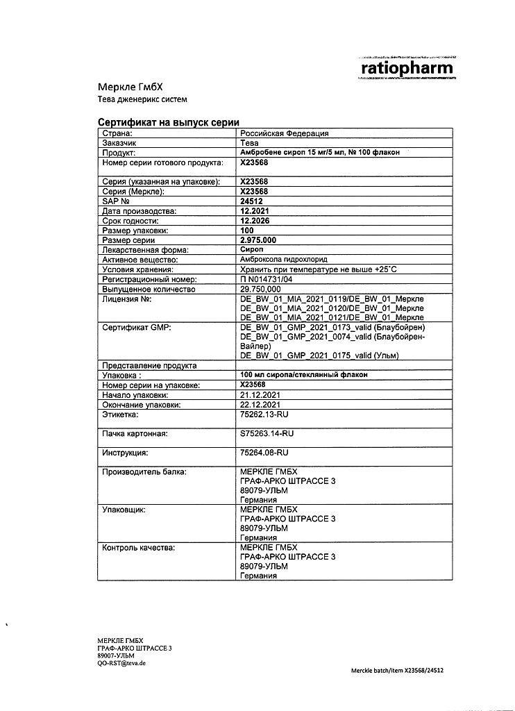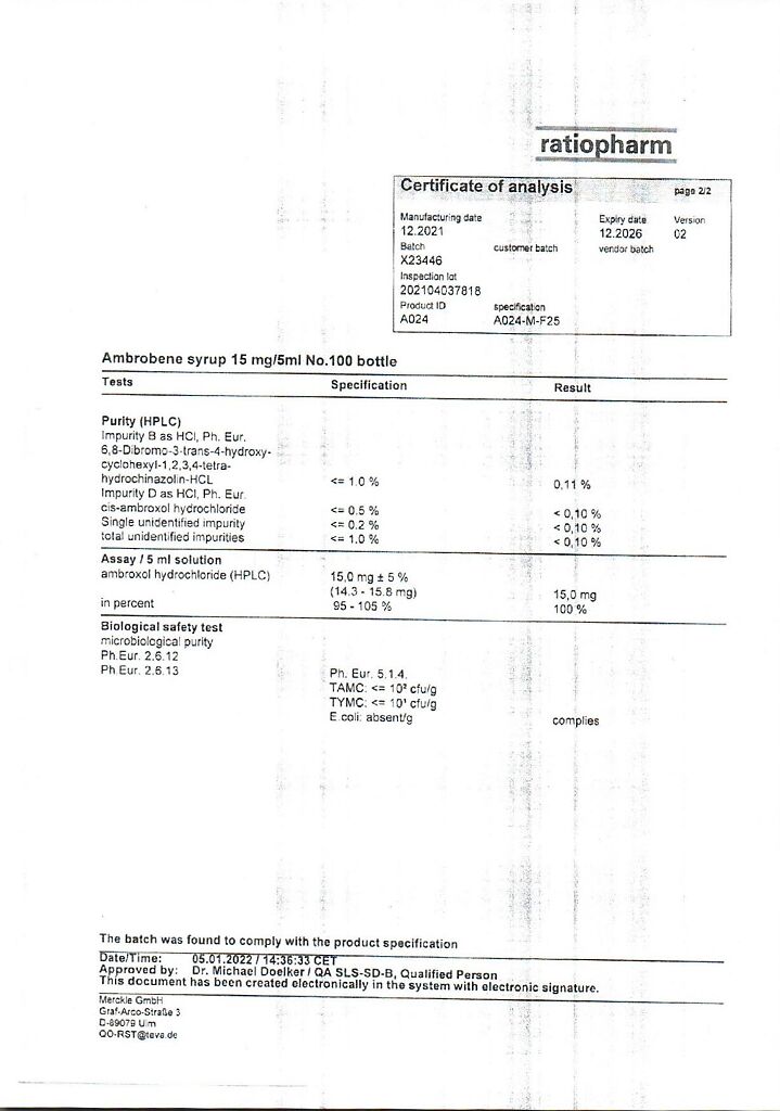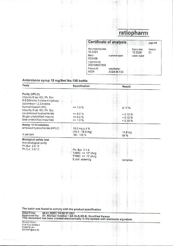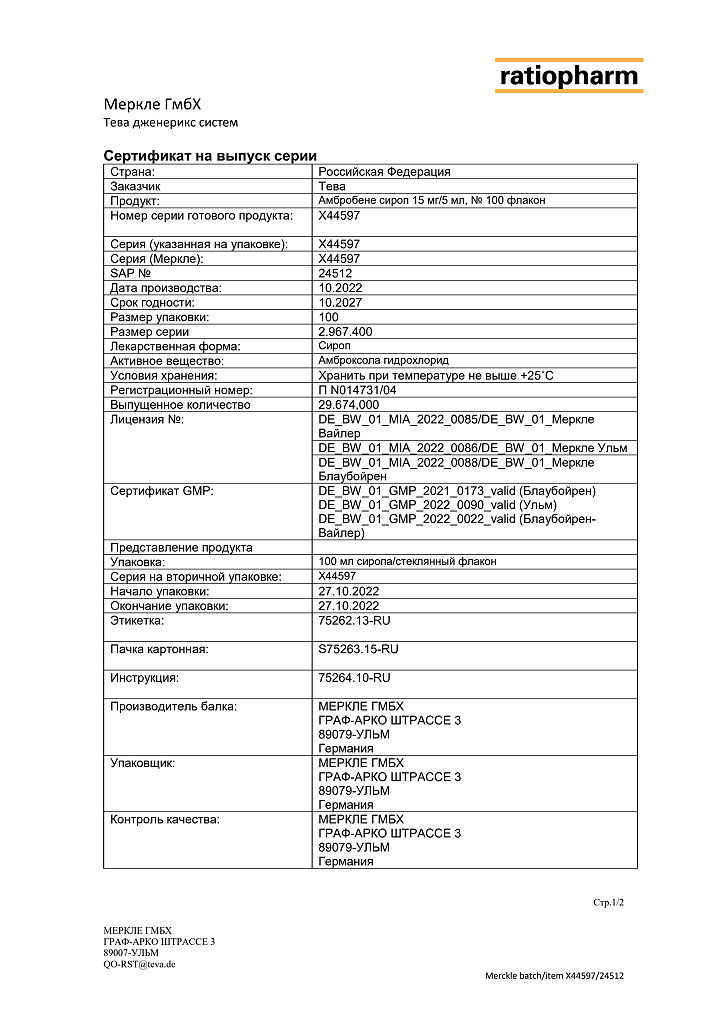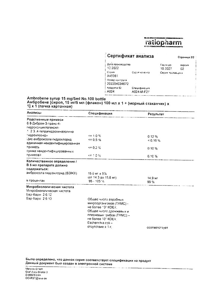 Беру этот сипоп не первыц раз, у меня 2е детей и обычно болеют оба, одного флакона хватает на неделю использования. Старшей дочке (3 года) нравится вкус. На 3й день кашель приобретает влажный характер. Удобство препарата в том, что он может хранится дольше чем стандартный сироп амброксола, который п ... осле вскрытия и недельного использования можно ввкинуть, а Амбробене мы используем через несколько месяцев, когда у детей снова появляется кашель. Ещё