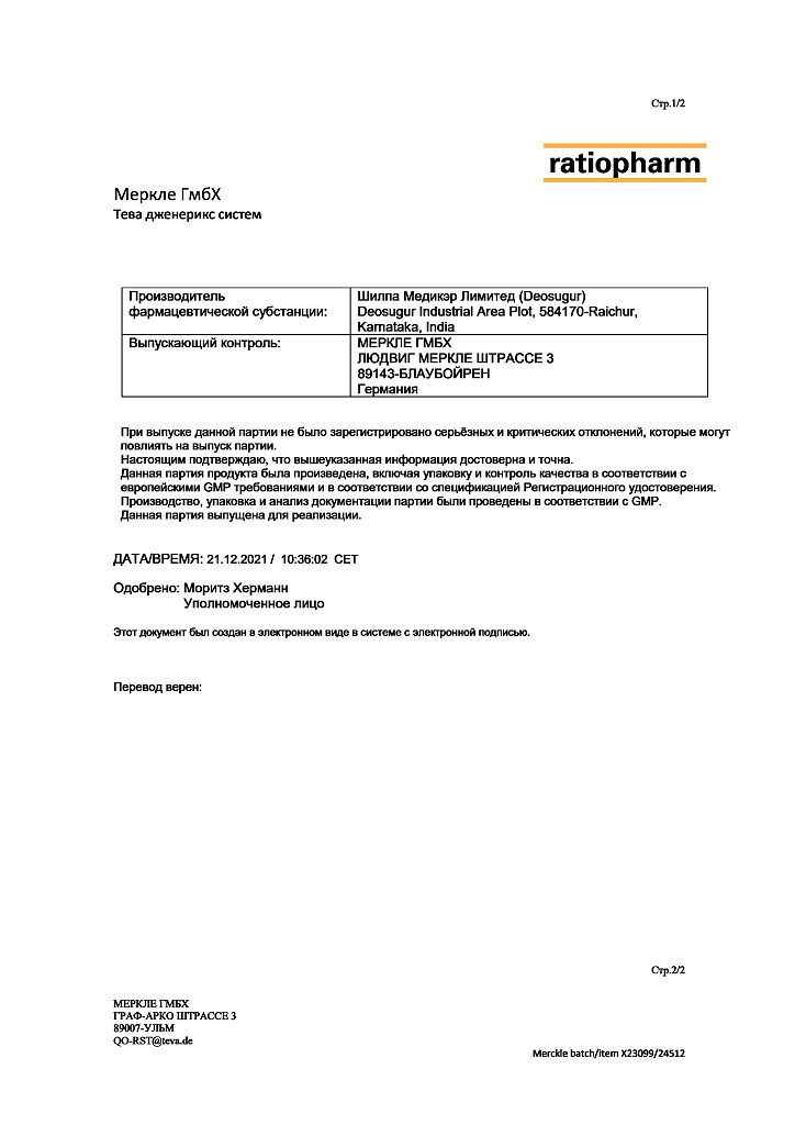 Страница носит информационный характер о наличии препаратов. Перед назначением и применением проконсультируйтесь с врачом