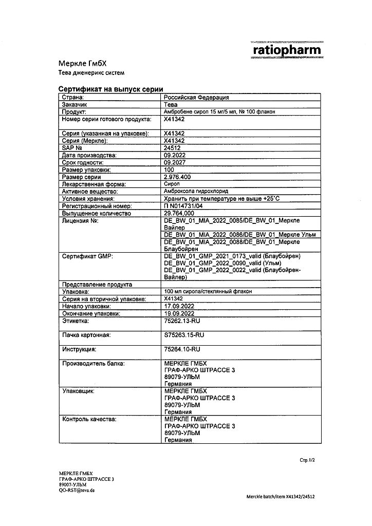 Амбробене: 42 отзыва покупателей и фармацевтов
