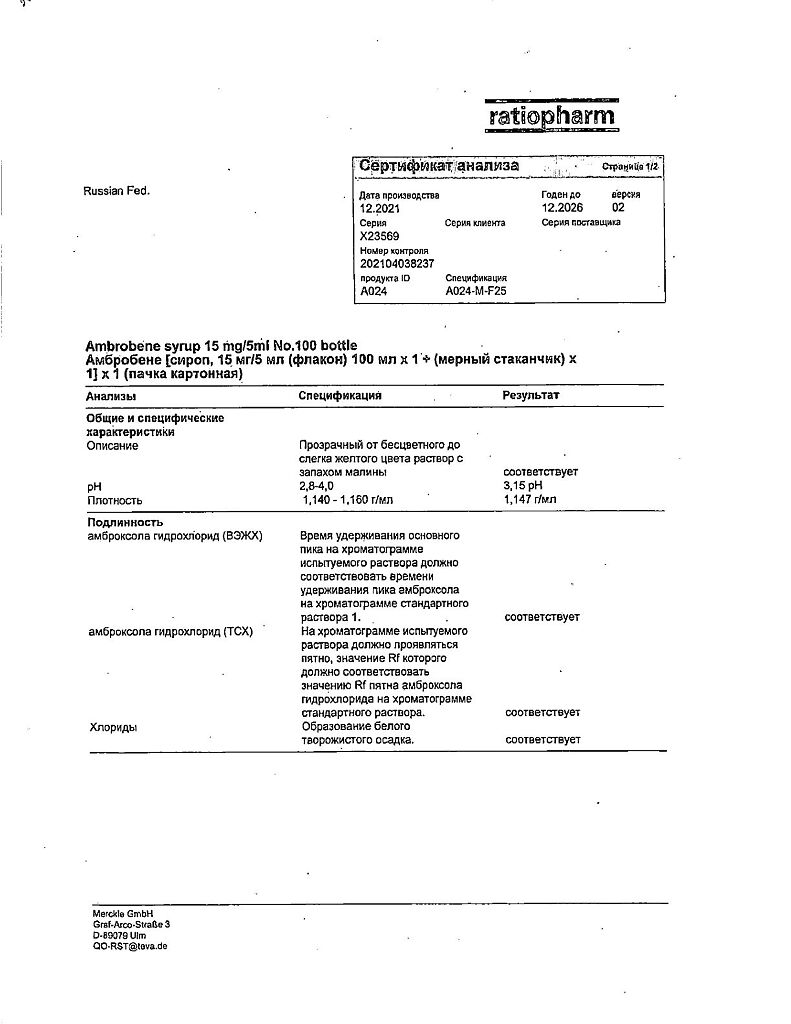 • Информацию об акциях и скидках на Амбробене уточняйте на нашем сайте.