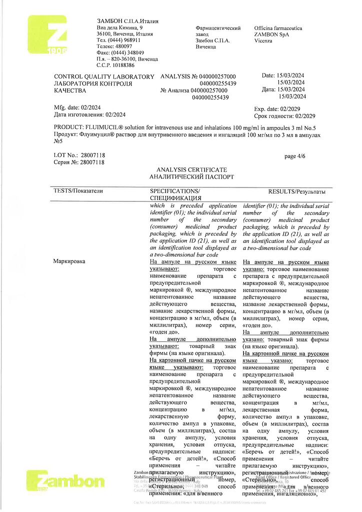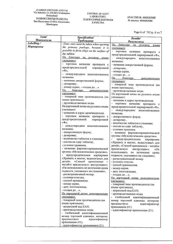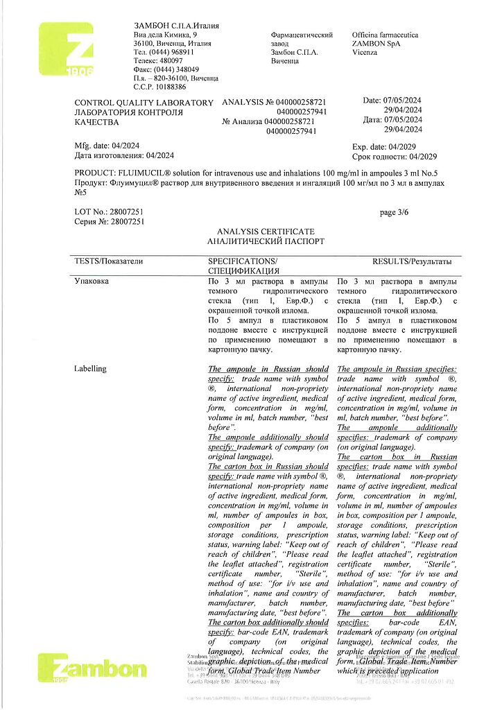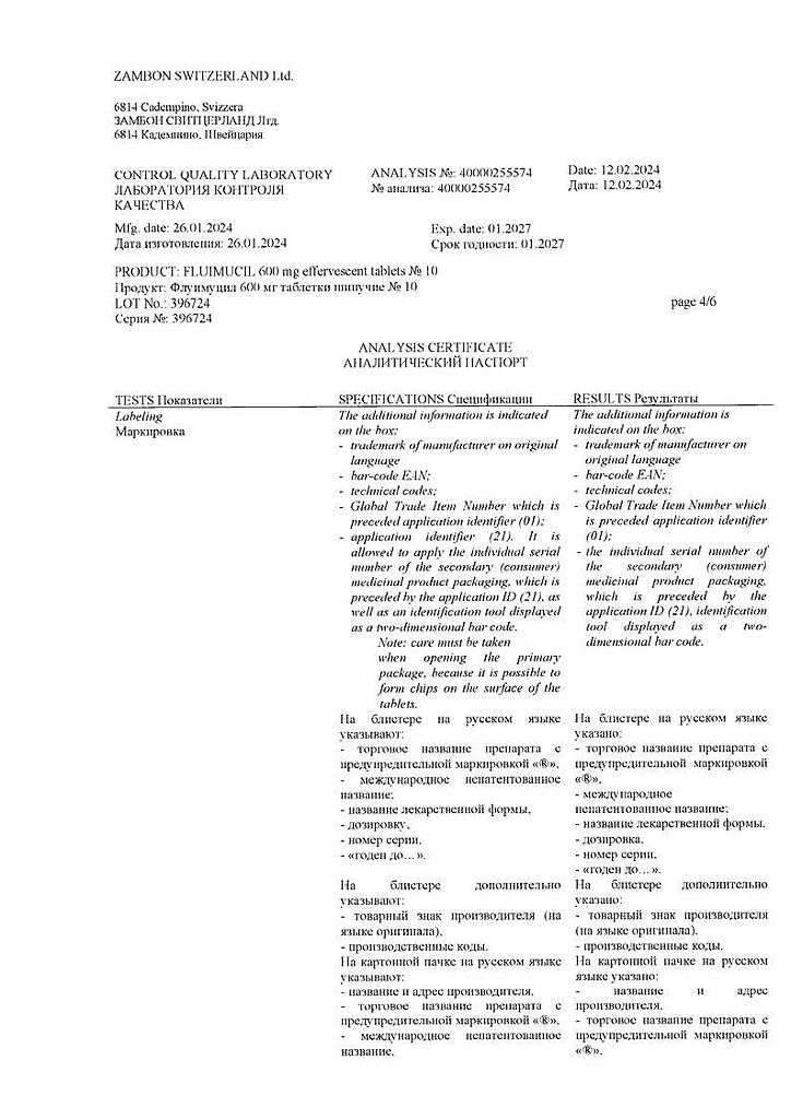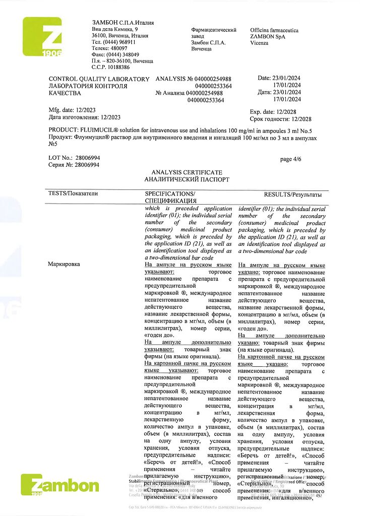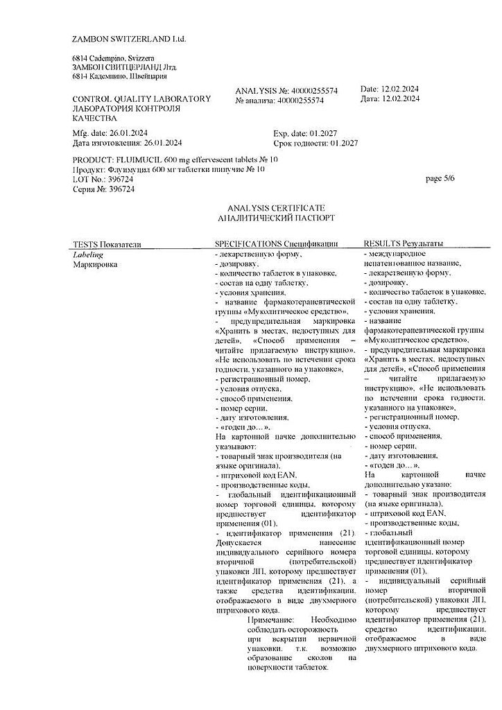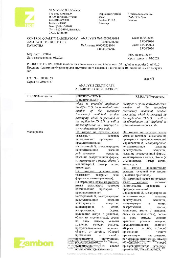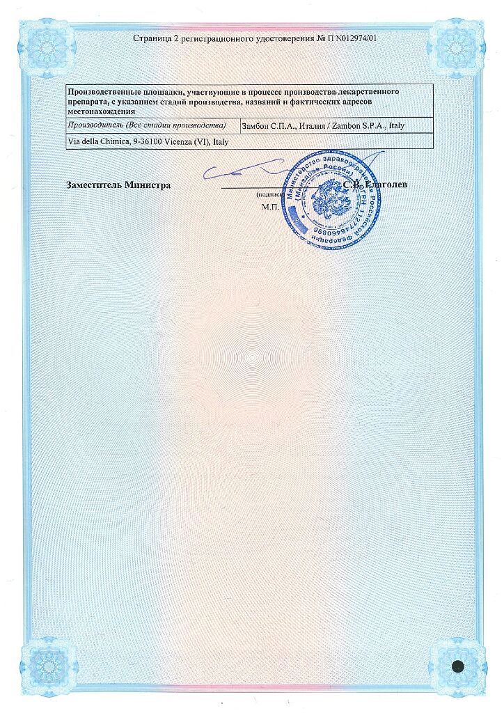 Производитель: ЗАМБОН СВИТЦЕРЛАНД ЛТД., Швейцария