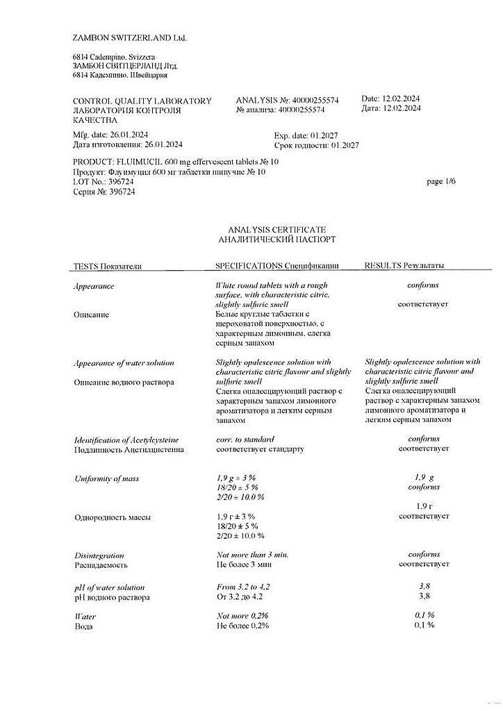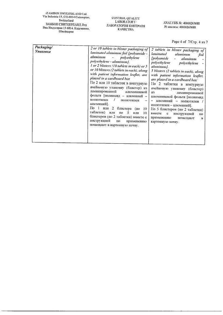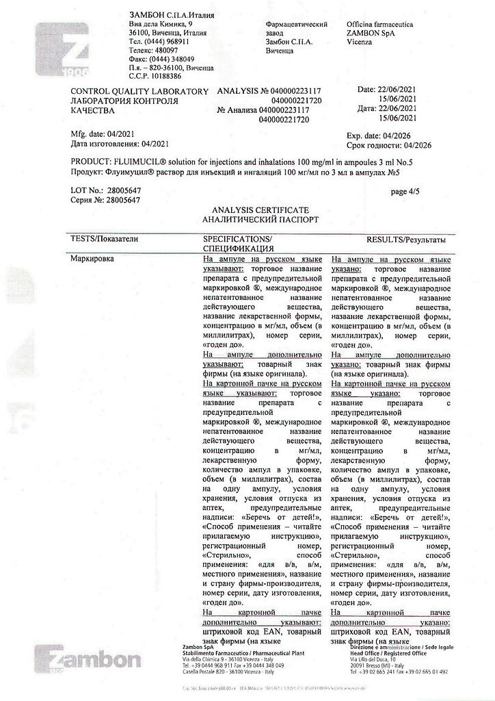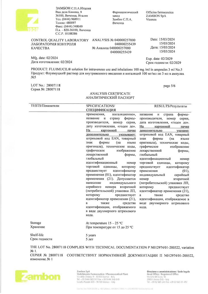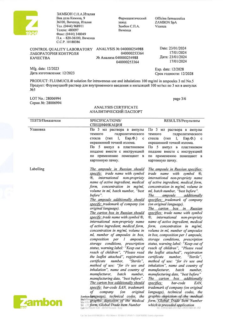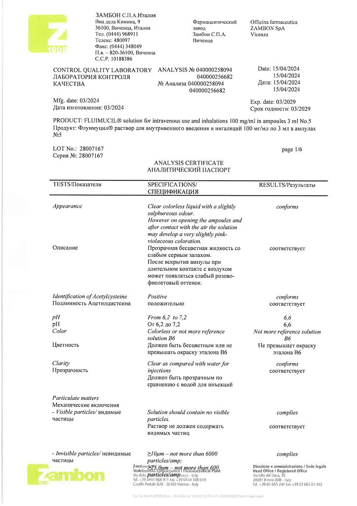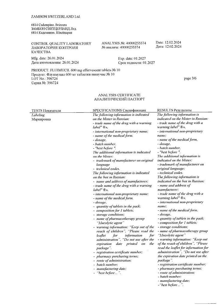 Производитель: ЗАМБОН СВИТЦЕРЛАНД ЛТД., Швейцария