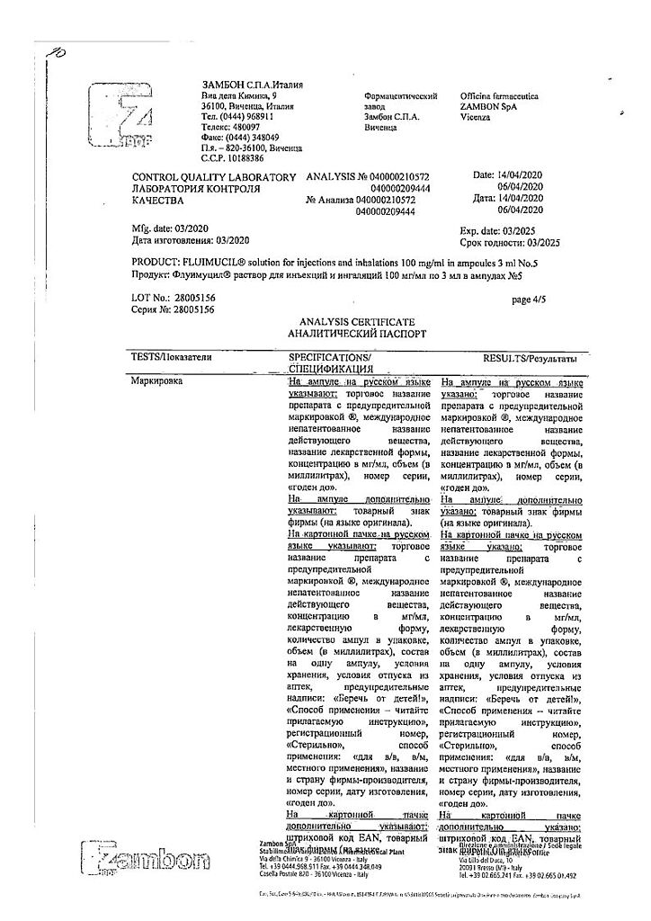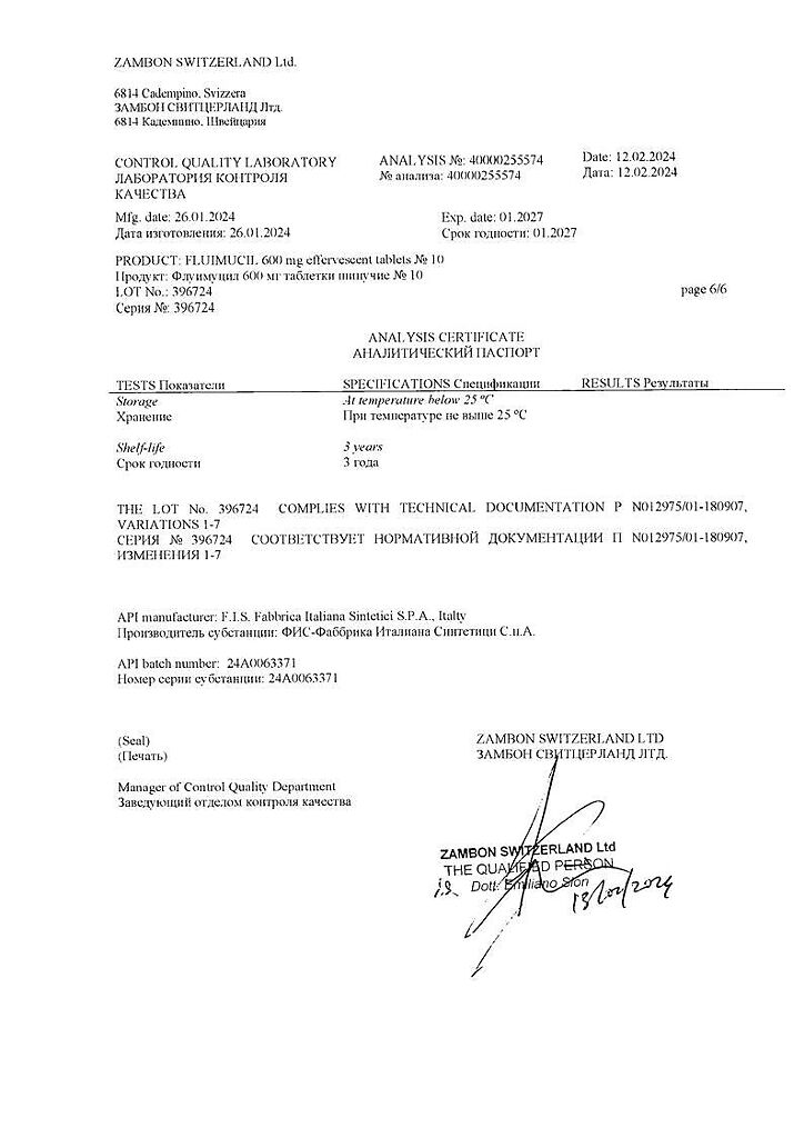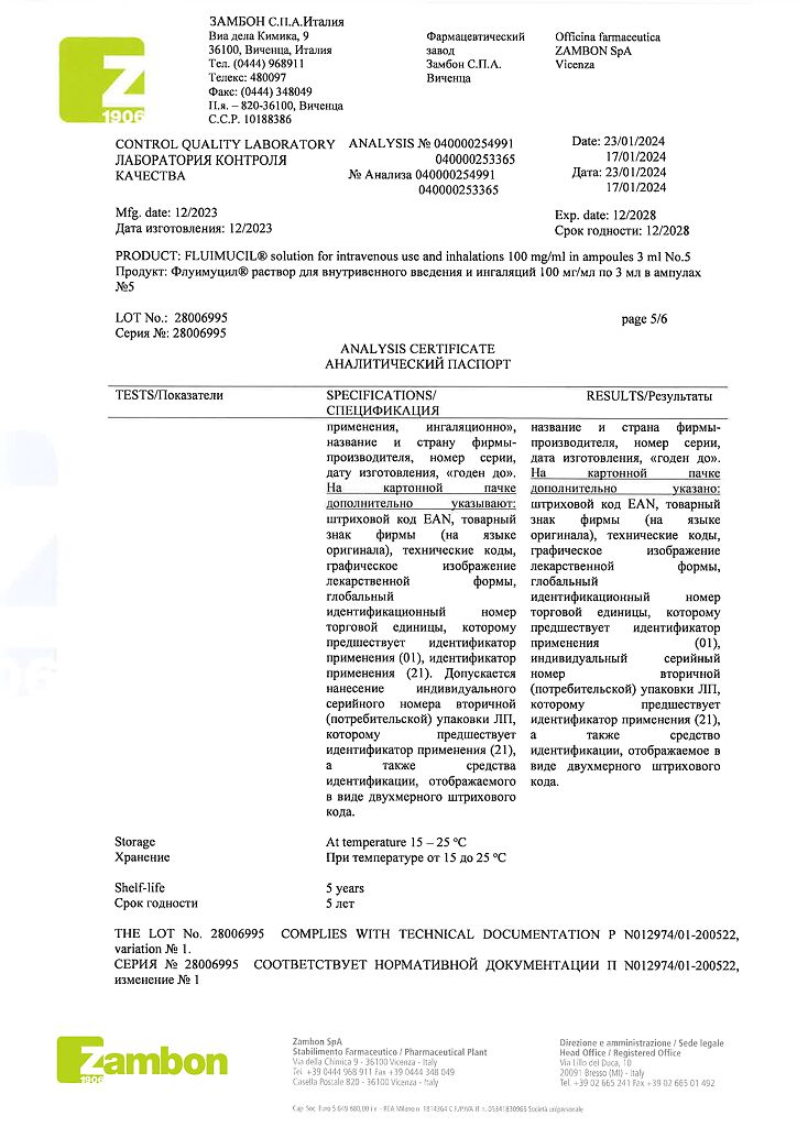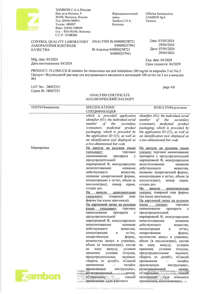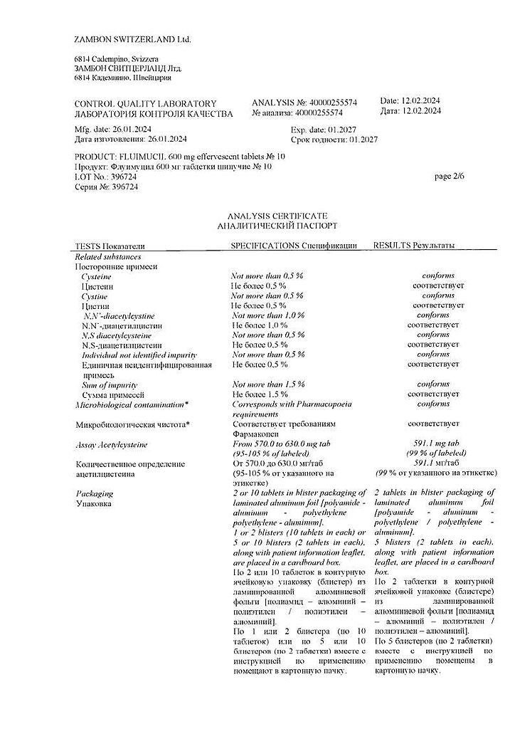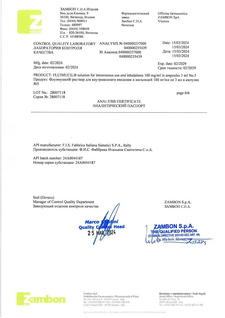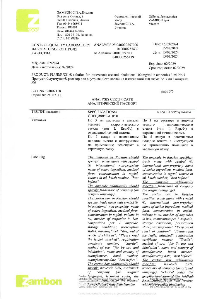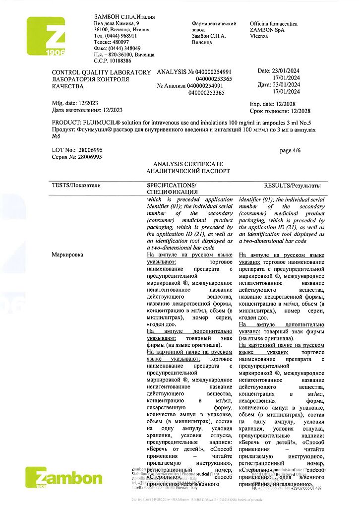 Производитель: ЗАМБОН СВИТЦЕРЛАНД ЛТД., Швейцария