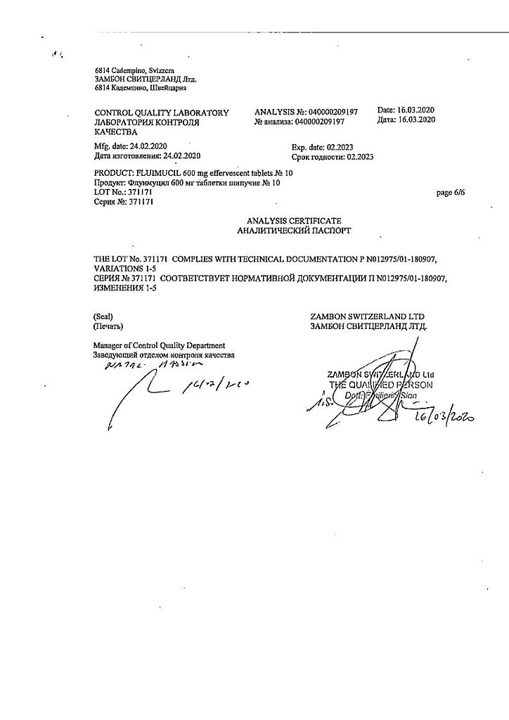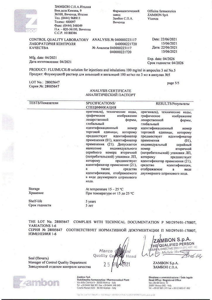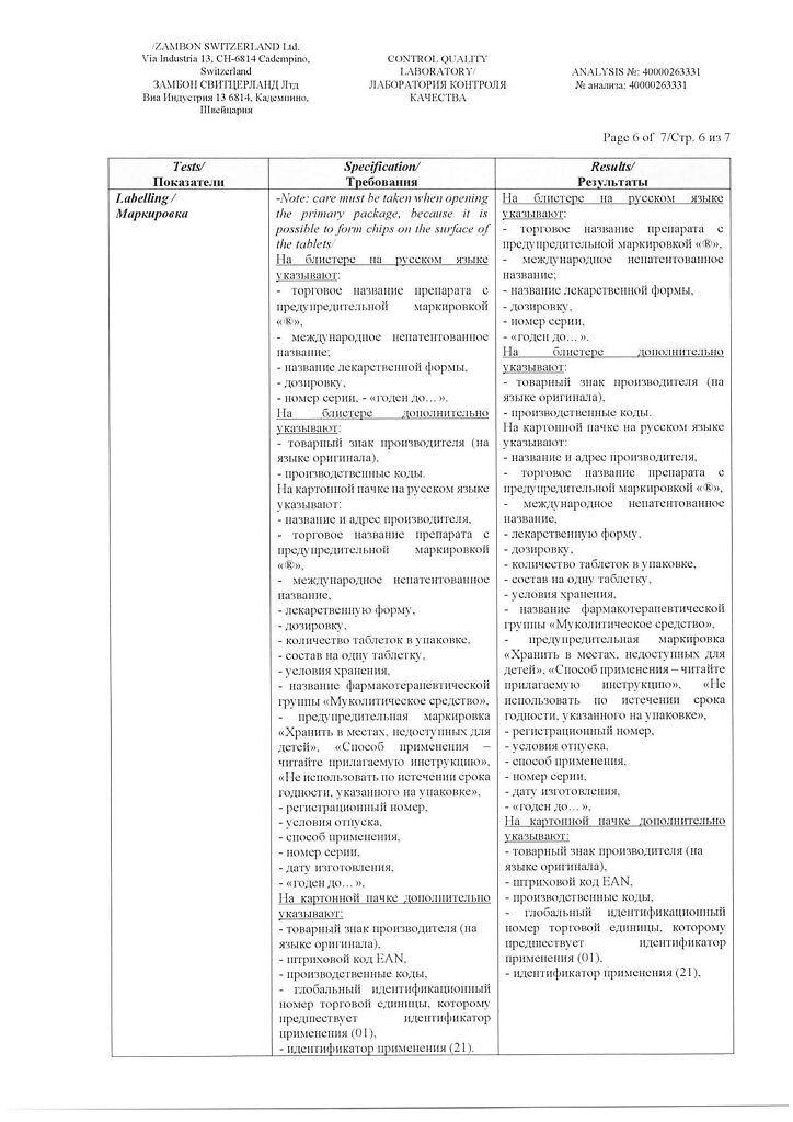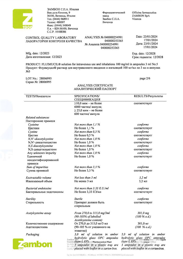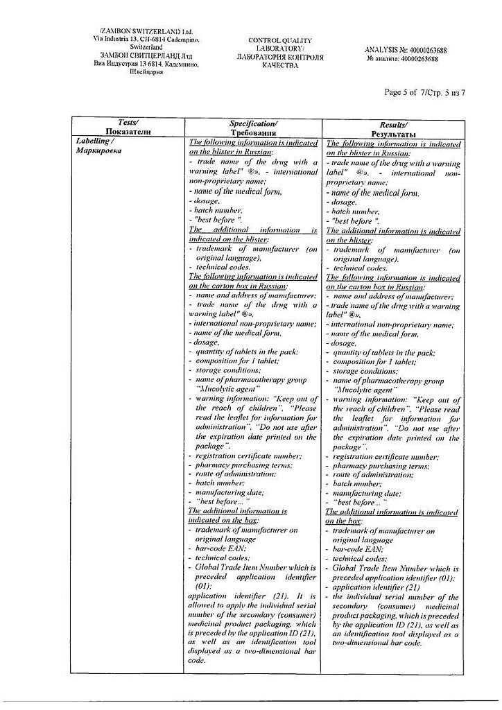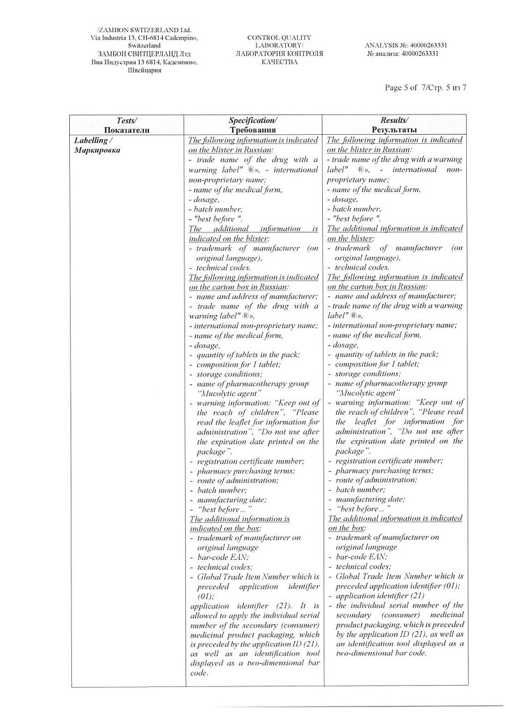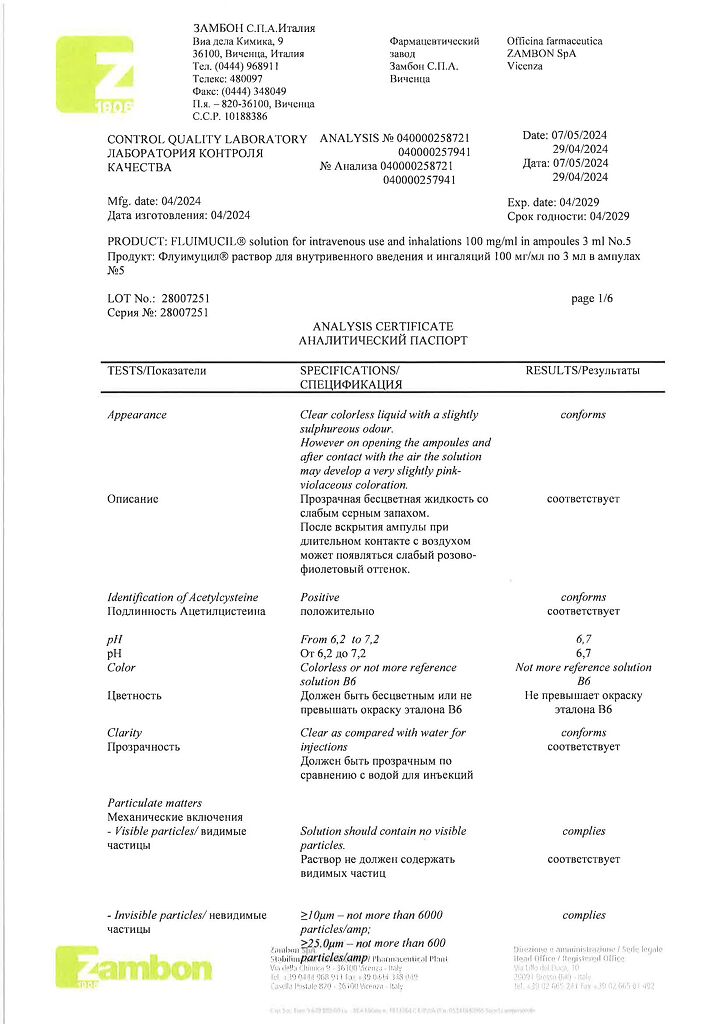 Производитель: ЗАМБОН СВИТЦЕРЛАНД ЛТД., Швейцария