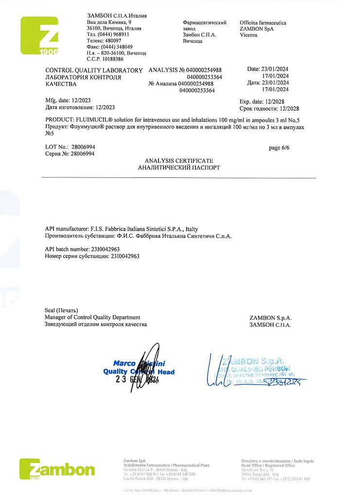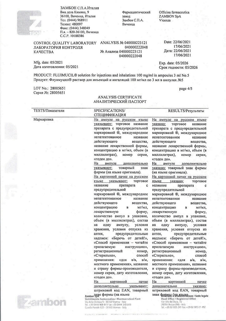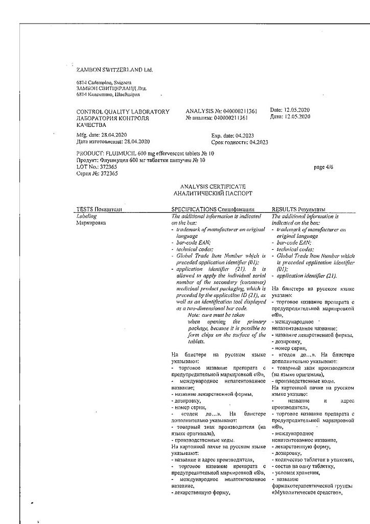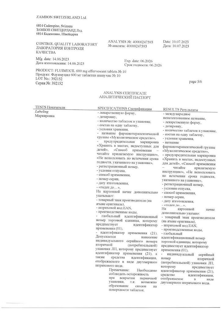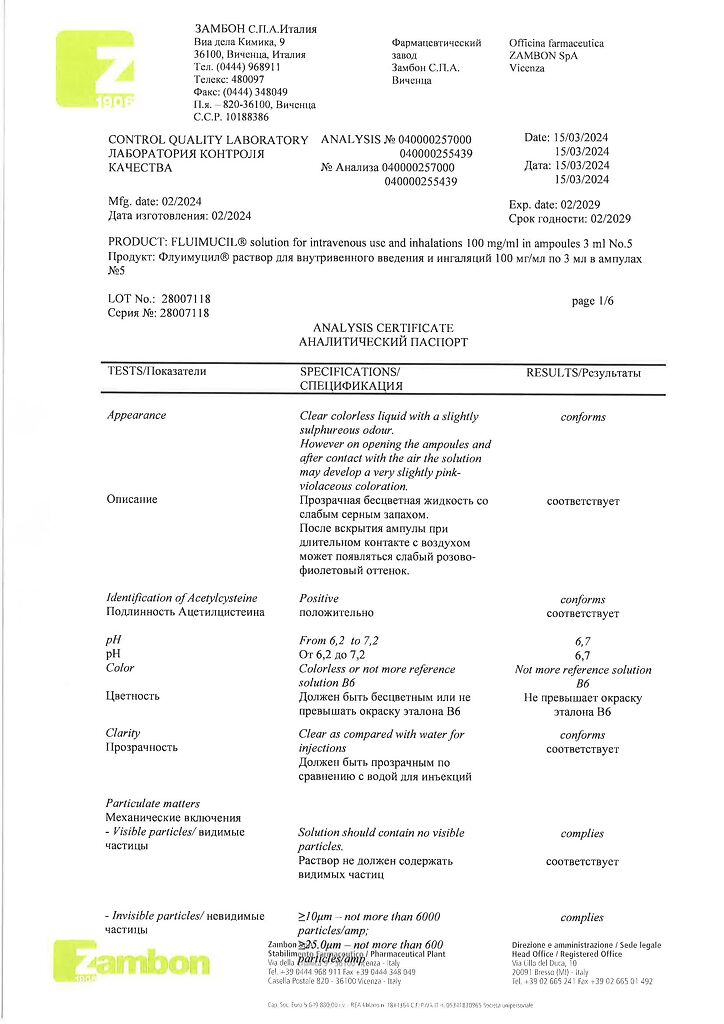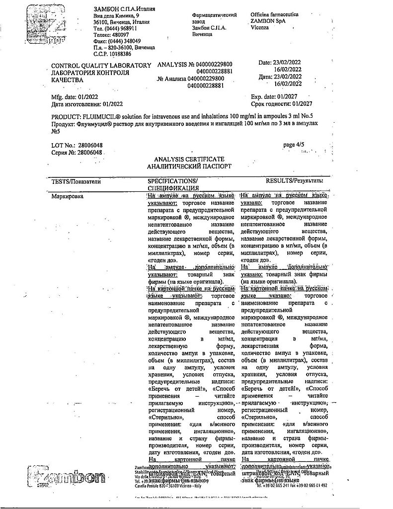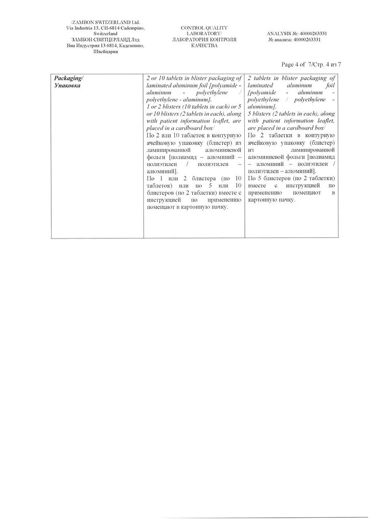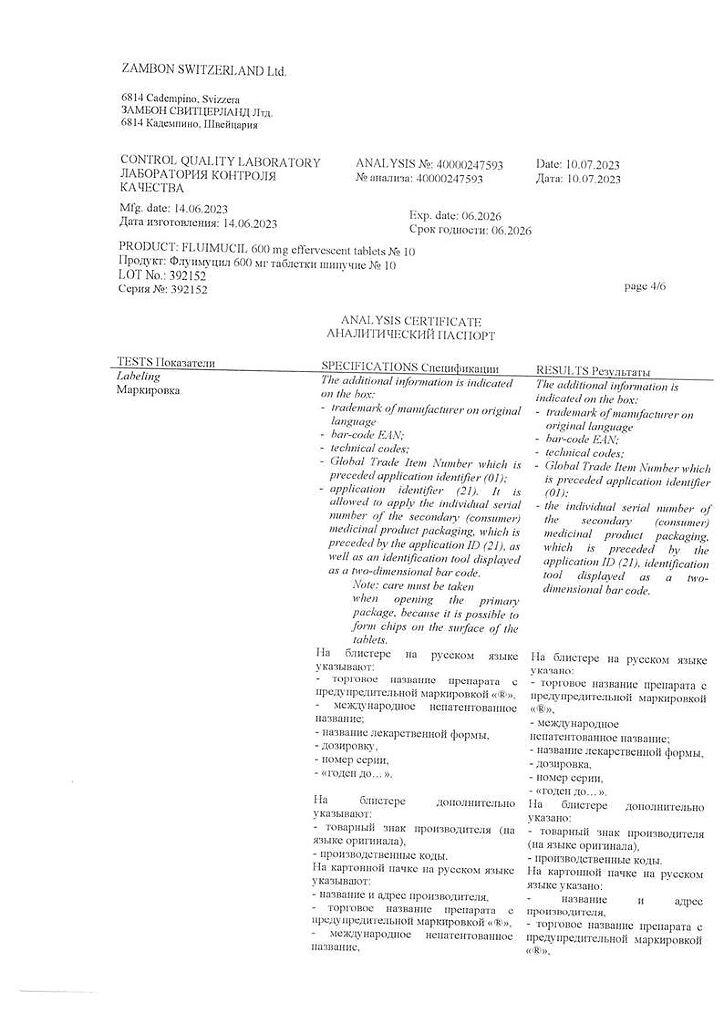 Производитель: ЗАМБОН СВИТЦЕРЛАНД ЛТД., Швейцария