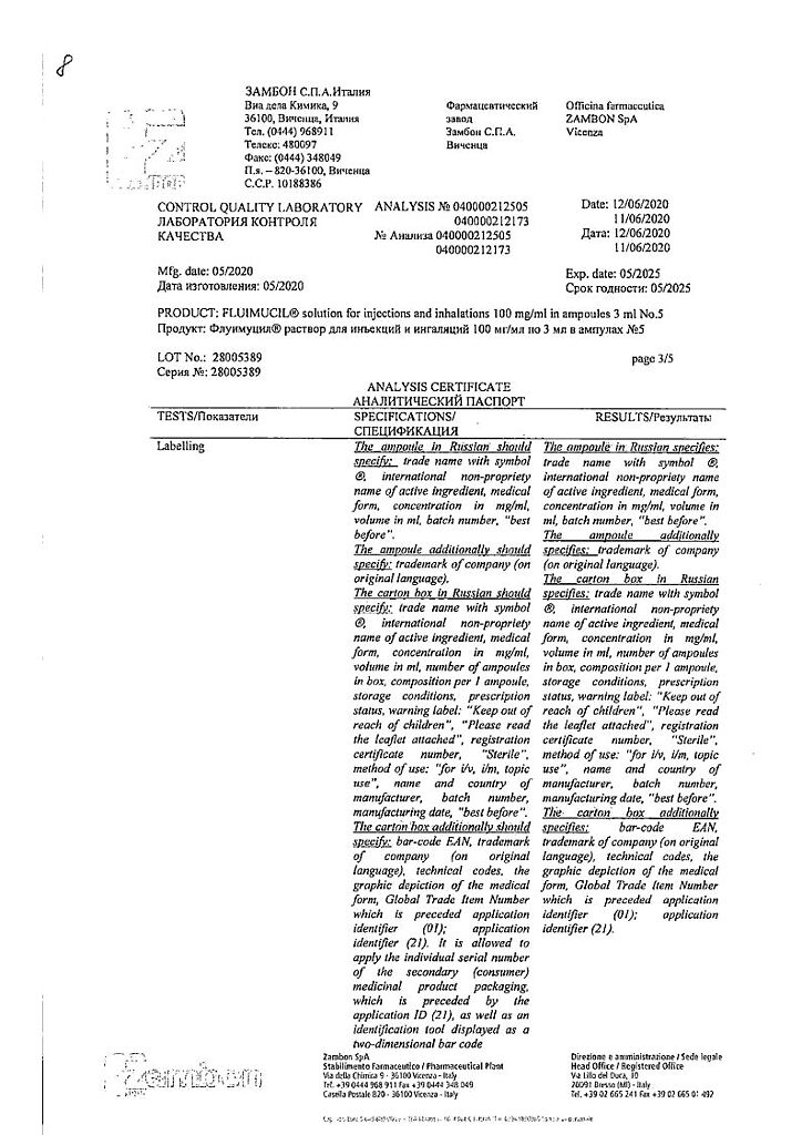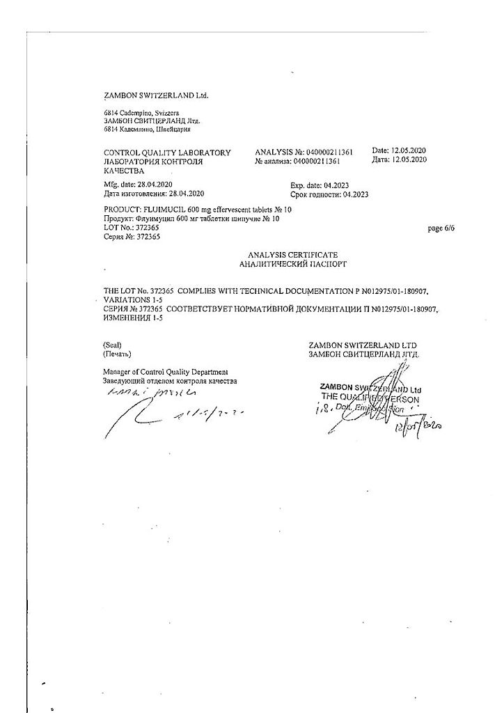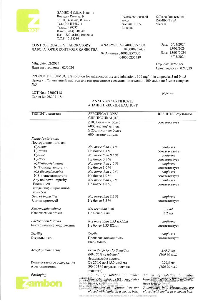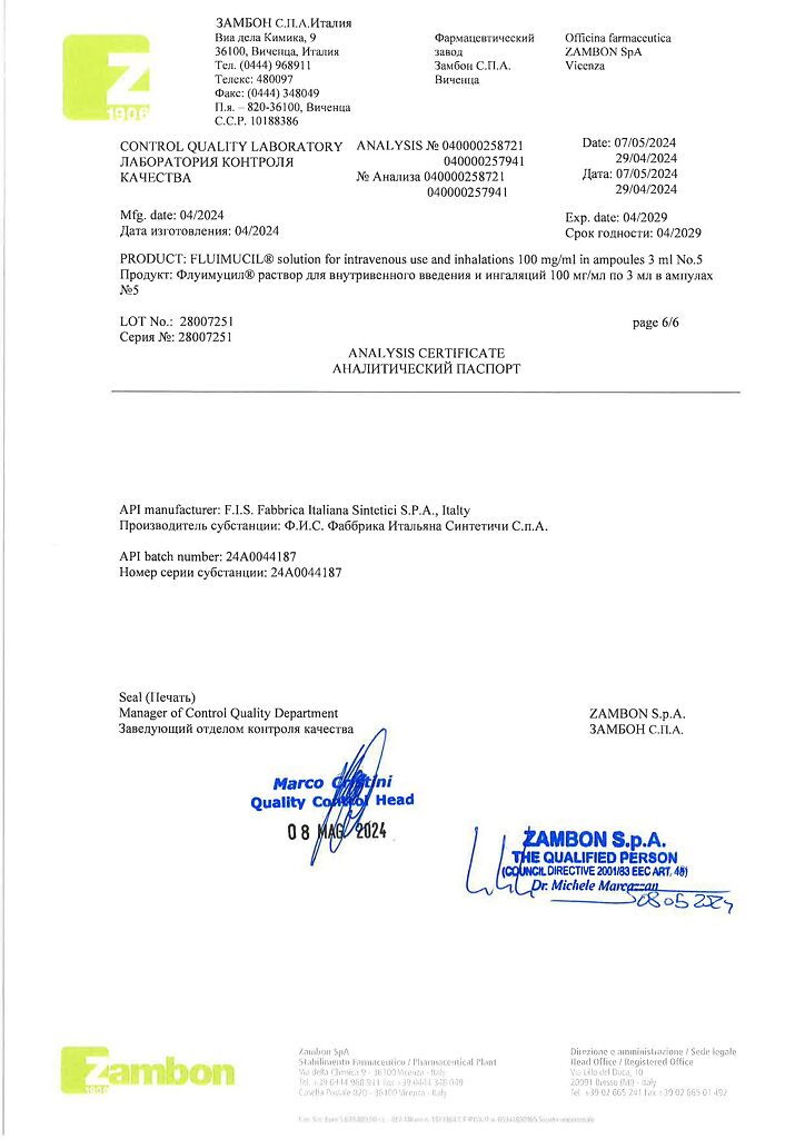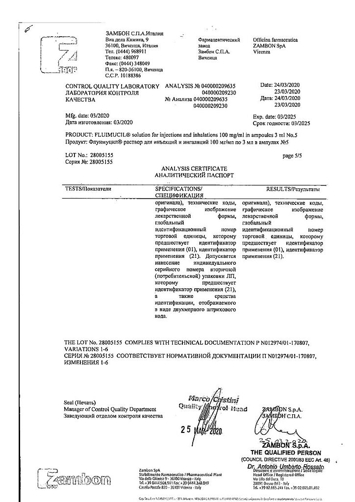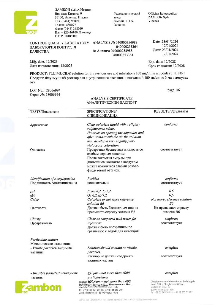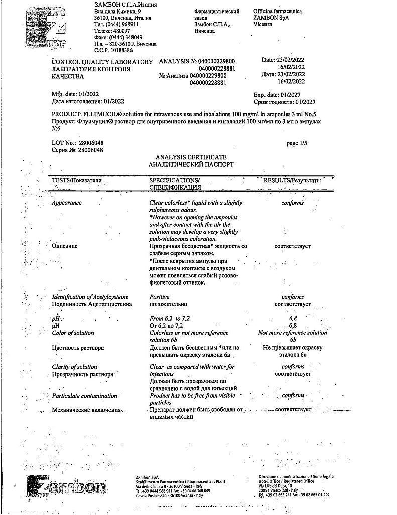Производитель: ЗАМБОН СВИТЦЕРЛАНД ЛТД., Швейцария