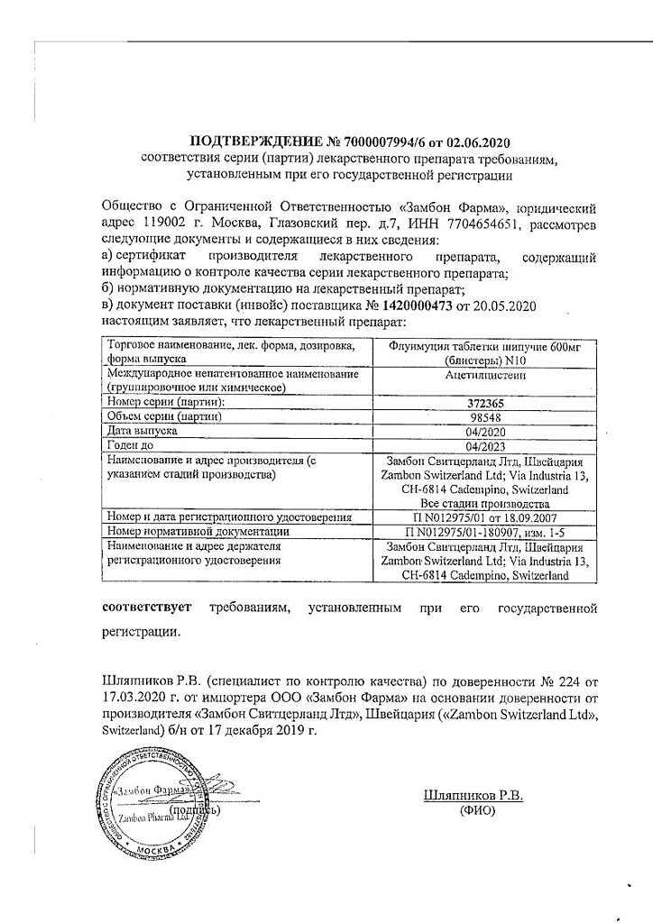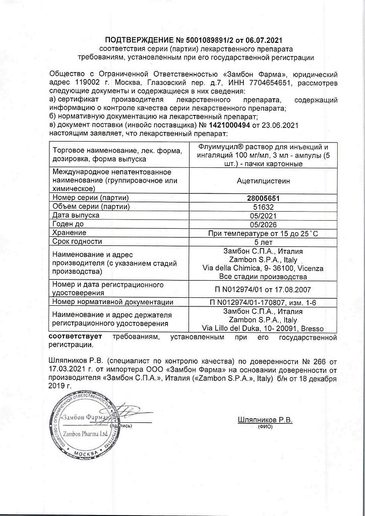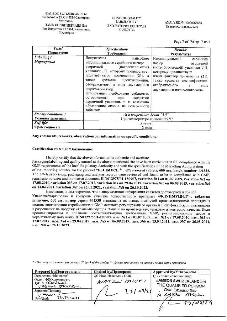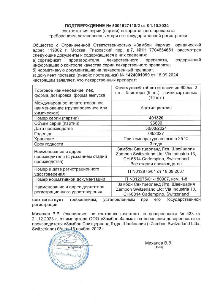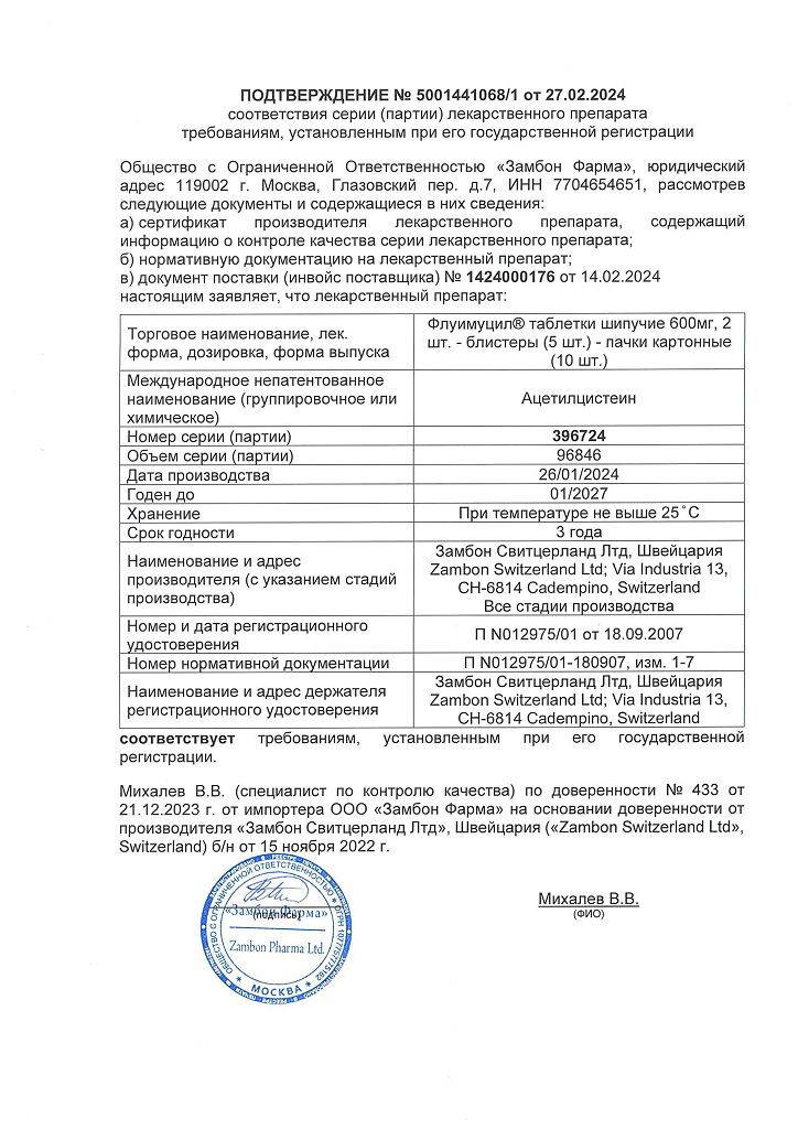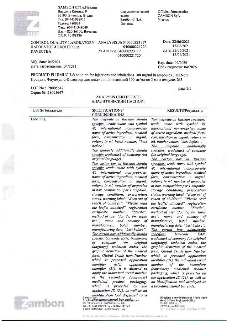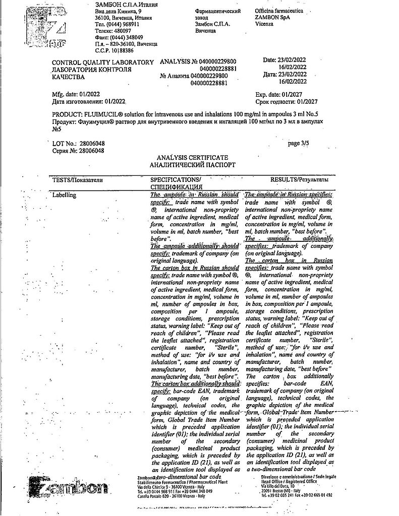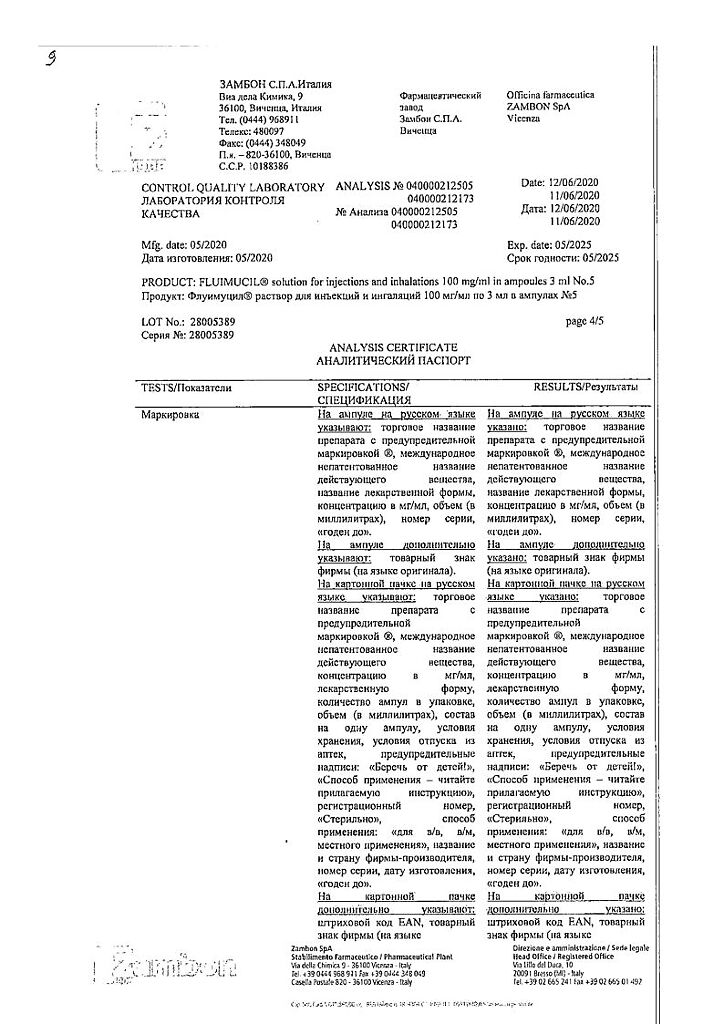 Производитель: ЗАМБОН СВИТЦЕРЛАНД ЛТД., Швейцария