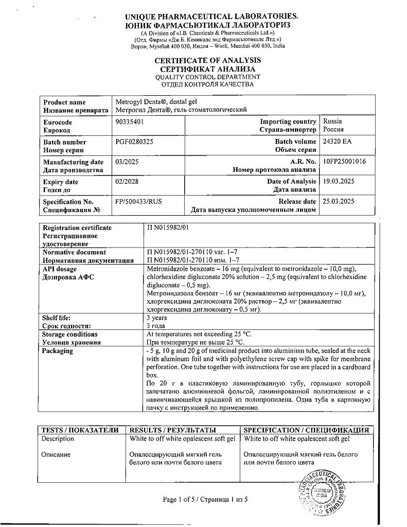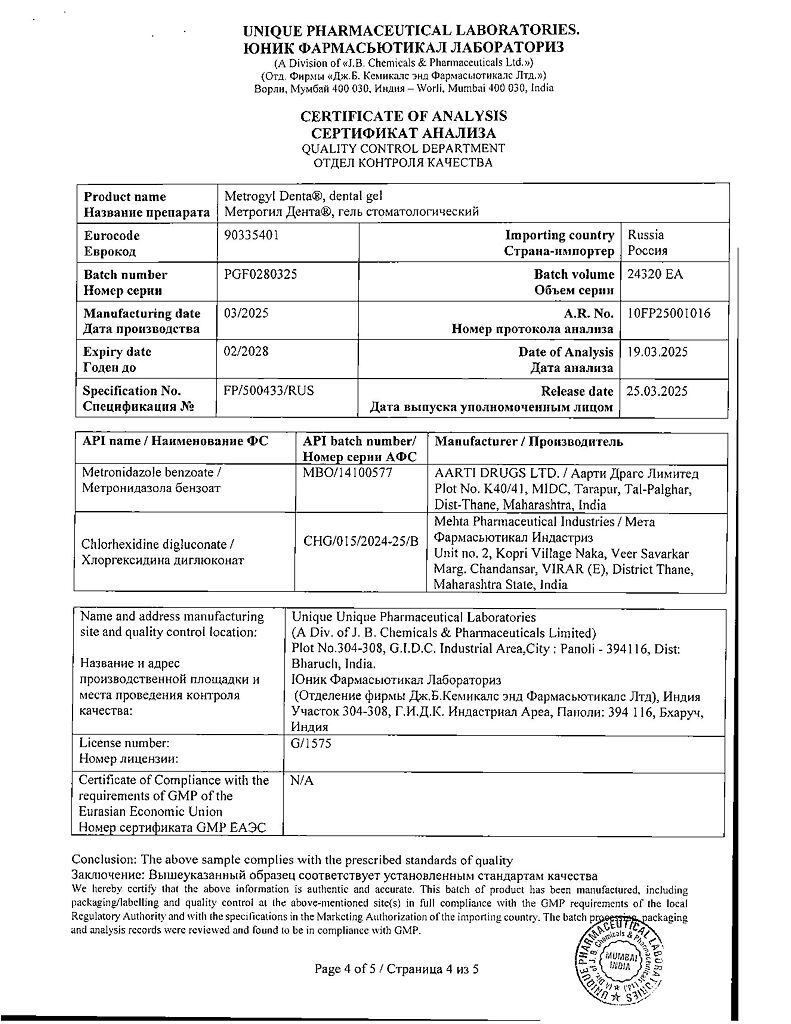 Производитель: Юник Фармасьютикал Лабораториз, Индия