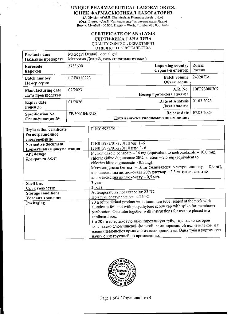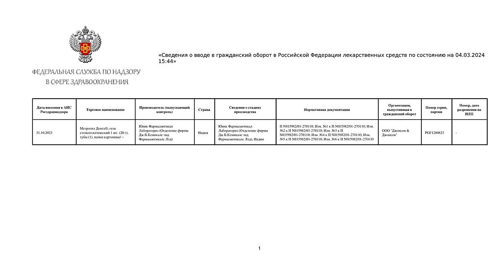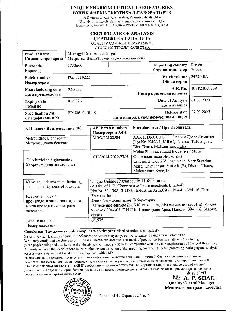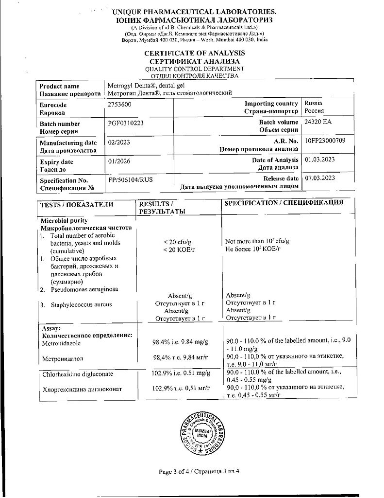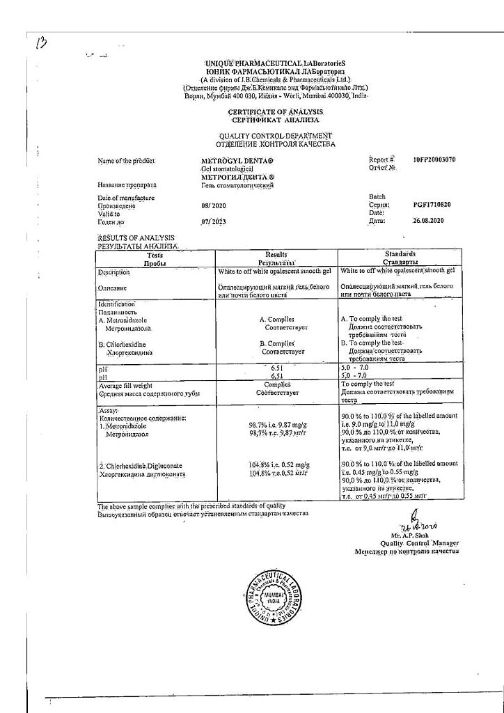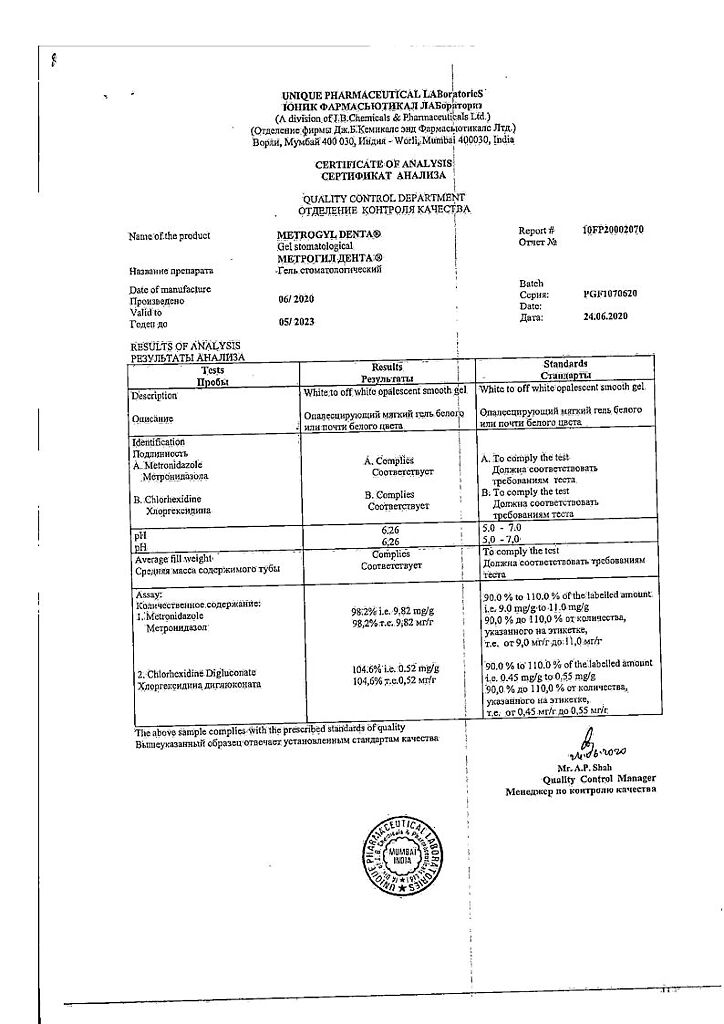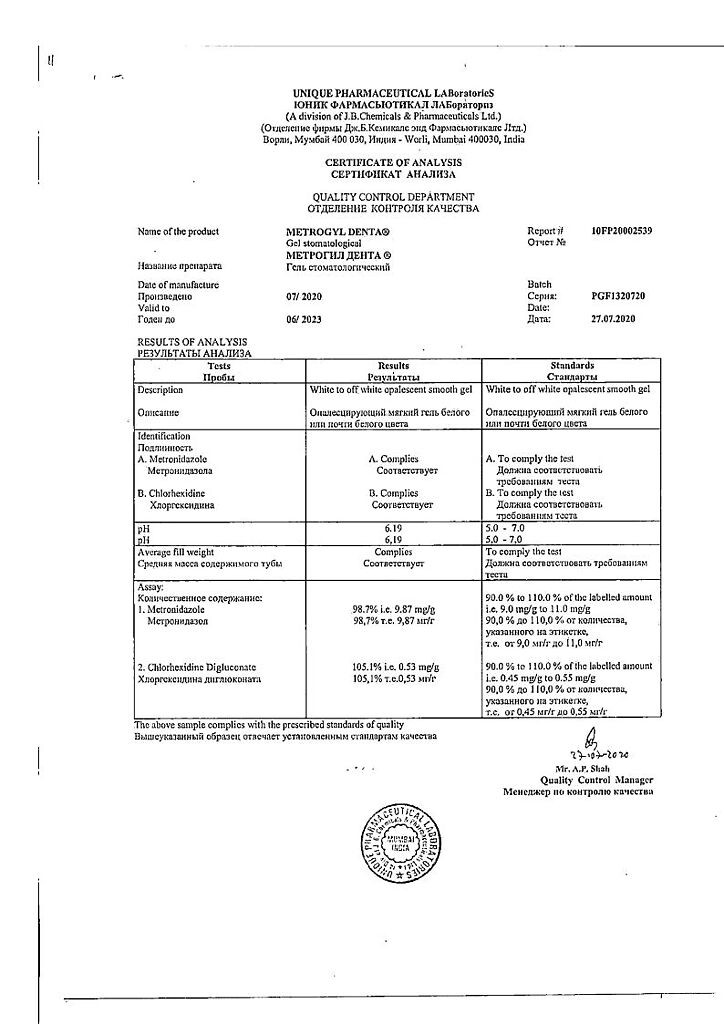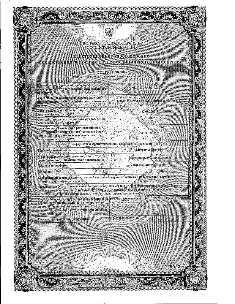 Применение Метрогил Дента не заменяет гигиенической чистки зубов, поэтому во время курса лечения препаратом чистка зубов должна быть продолжена. Препарат следует хранить в недоступном для детей месте. При случайном или преднамеренном проглатывании препарата ребенком следует немедленно обратиться за медицинской помощью.