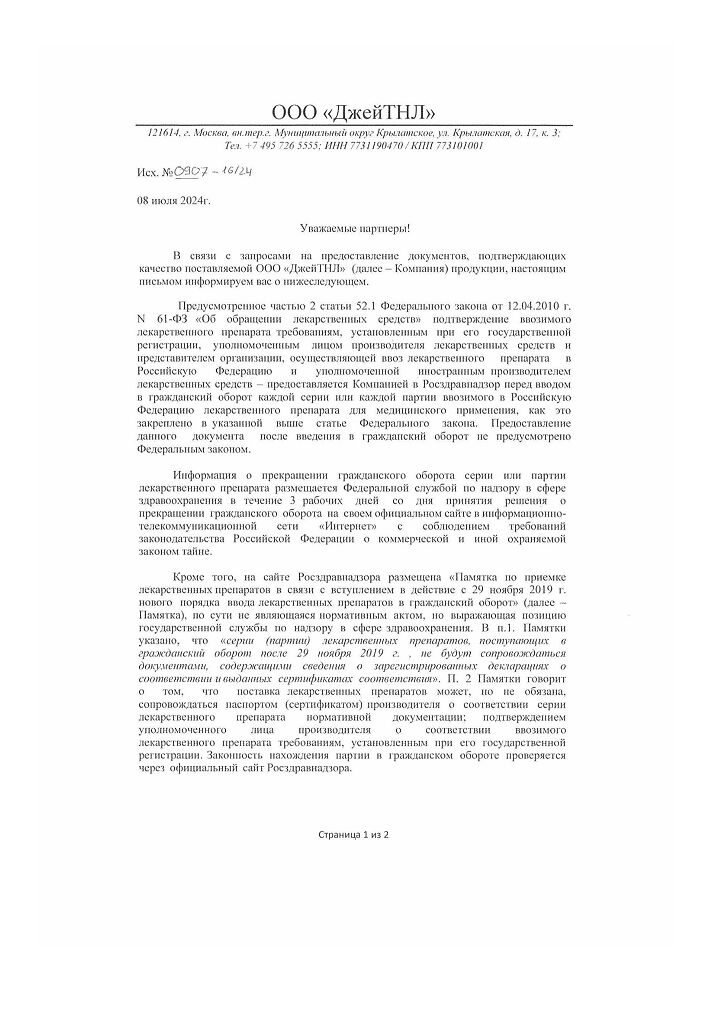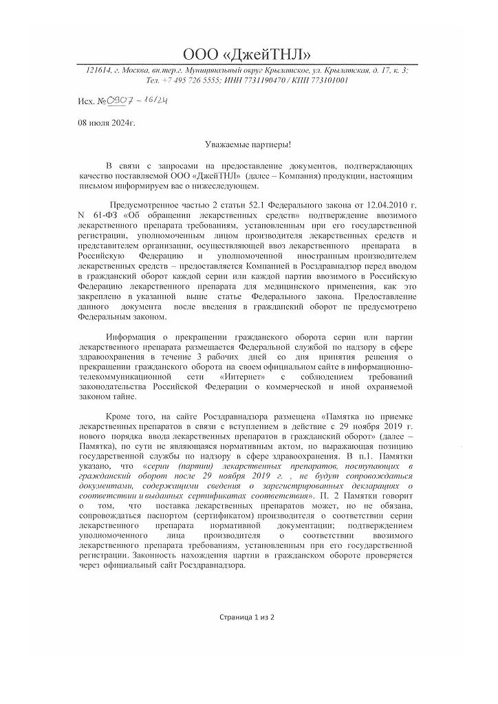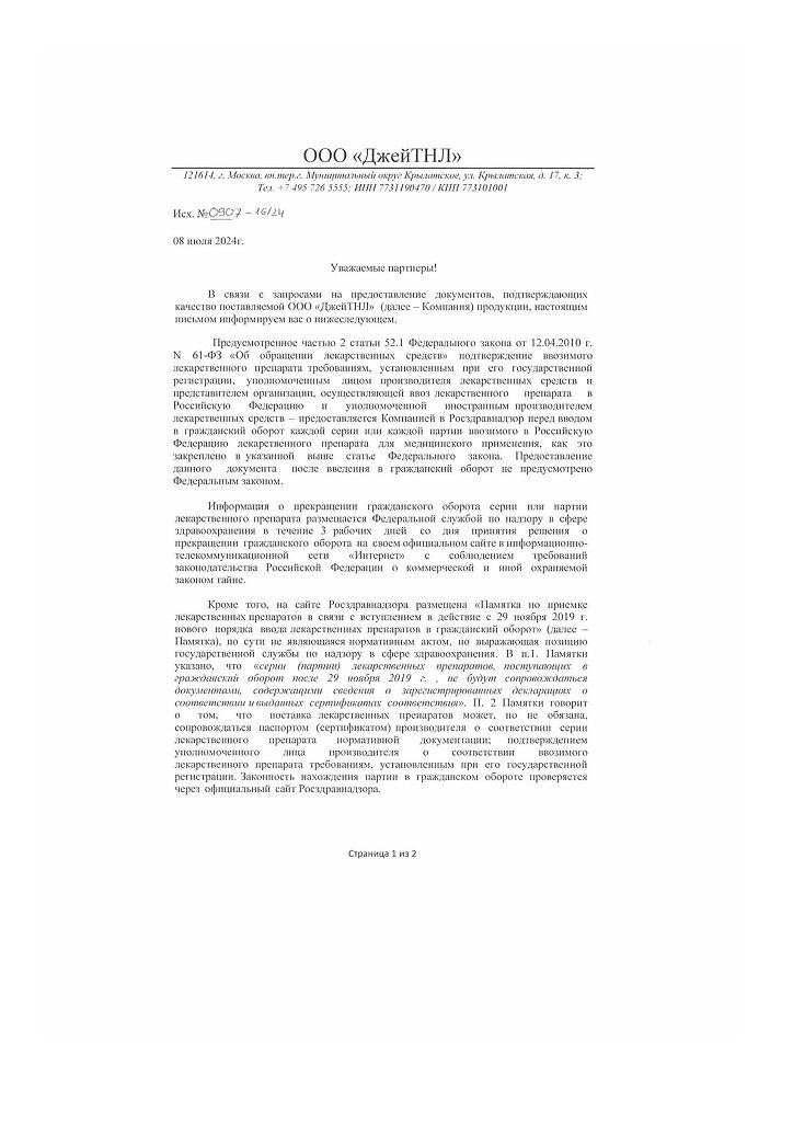 Страница носит информационный характер о наличии препаратов. Перед назначением и применением проконсультируйтесь с врачом