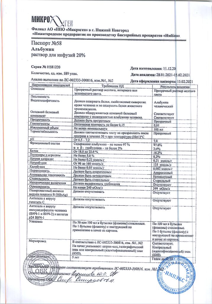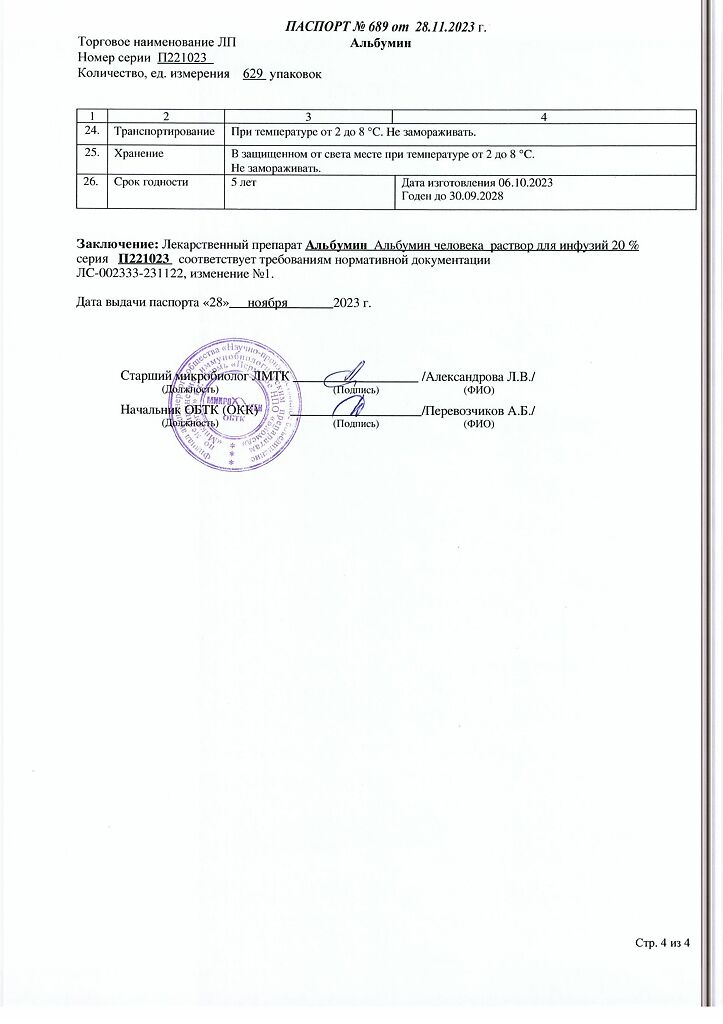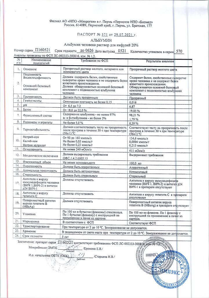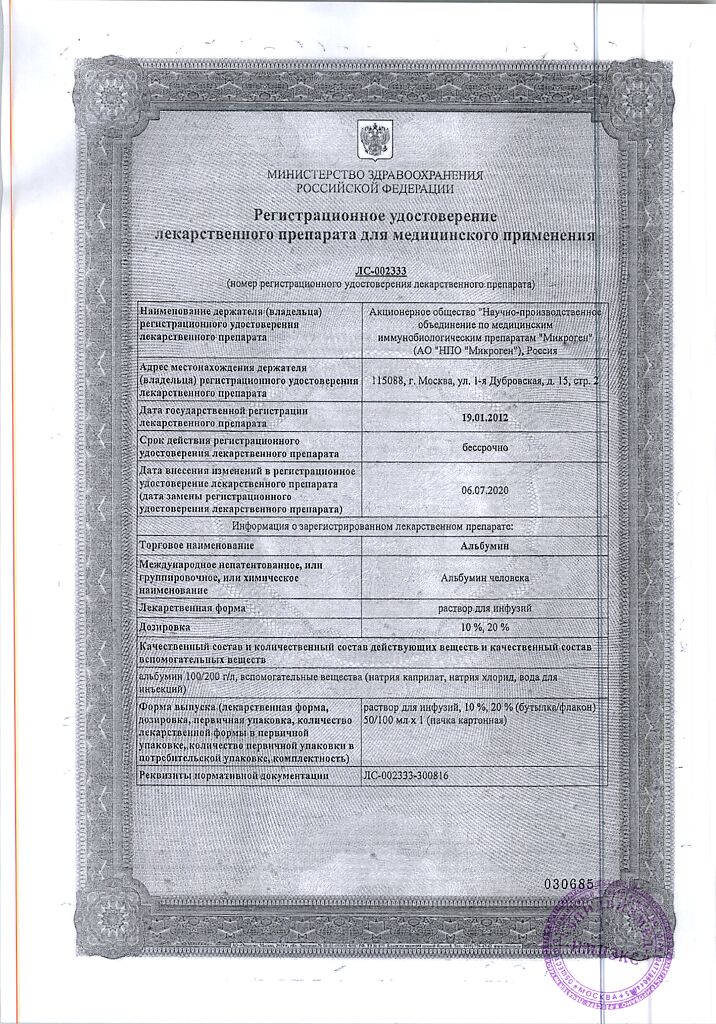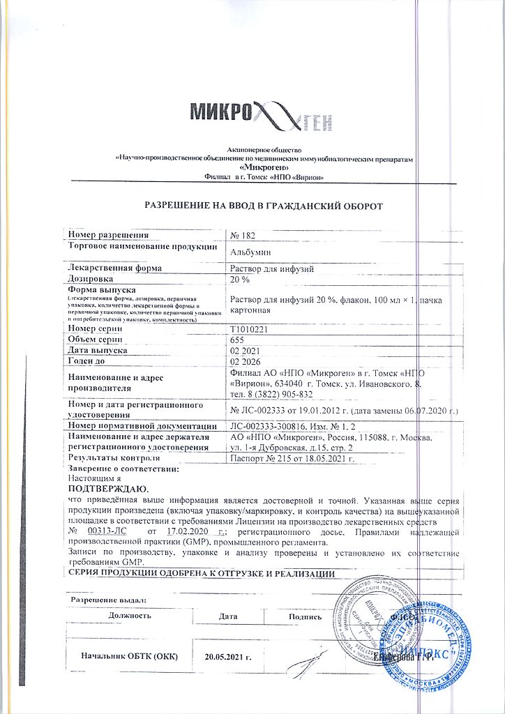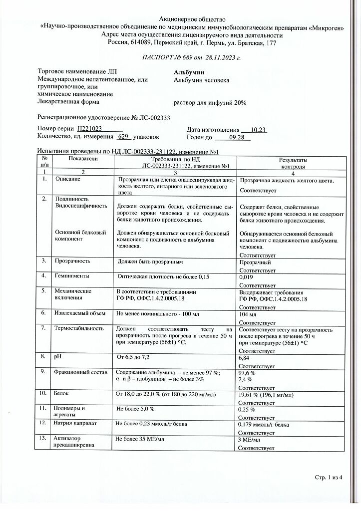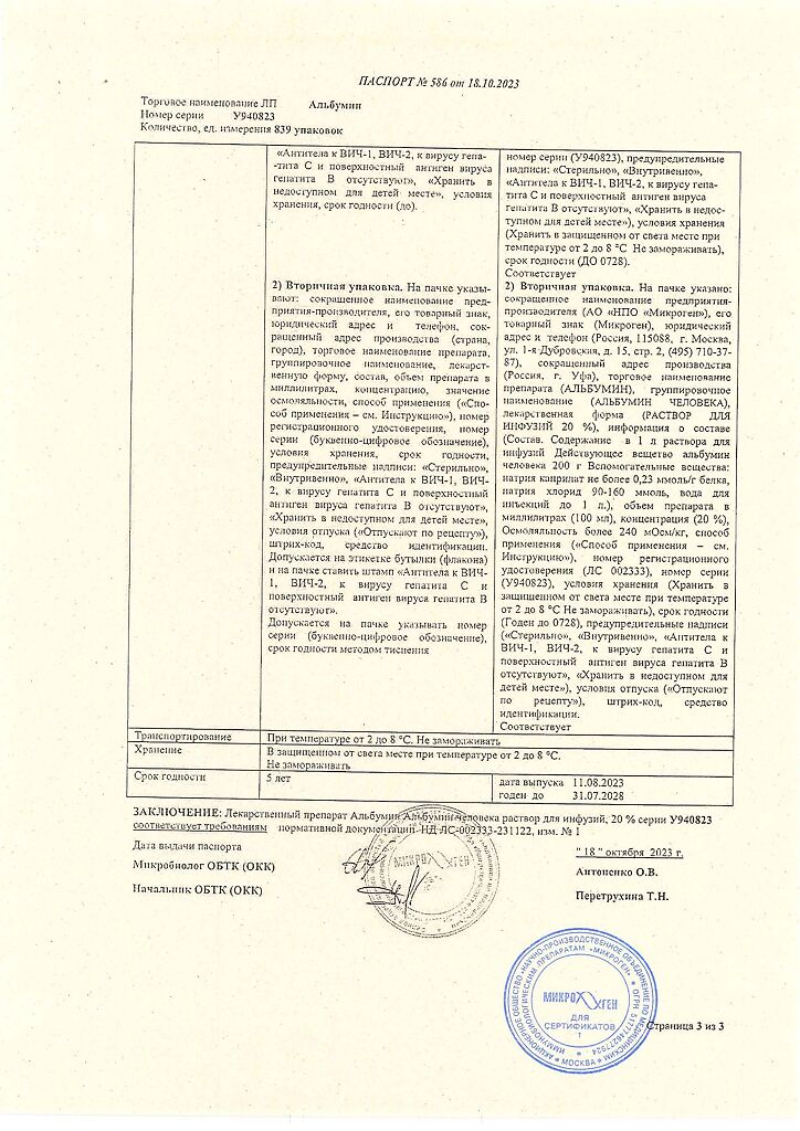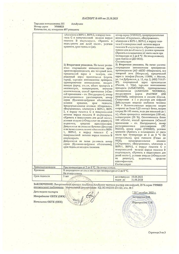 Действующее вещество: Альбумин человека