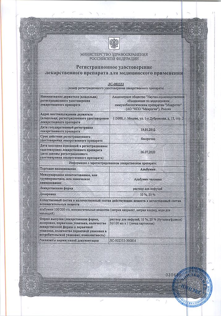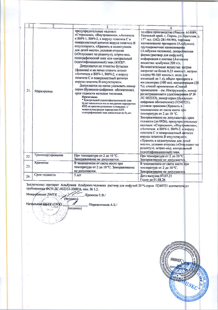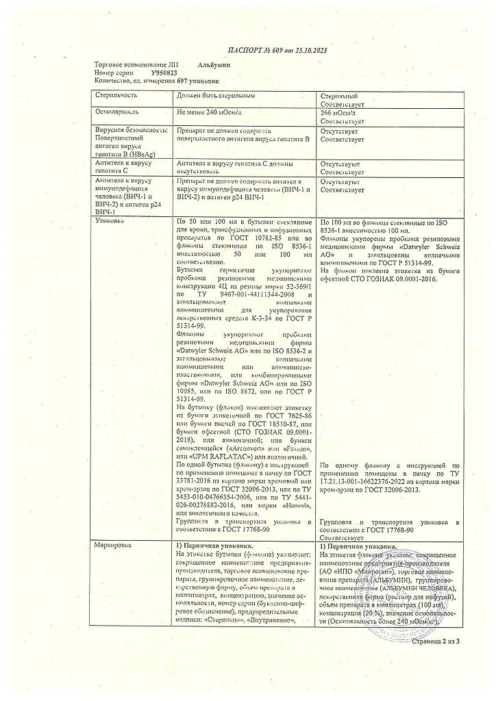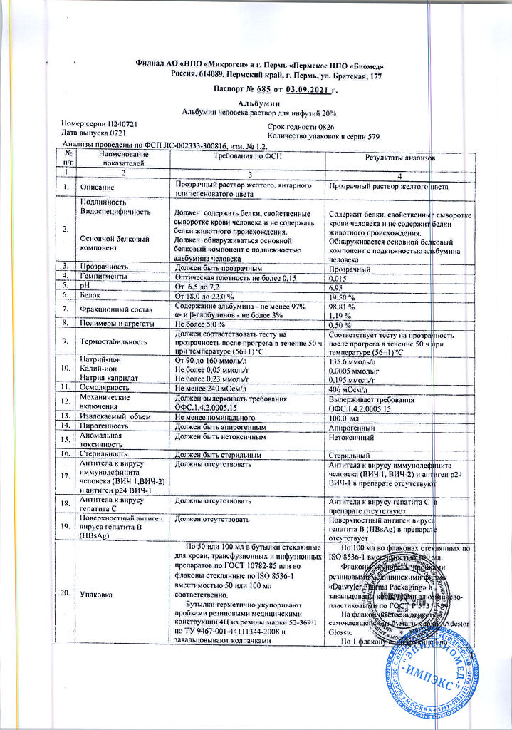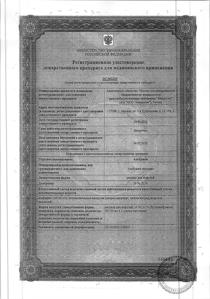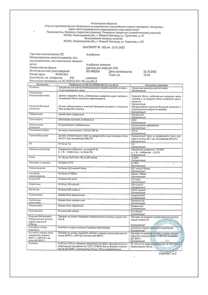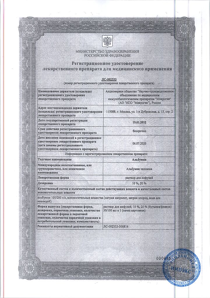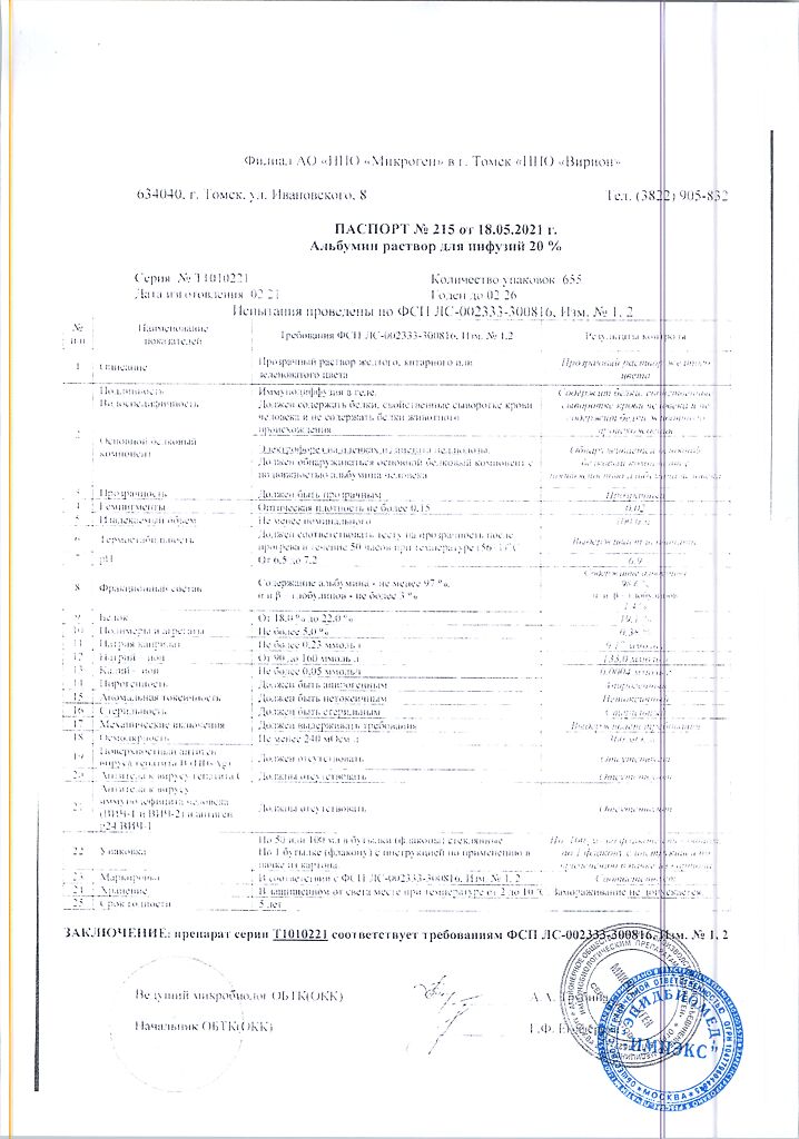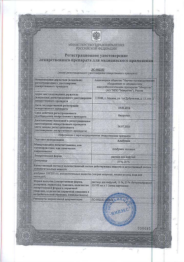 Действующее вещество: Альбумин человека