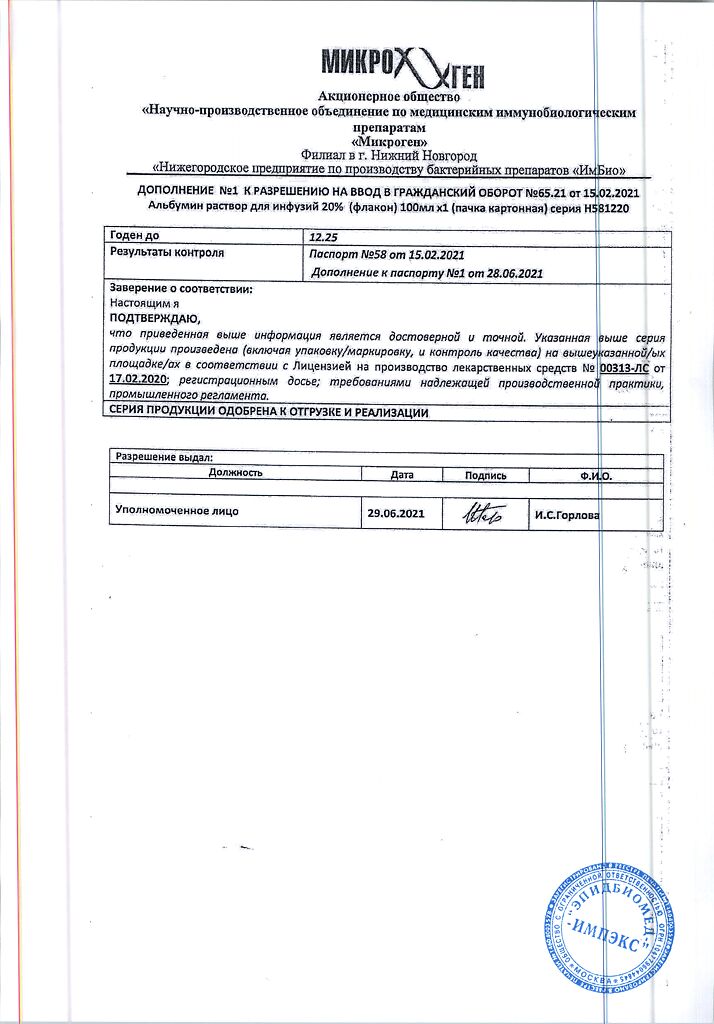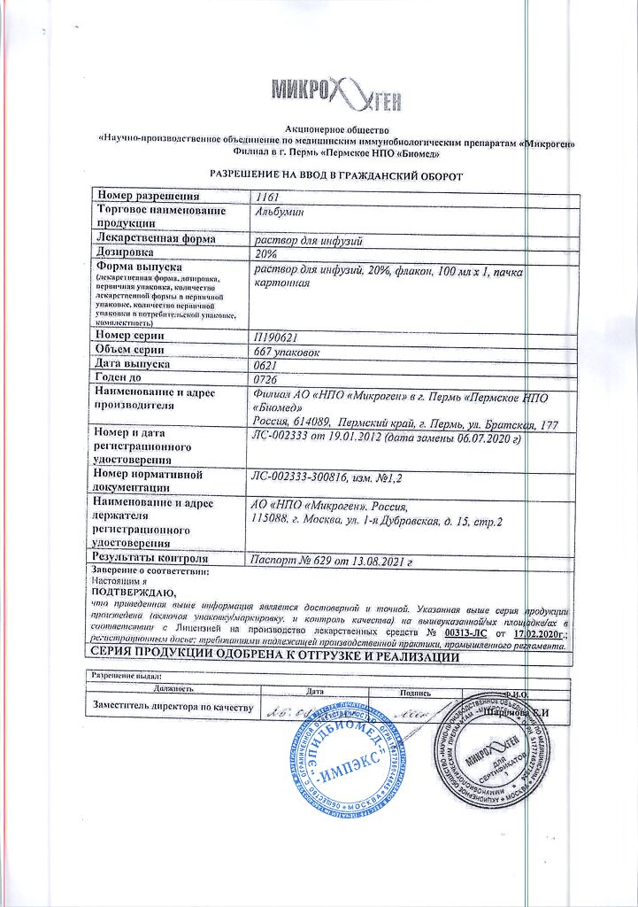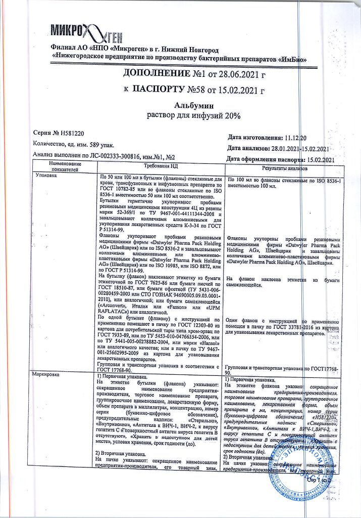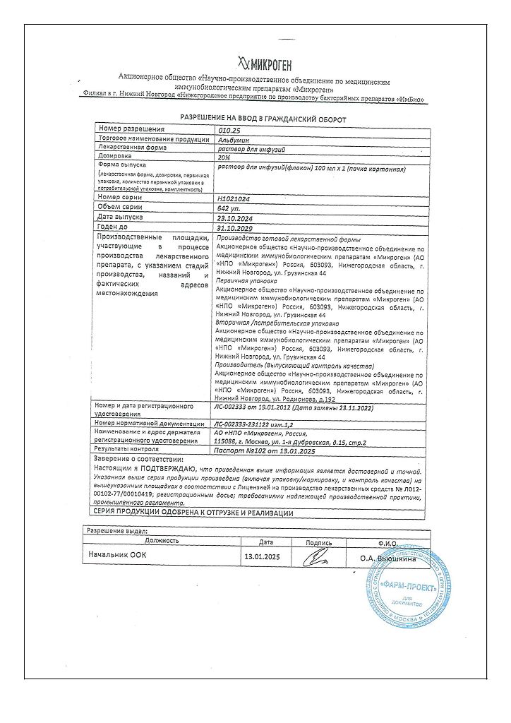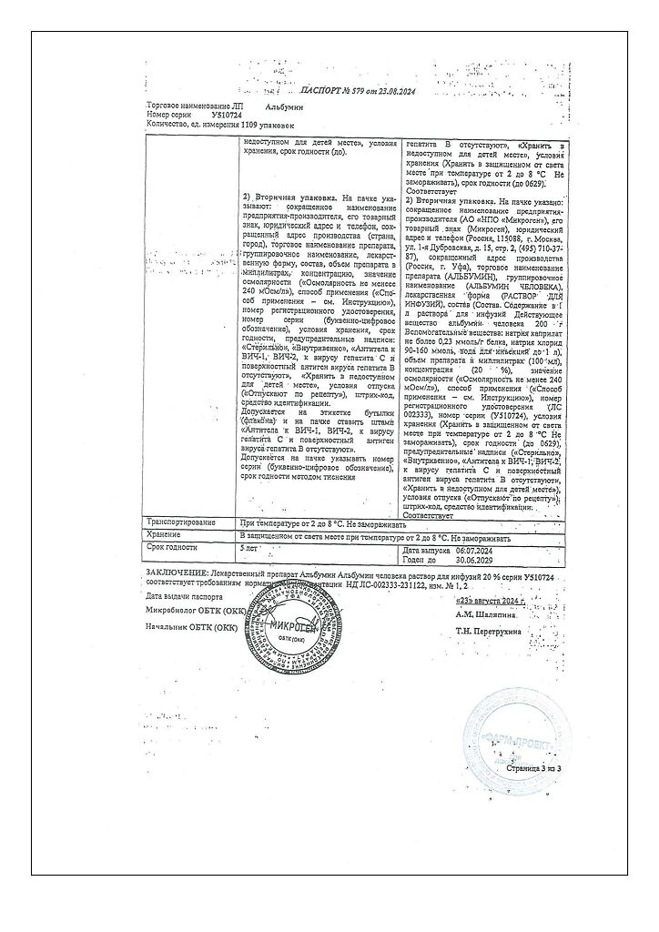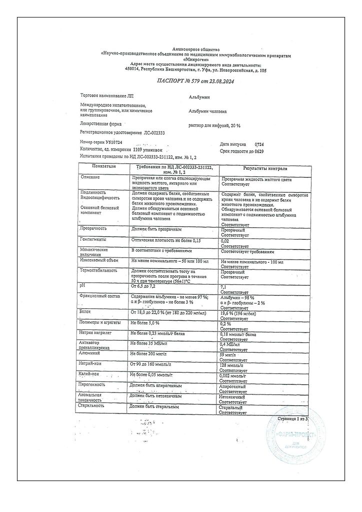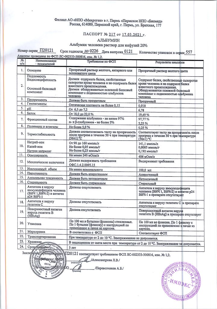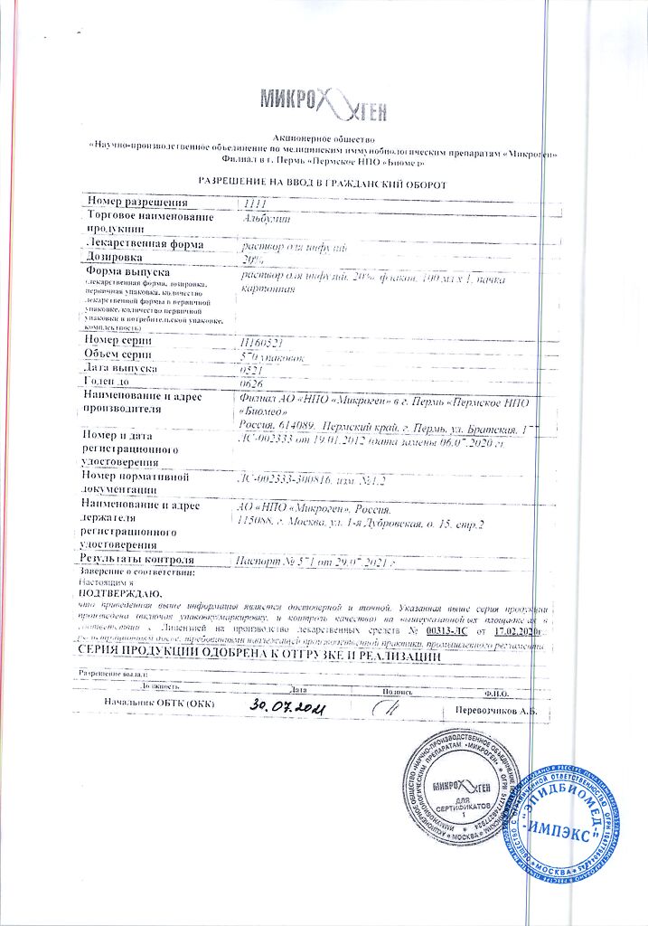 Действующее вещество: Альбумин человека