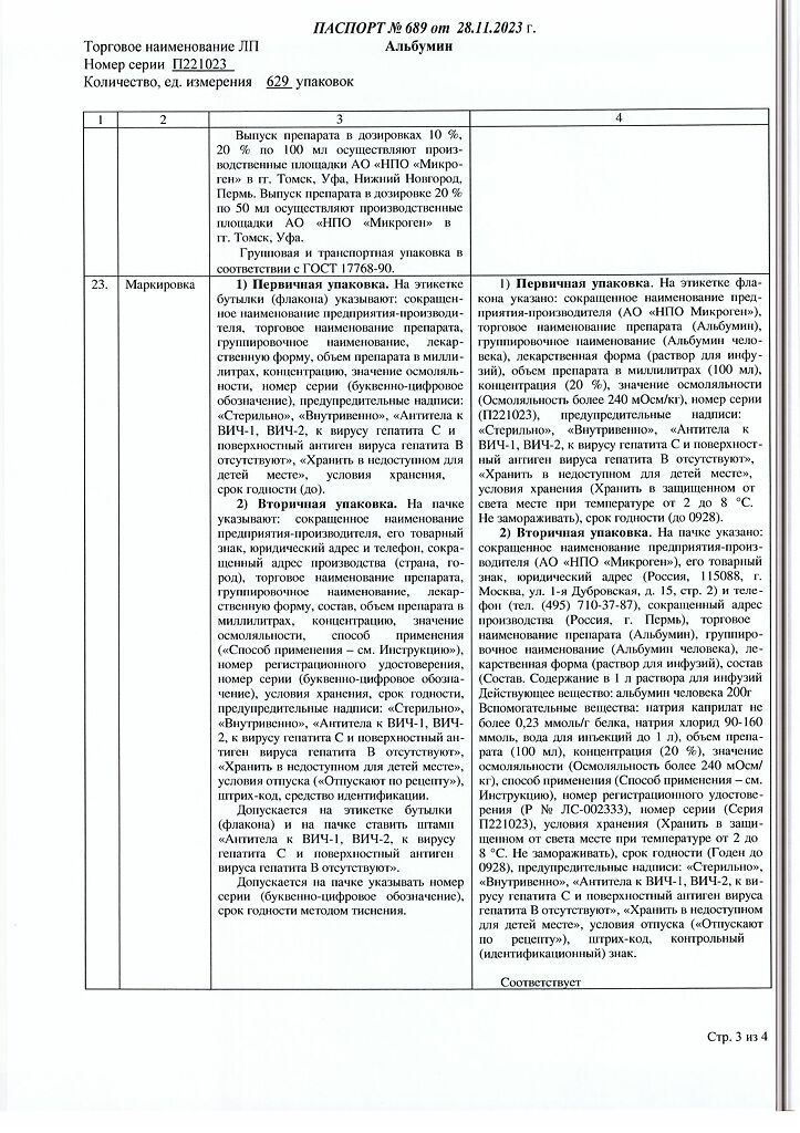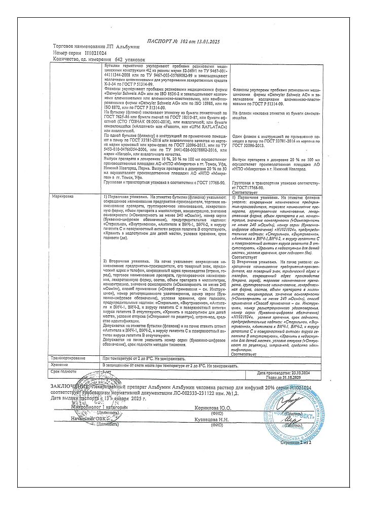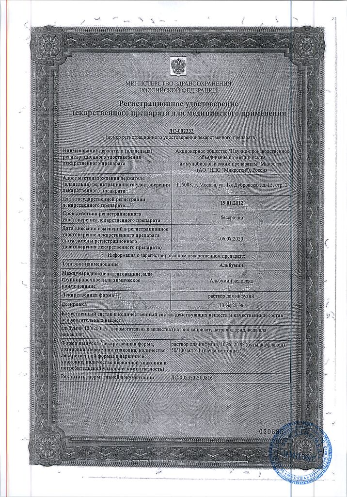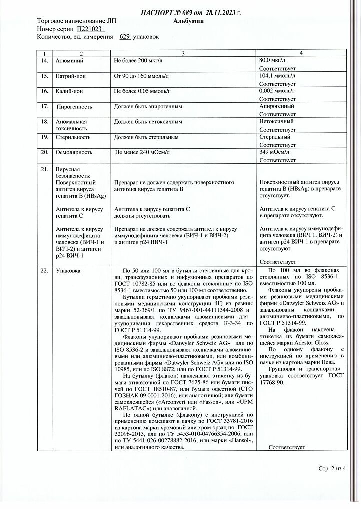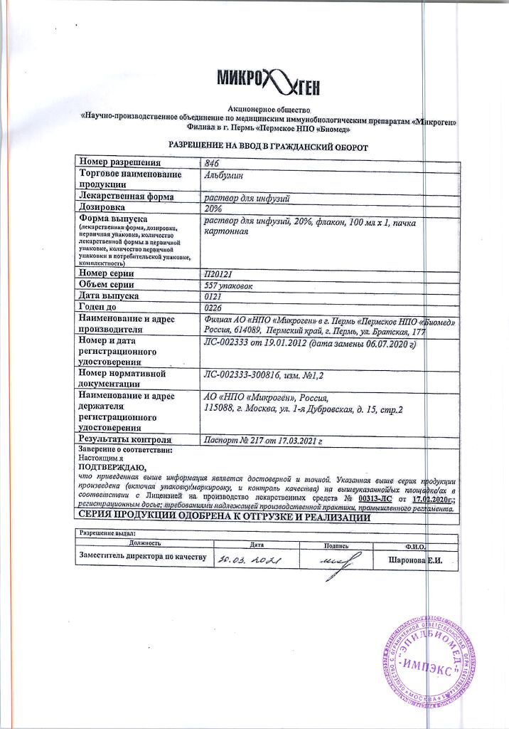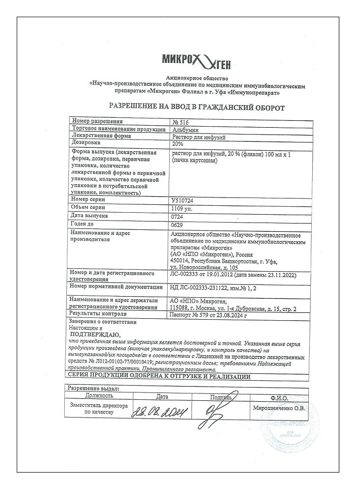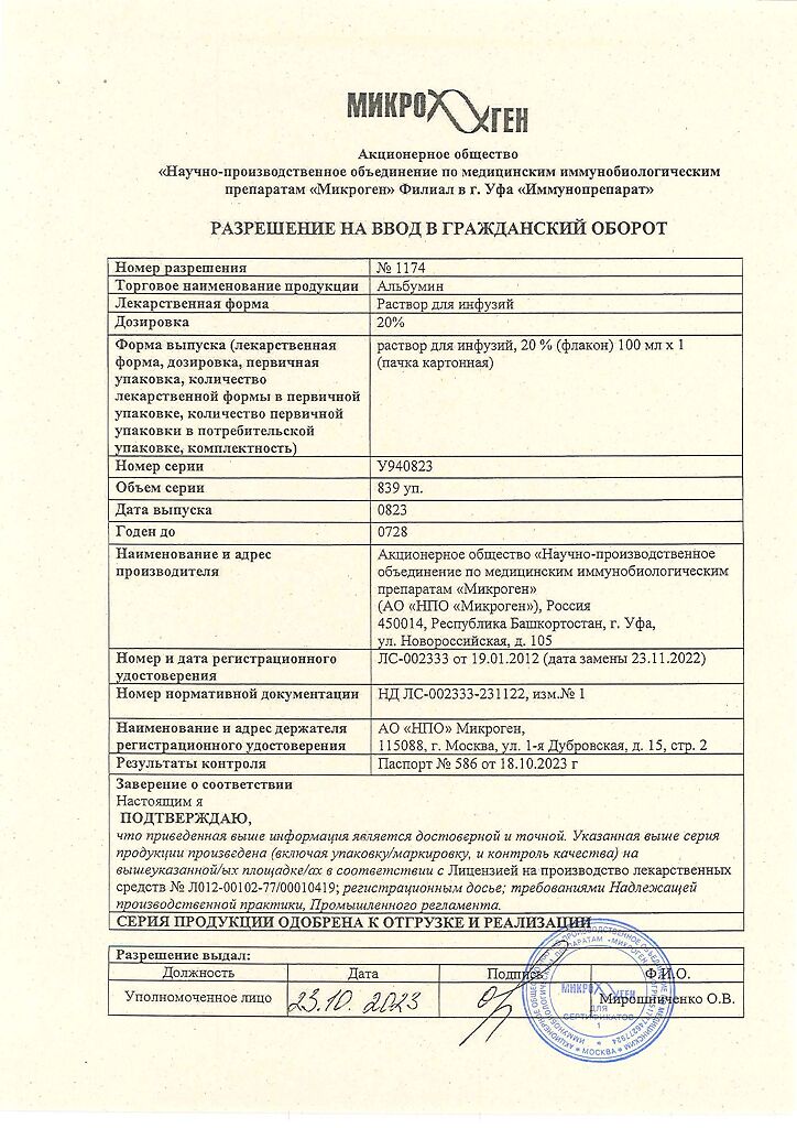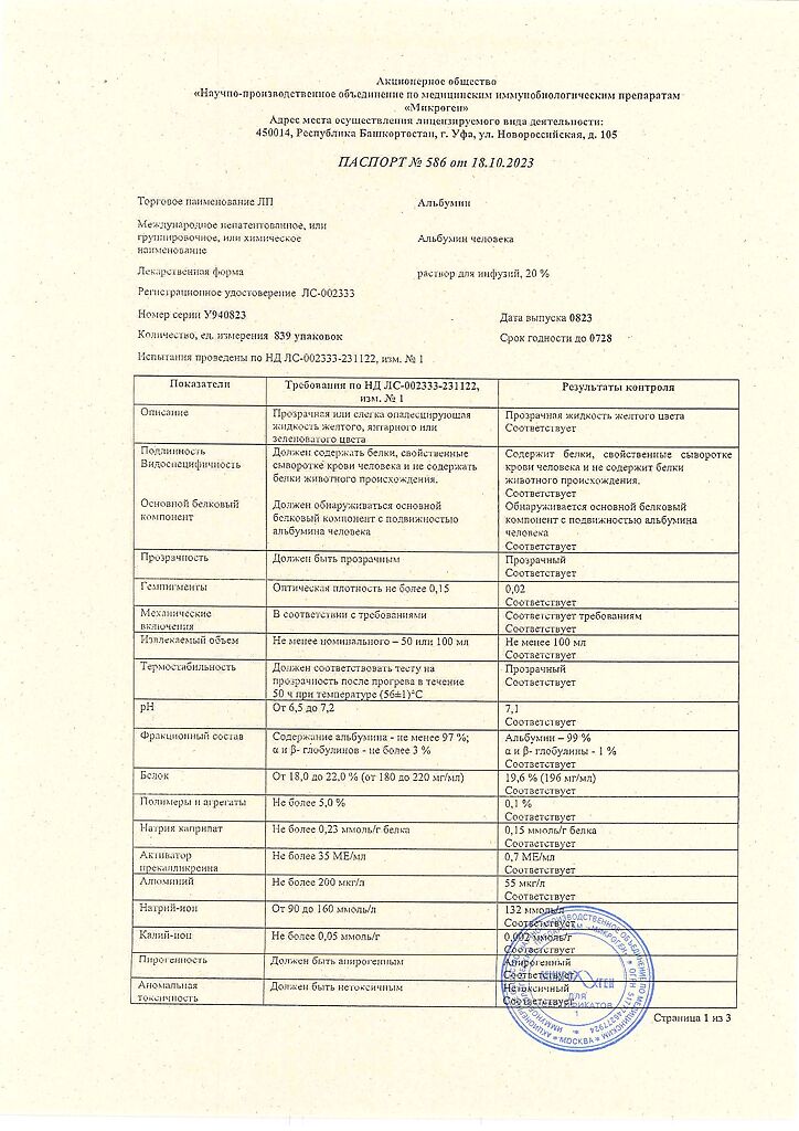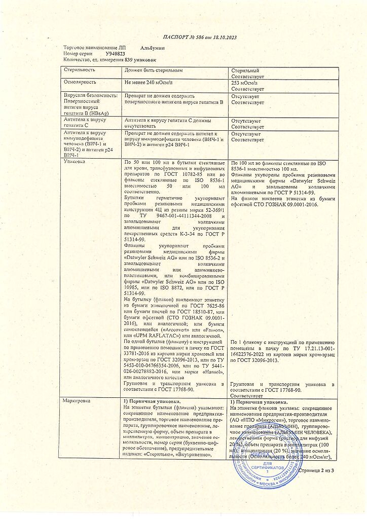 Действующее вещество: Альбумин человека