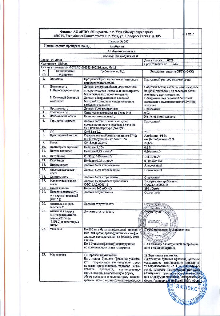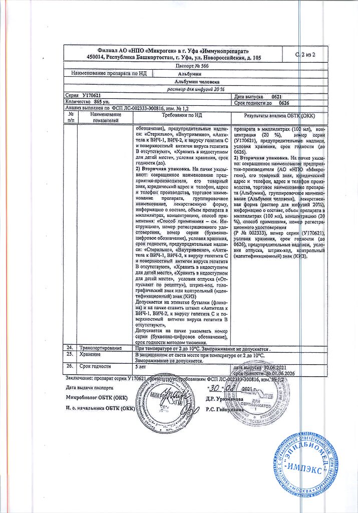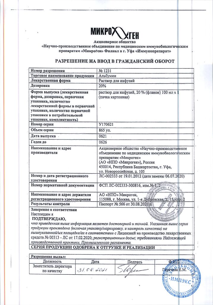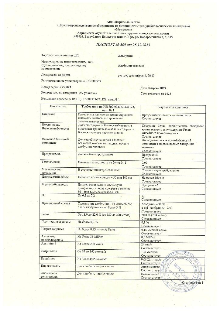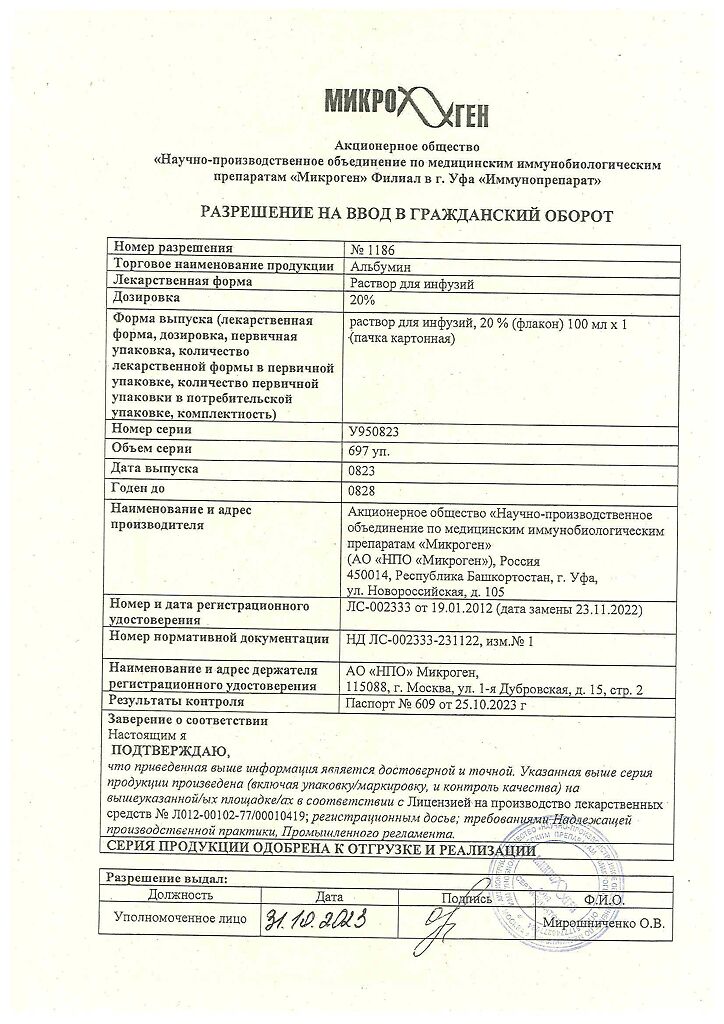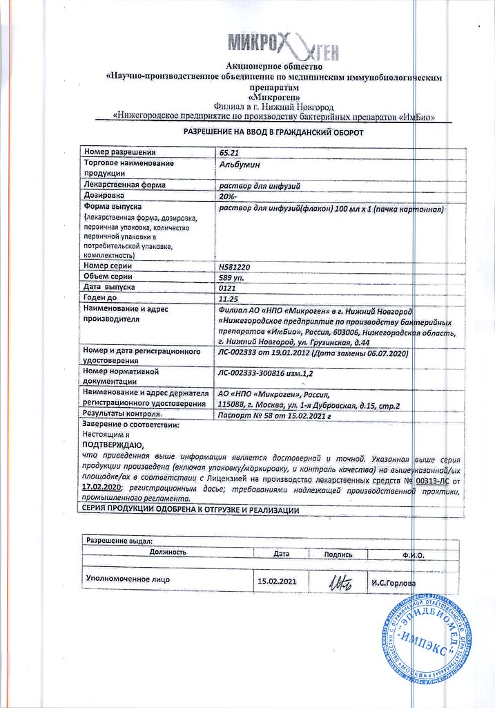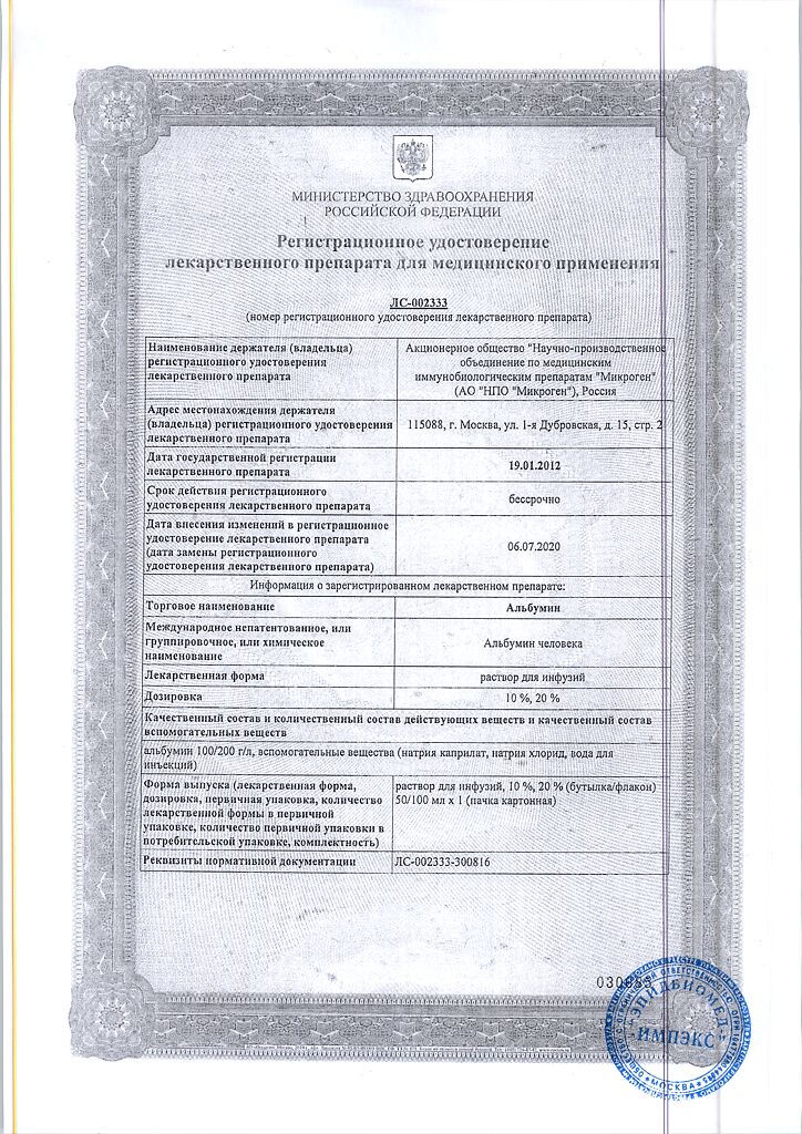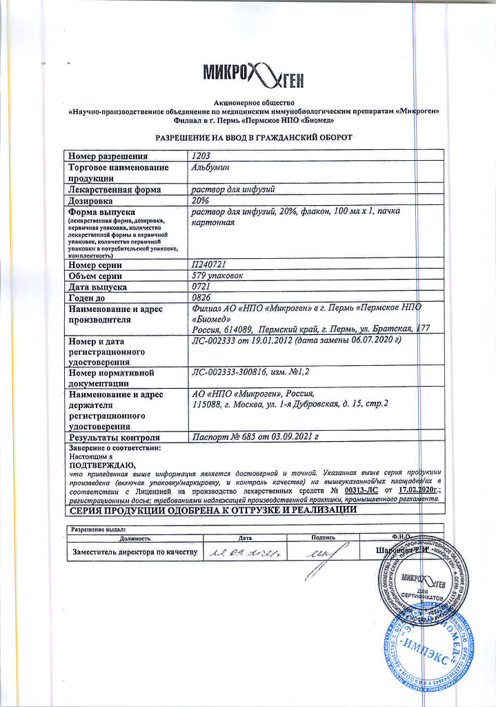 Действующее вещество: Альбумин человека