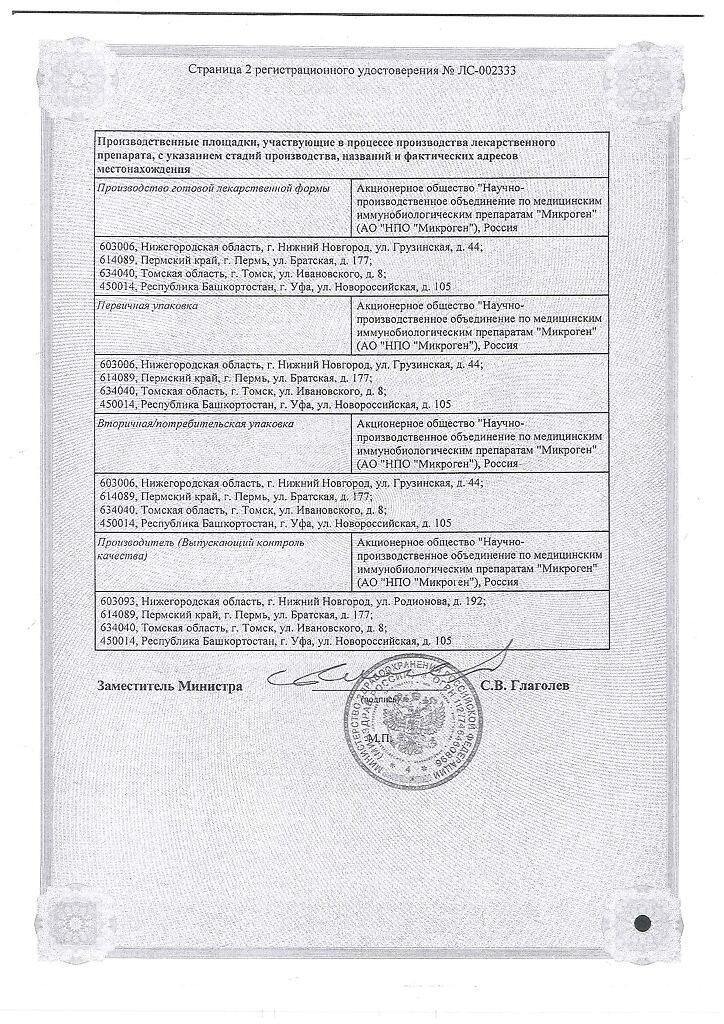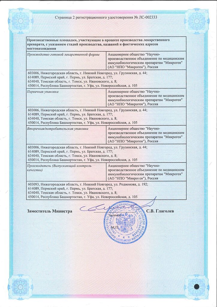 Производитель: Микроген НПО ФГУП, Россия