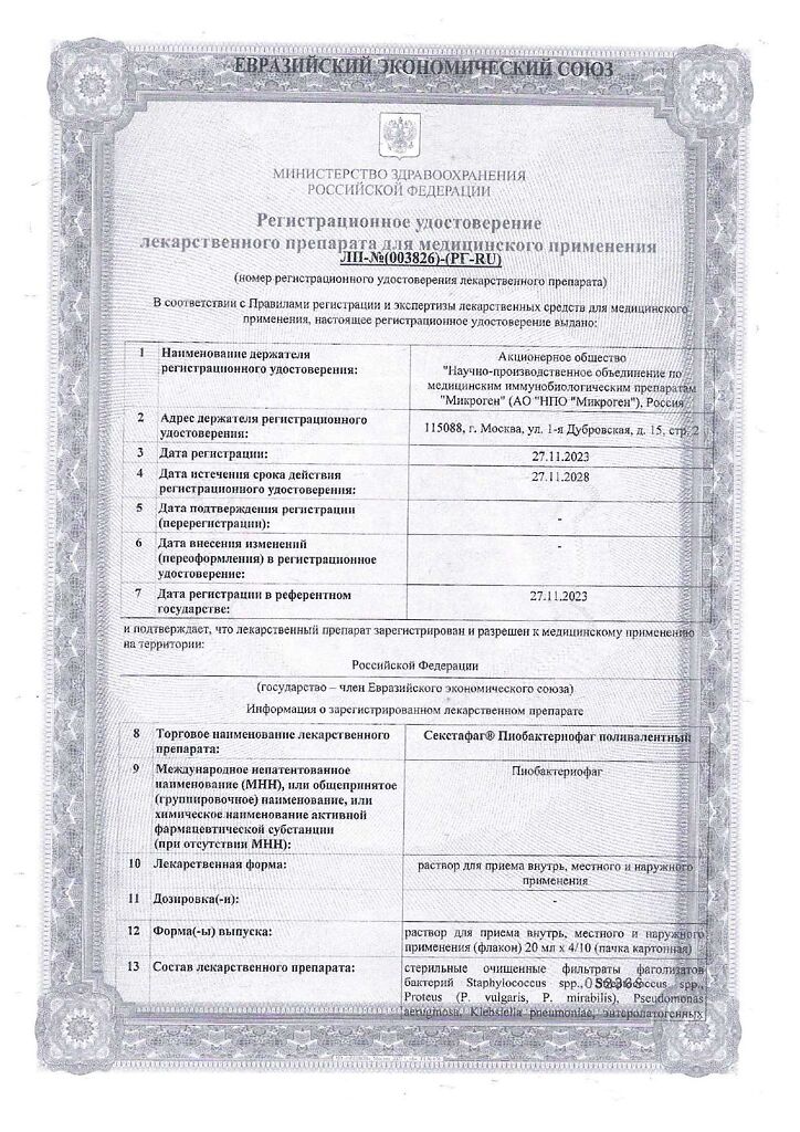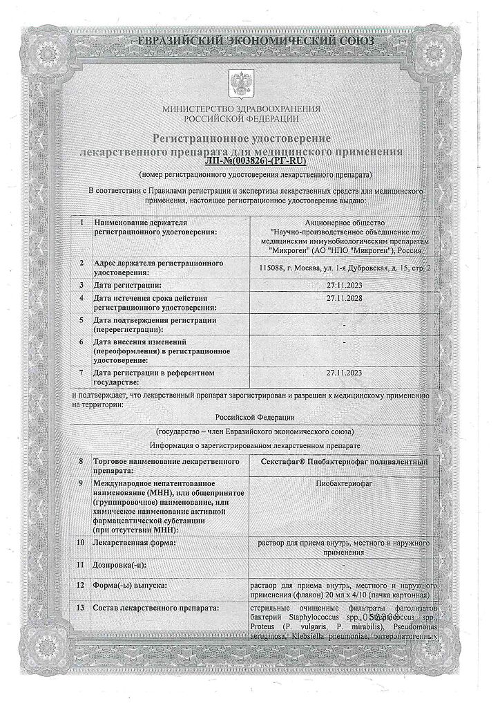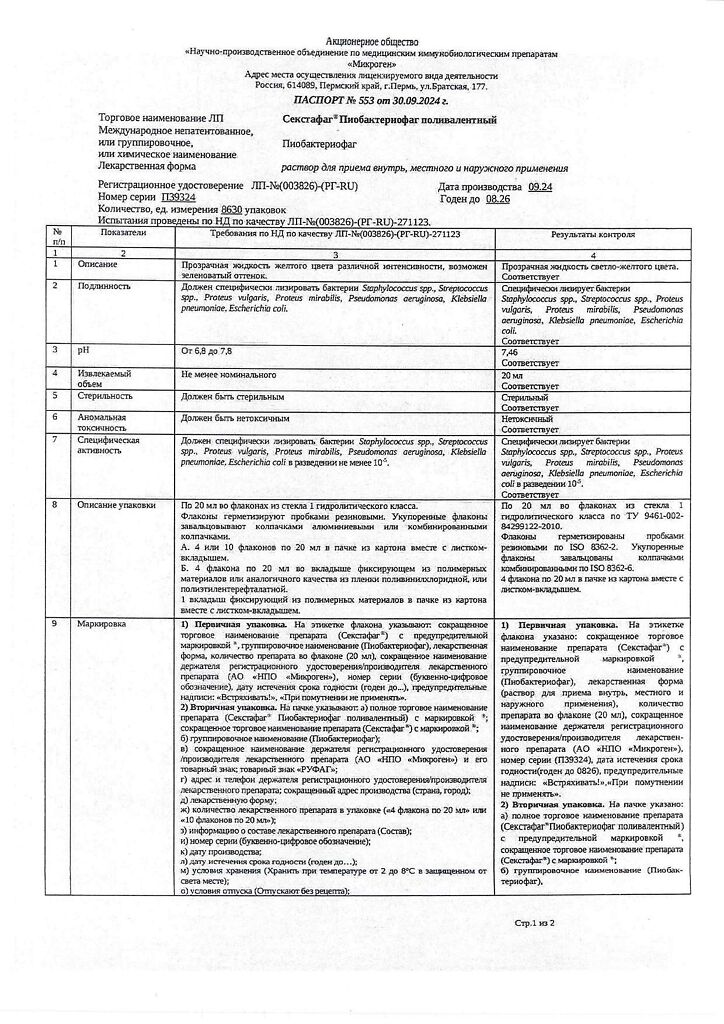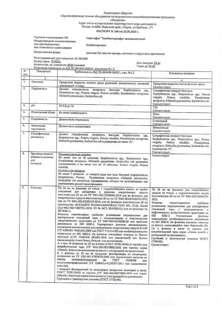 Все формы Пиобактериофаг поливалентный (Секстафаг)