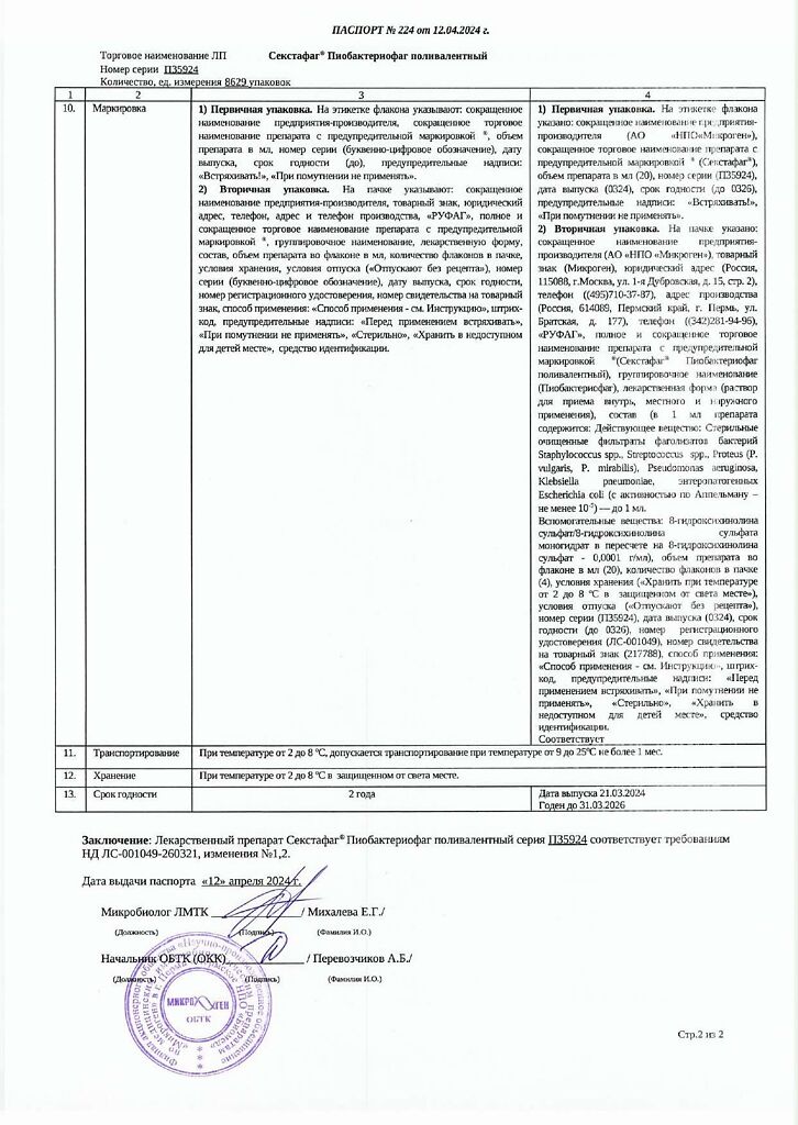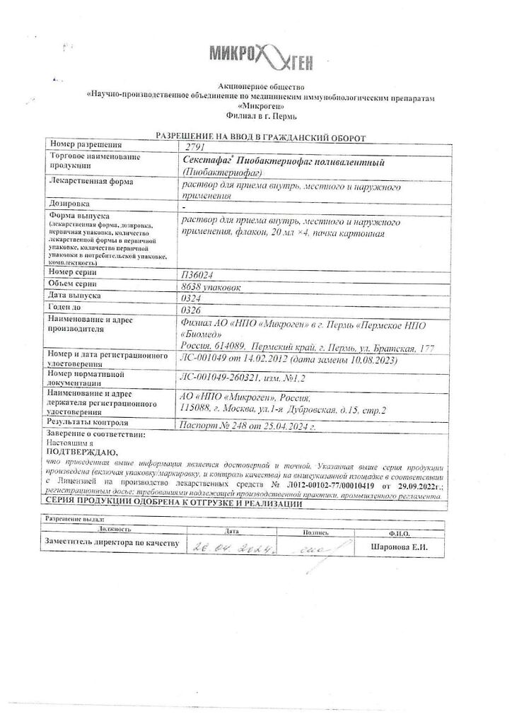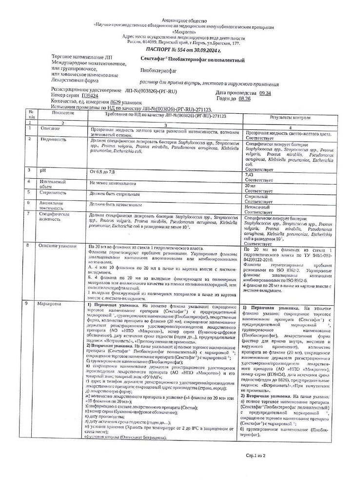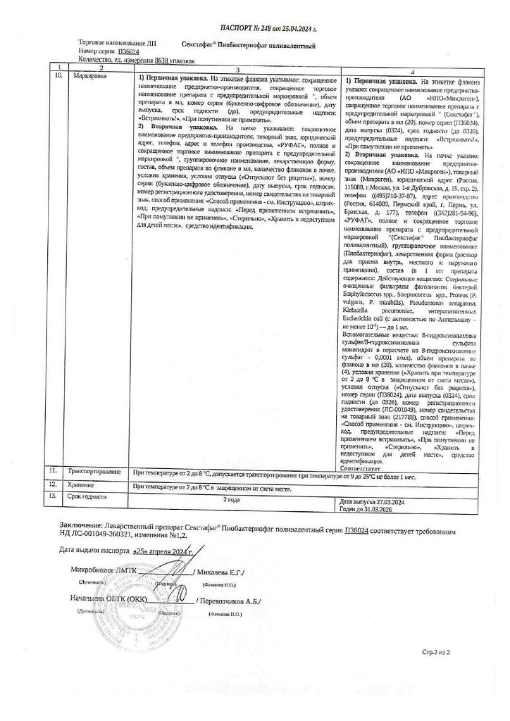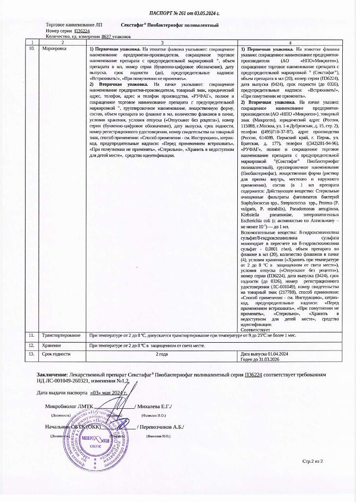 Все формы Пиобактериофаг поливалентный (Секстафаг)