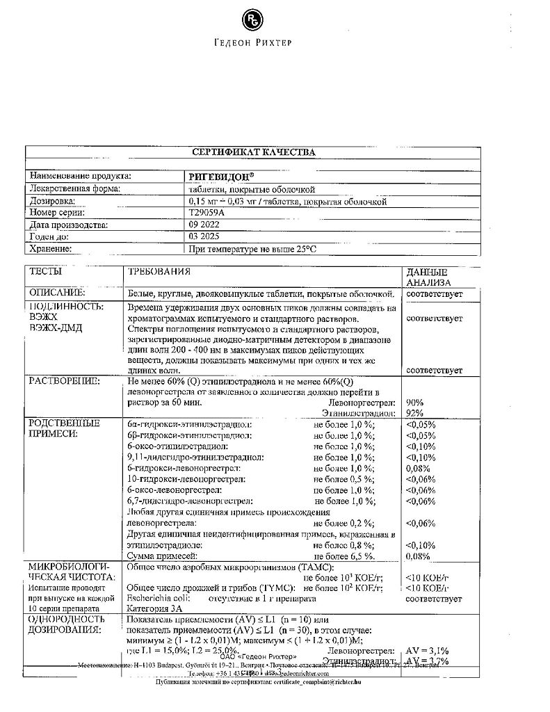 Производитель: Гедеон Рихтер, Венгрия